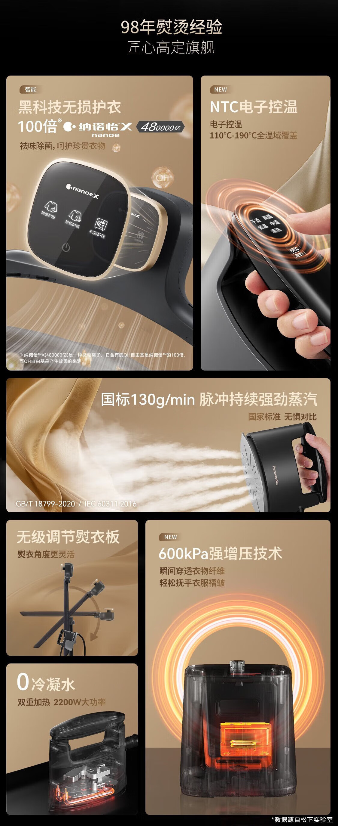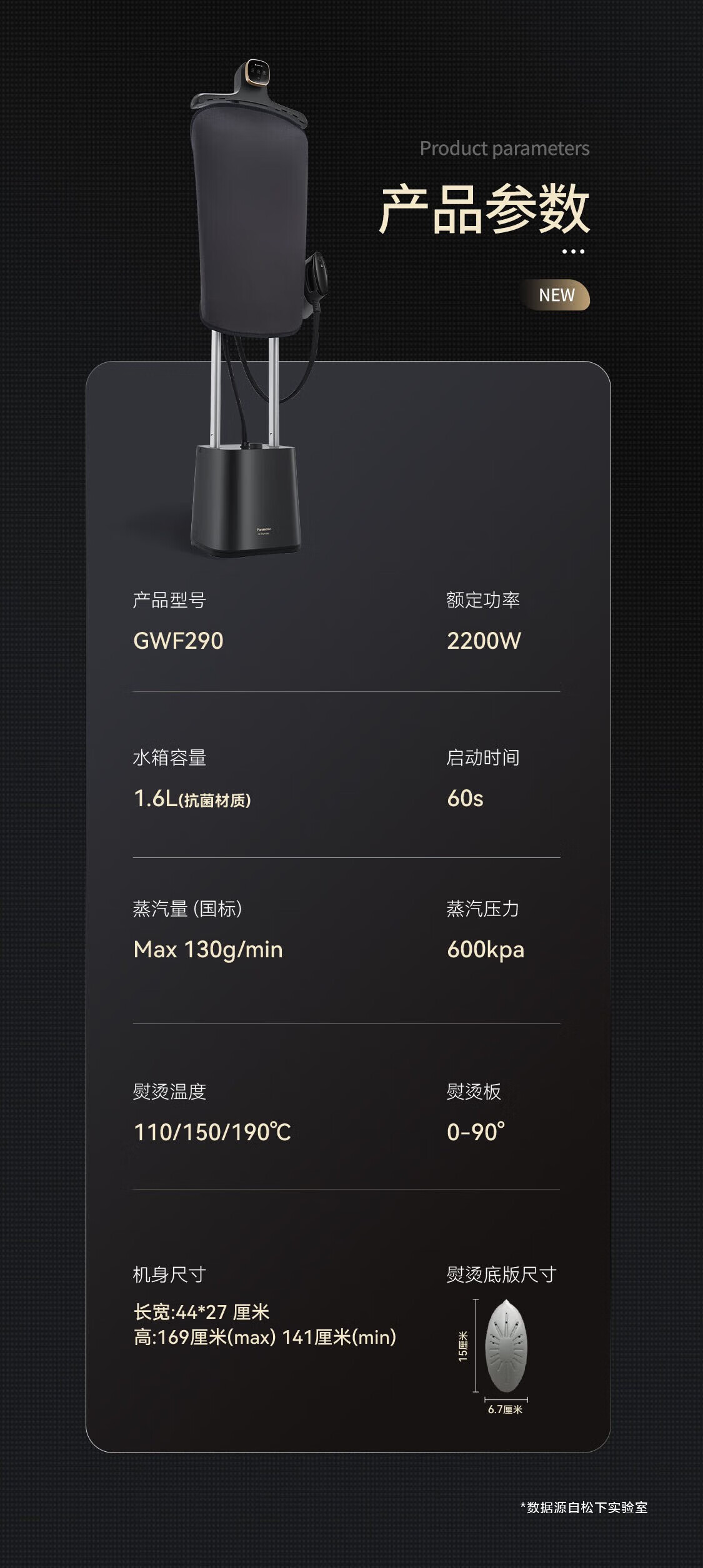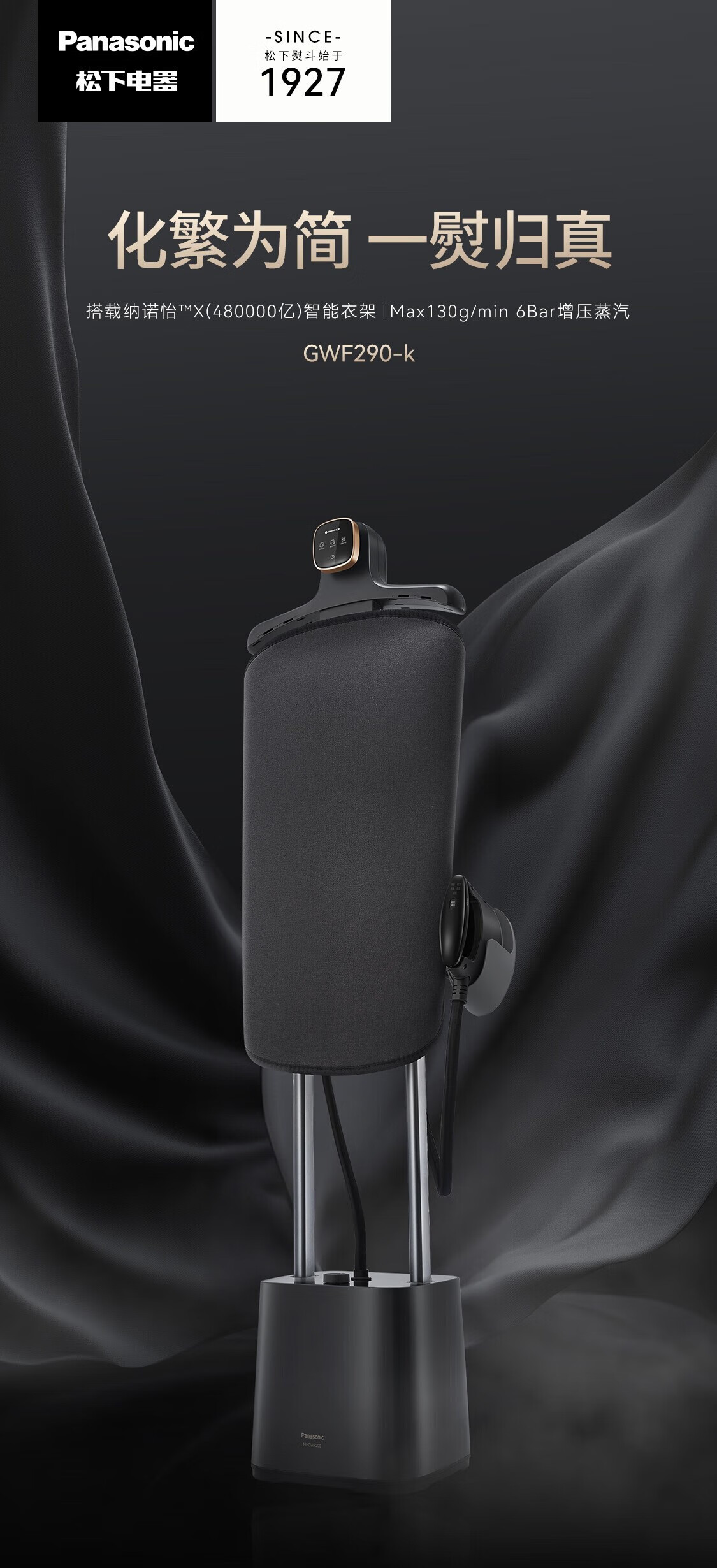 松下(Panasonic)【祛味护衣】家用立式高定挂烫机 纳诺怡祛味护理 130g/min持续蒸汽增压手持电熨斗GWF290-K_qb
