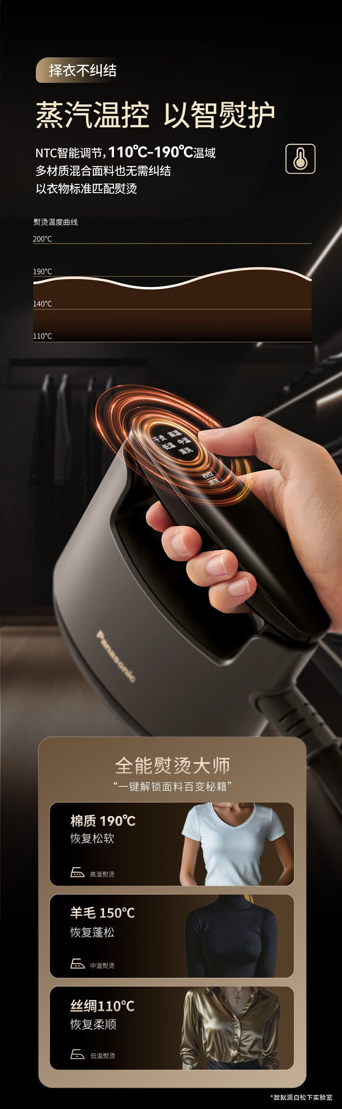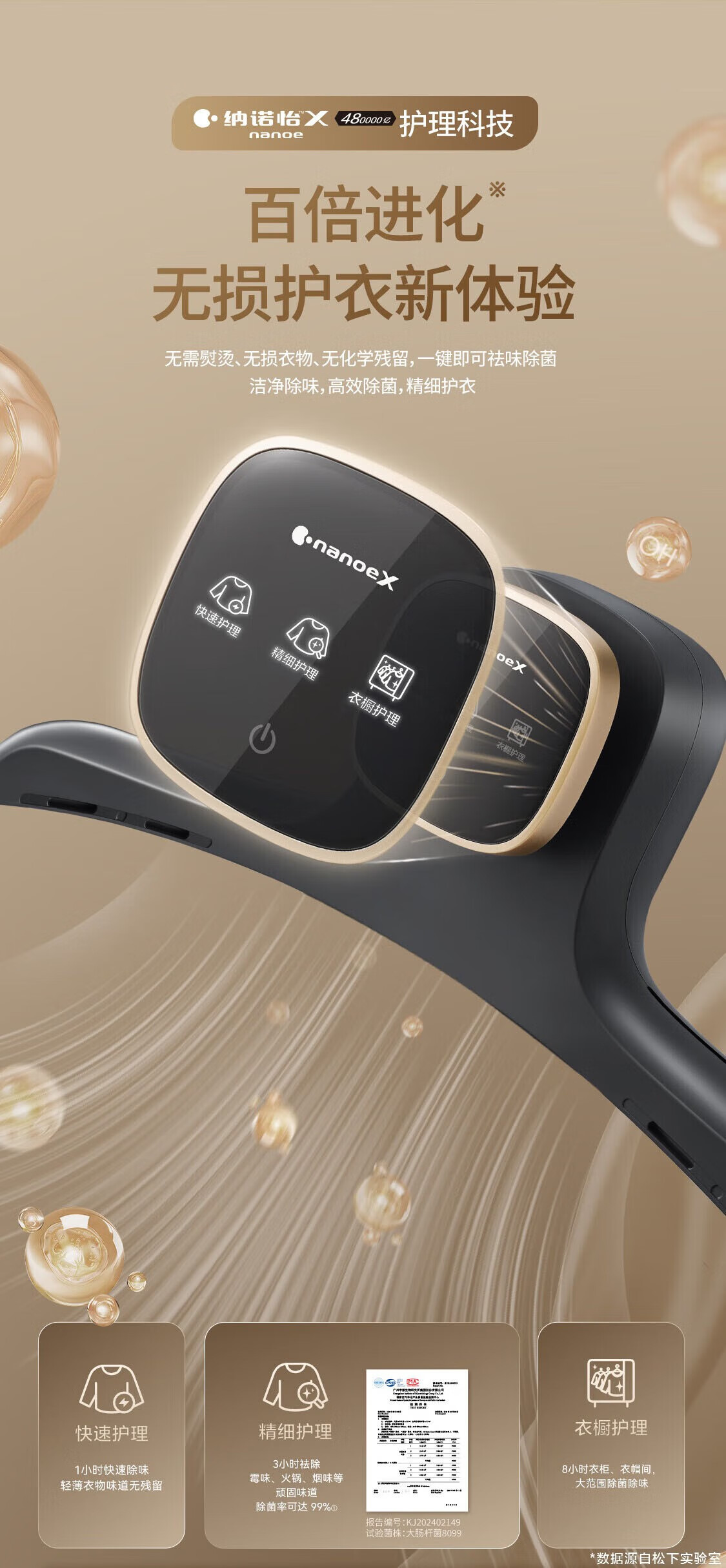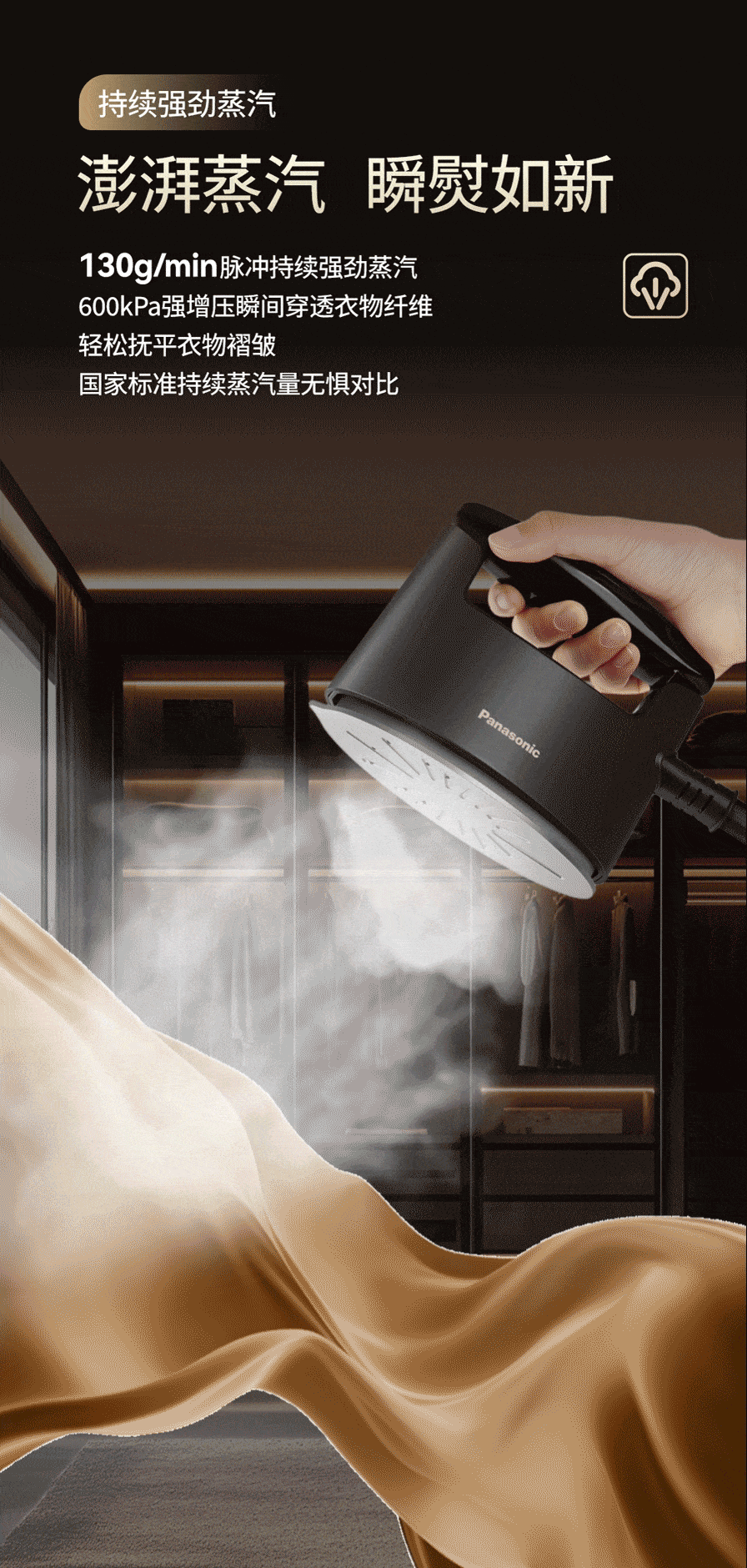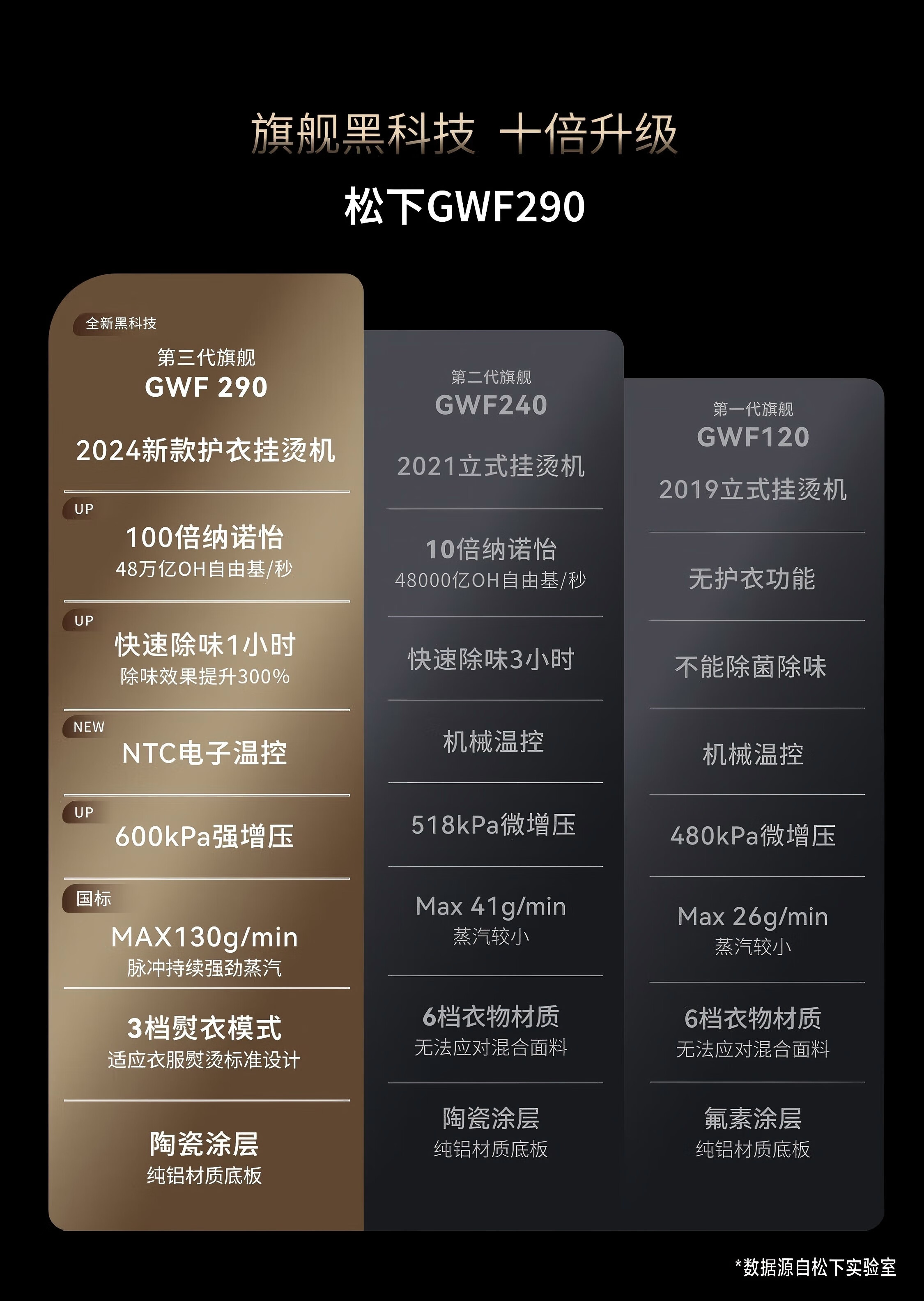 松下(Panasonic)【祛味护衣】家用立式高定挂烫机 纳诺怡祛味护理 130g/min持续蒸汽增压手持电熨斗GWF290-K_qb