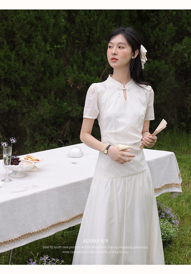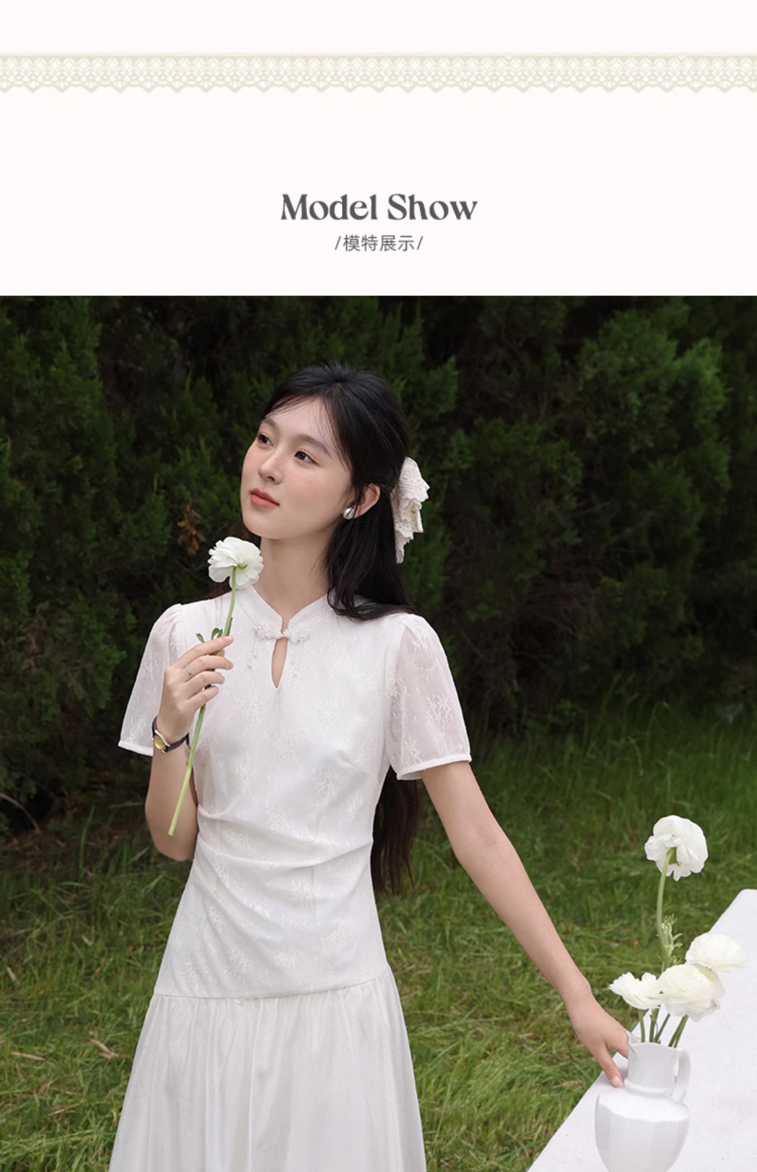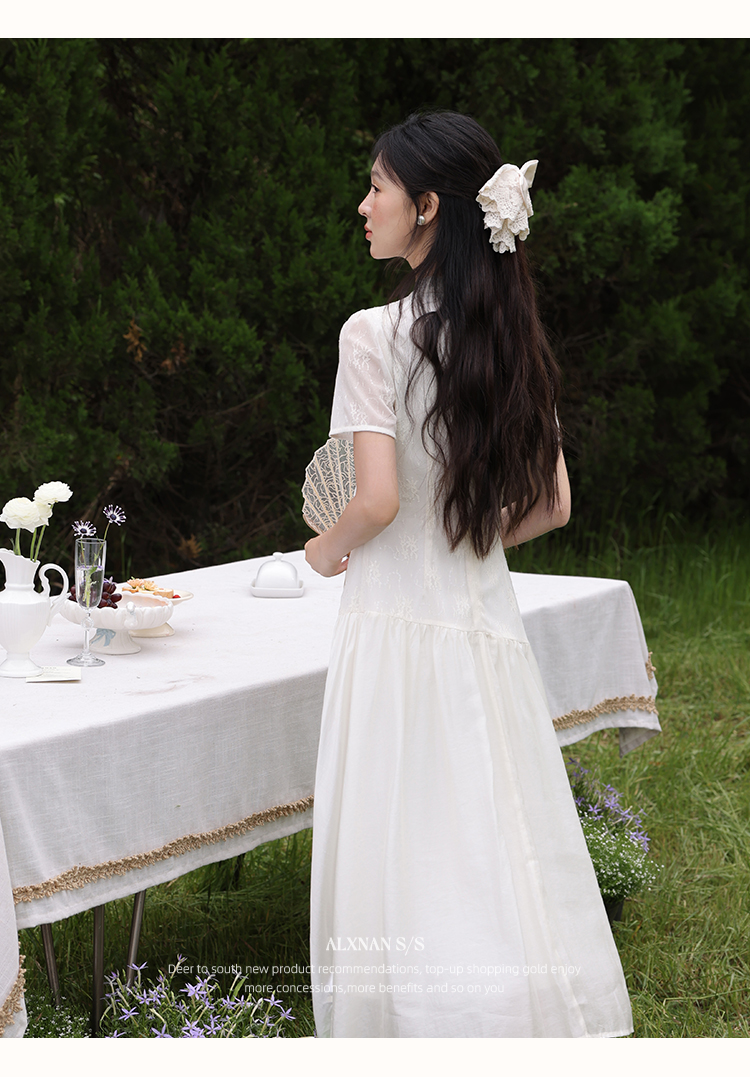 【6折秒杀】鹿向南「国风情书」新中式国风连衣裙女夏季收腰气质短袖杏色长裙DYL661784