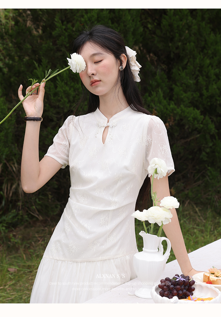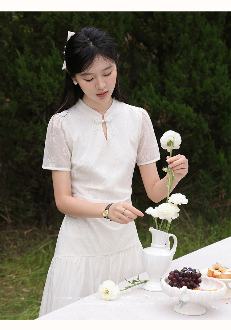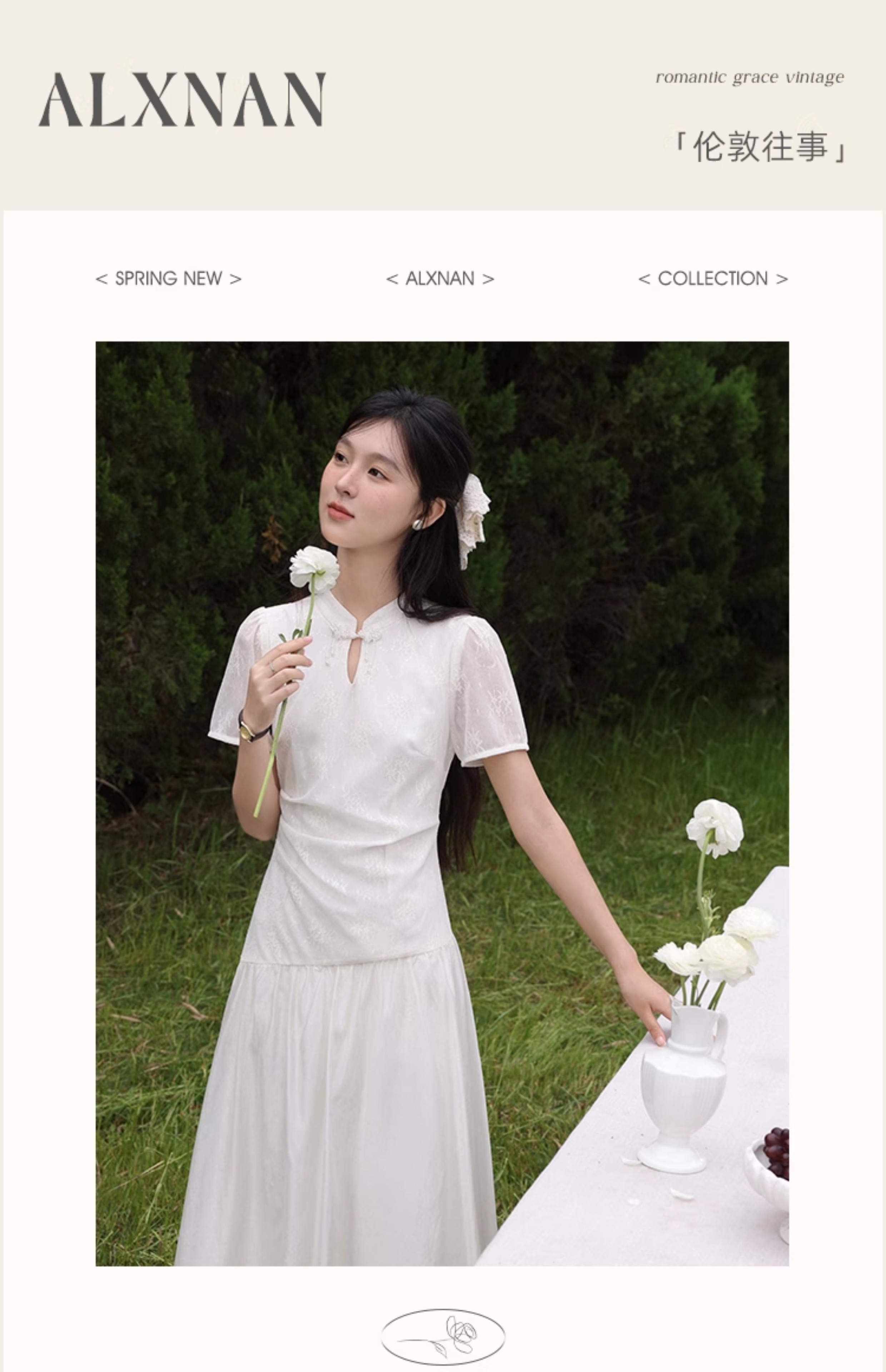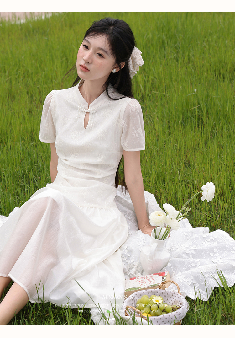 【6折秒杀】鹿向南「国风情书」新中式国风连衣裙女夏季收腰气质短袖杏色长裙DYL661784