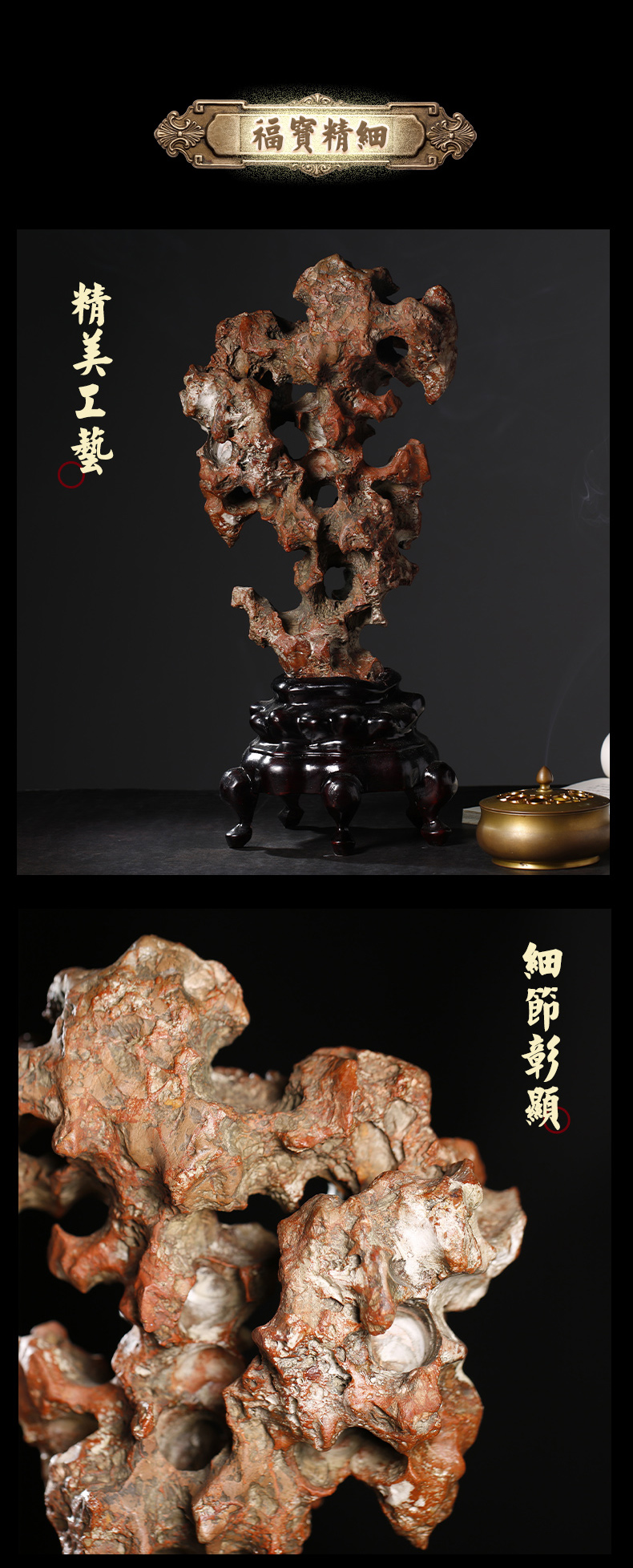 慈元阁定制中华龙脉石龙吟凤鸣太湖石摆件办公室客厅家装摆设礼物