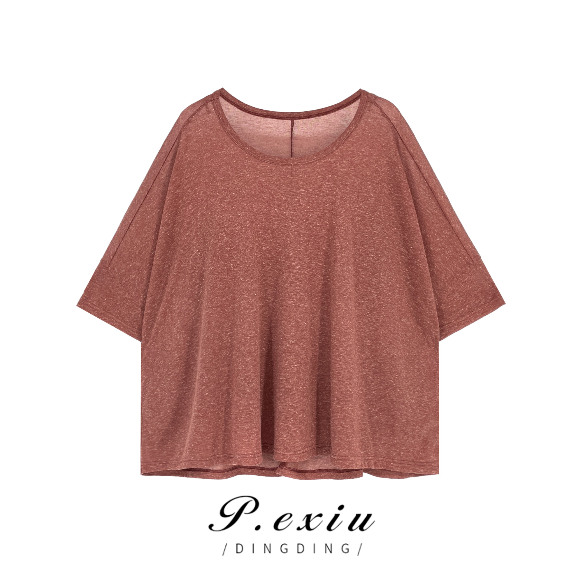 03-4潘依绣丁丁宠粉【玫瑰云霞】亚-麻-夏季宽松显瘦短袖T恤 W-61322