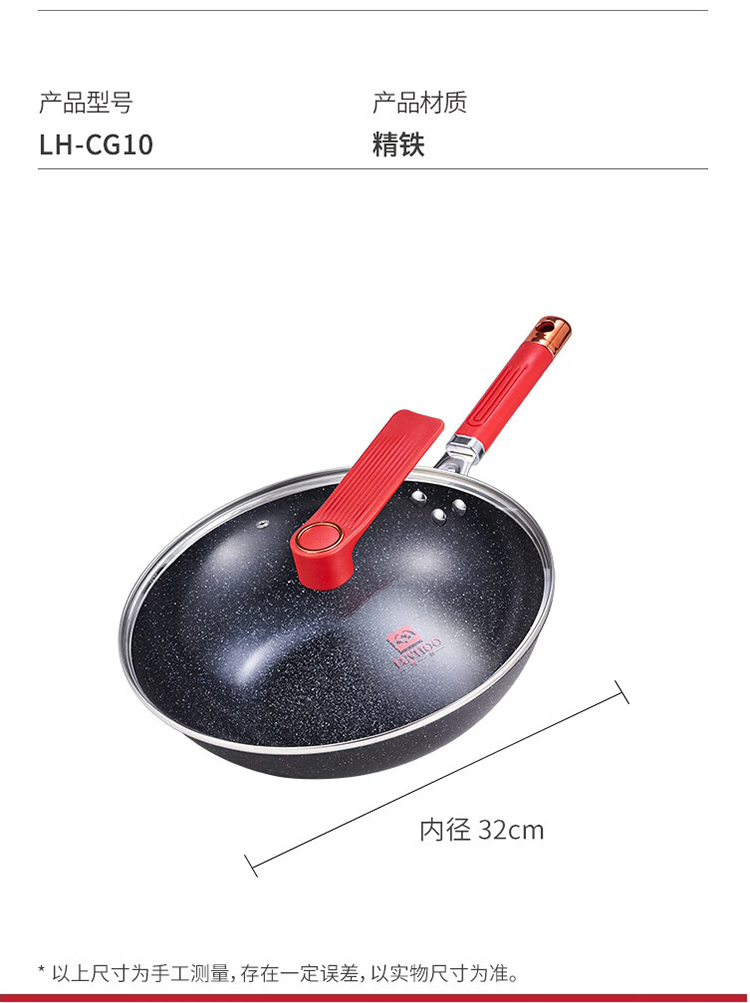 朗赫 芝华士炒锅32cm带立式玻璃透明锅盖LH-CG10