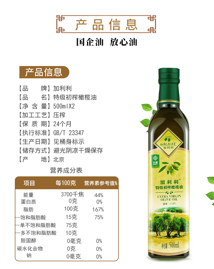 加利利精装特级初榨橄榄油组合