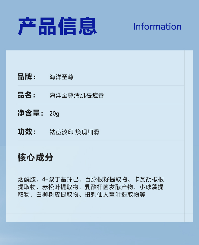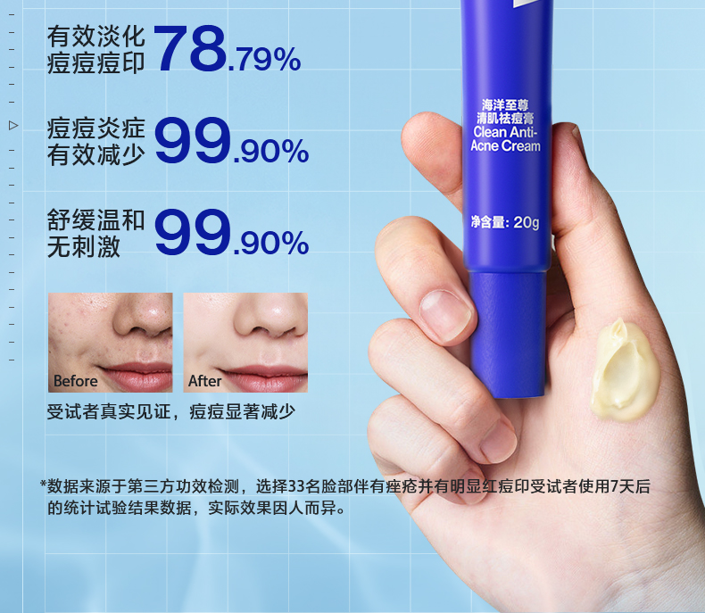 商城【男士面护】海洋至尊清肌祛痘膏淡化痘印青春豆豆收缩毛孔闭口粉刺凝胶