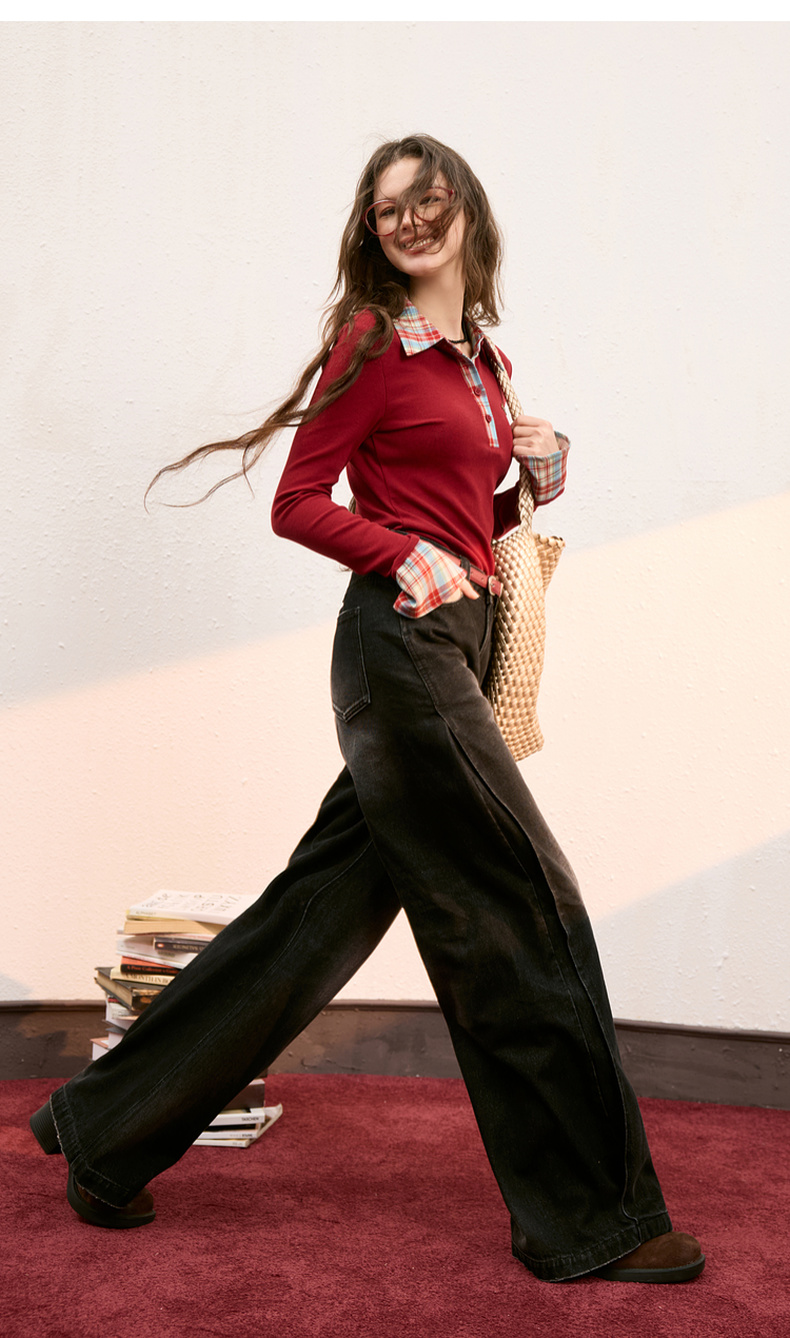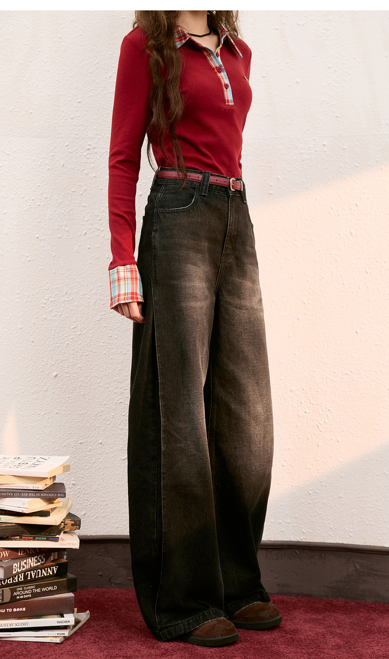 【100棉】三彩独醒2025秋季新款长裤牛仔裤宽松高腰阔腿裤复古F