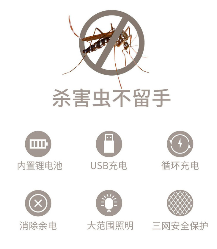 潮流新款USB充电电蚊拍 多功能灭蚊照明夜灯电击手持拍蚊器