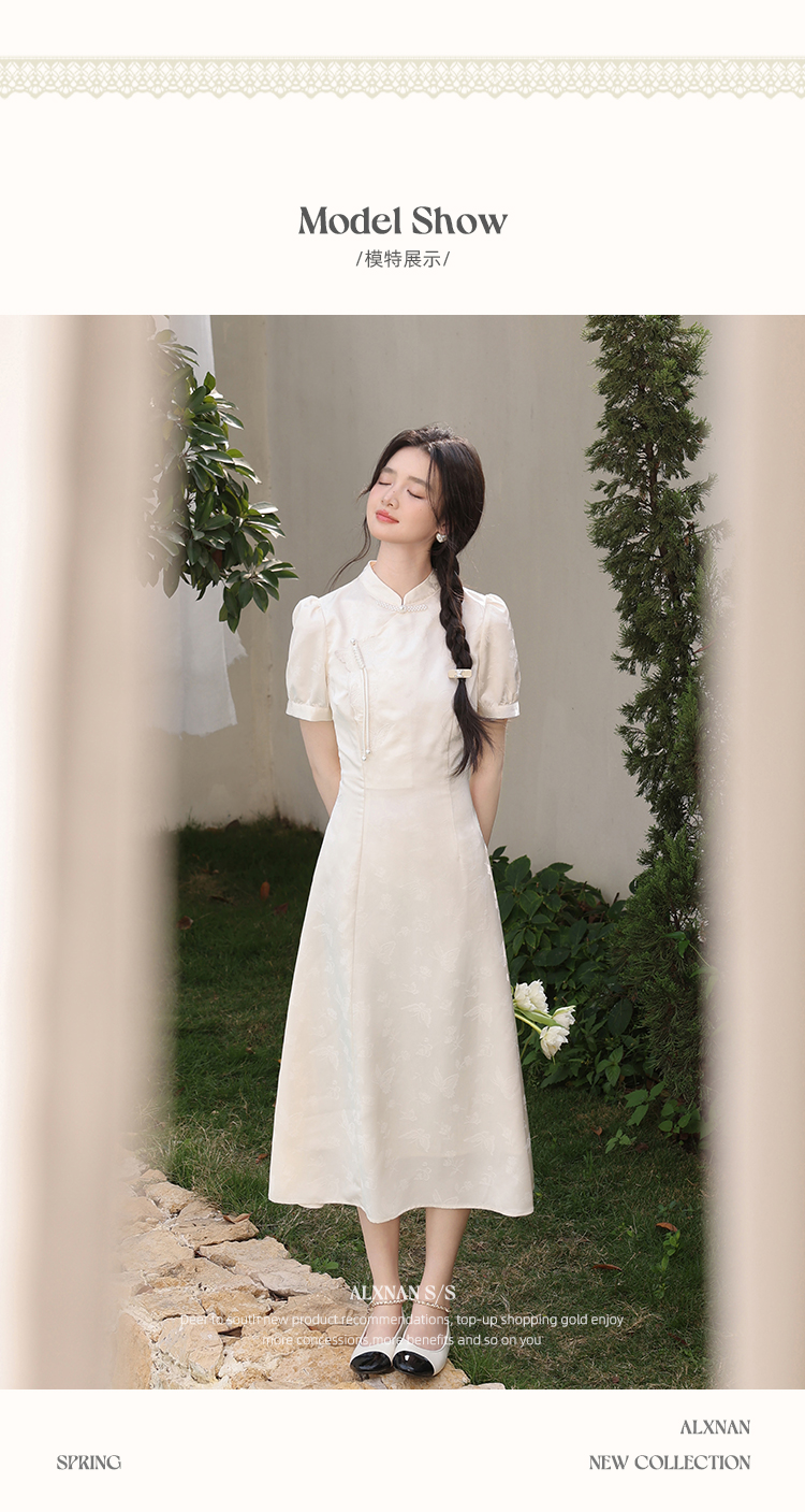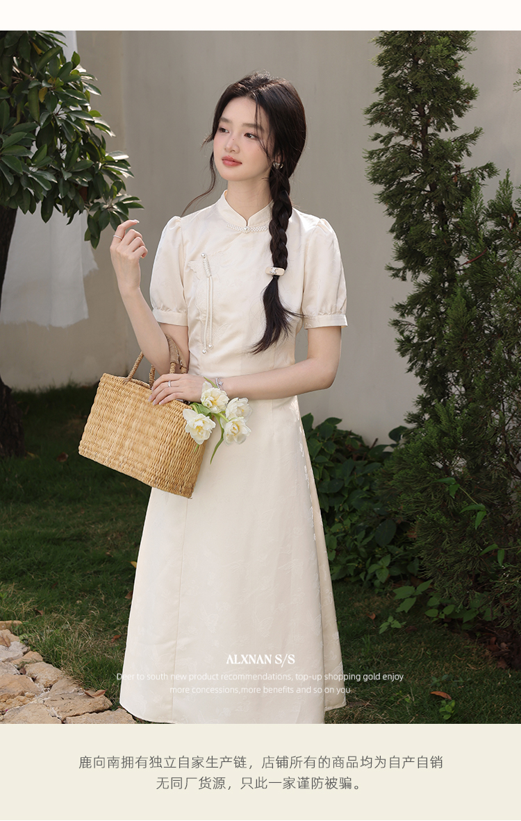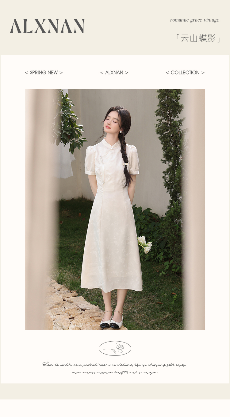 鹿向南「云山蝶影」新中式旗袍气质连衣裙女夏收腰显瘦好看长裙子L53639