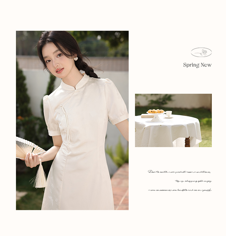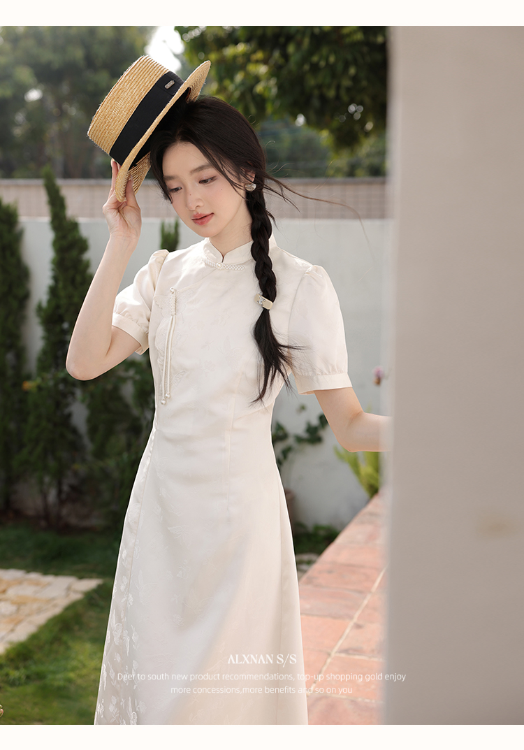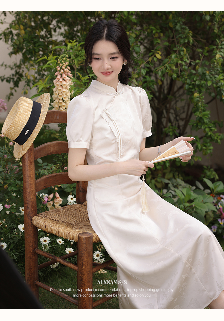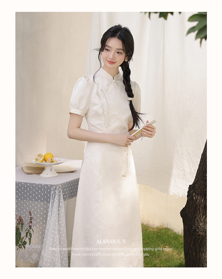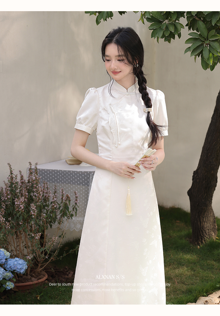 鹿向南「云山蝶影」新中式旗袍气质连衣裙女夏收腰显瘦好看长裙子L53639