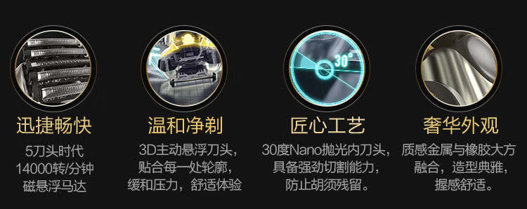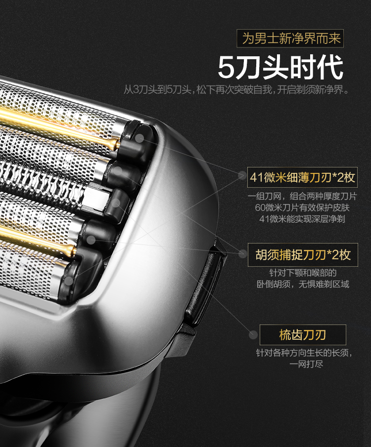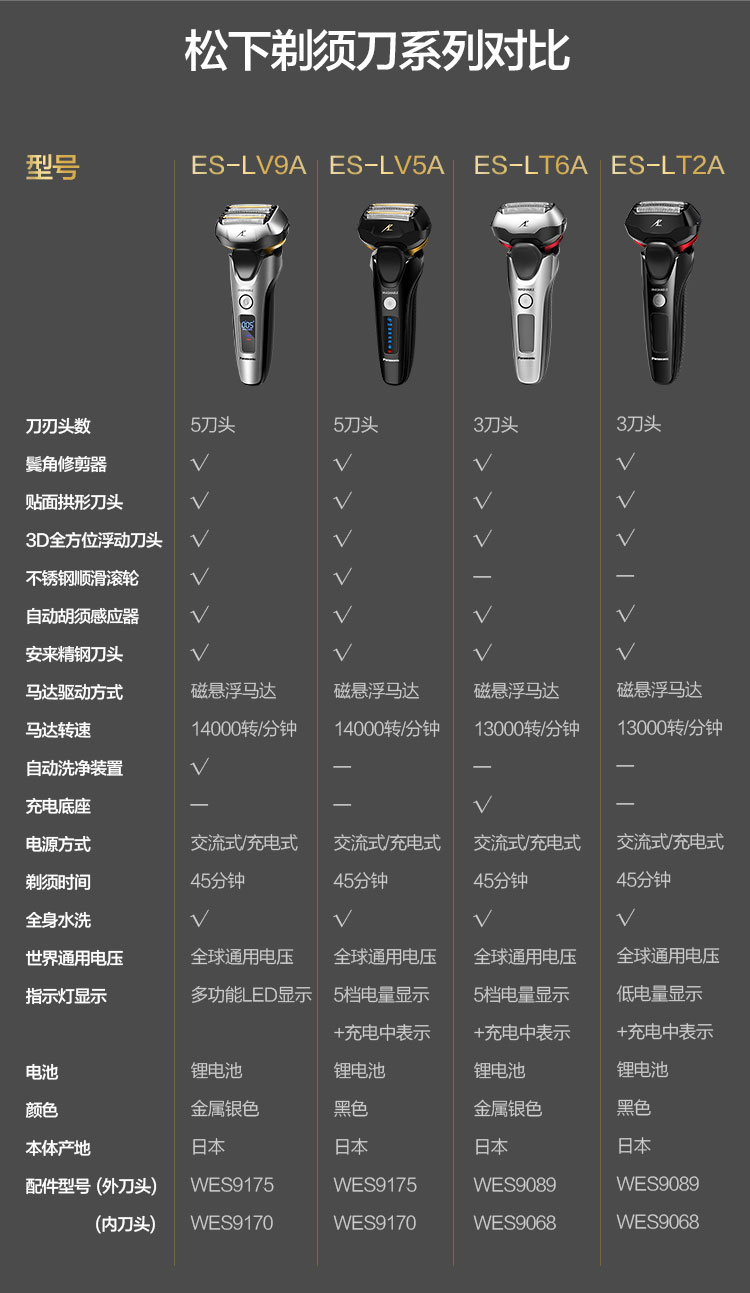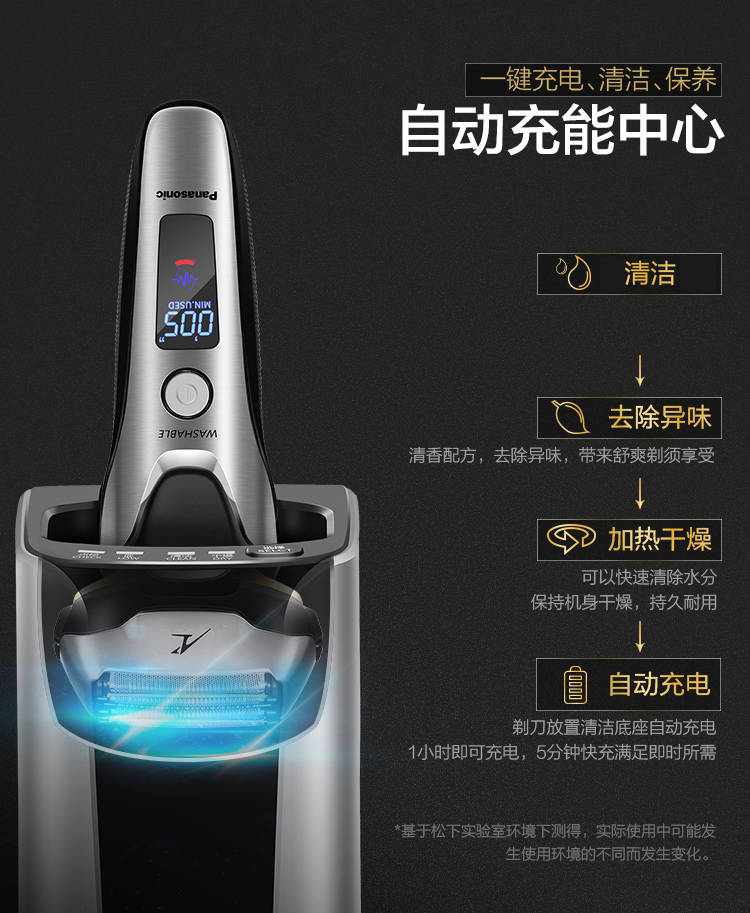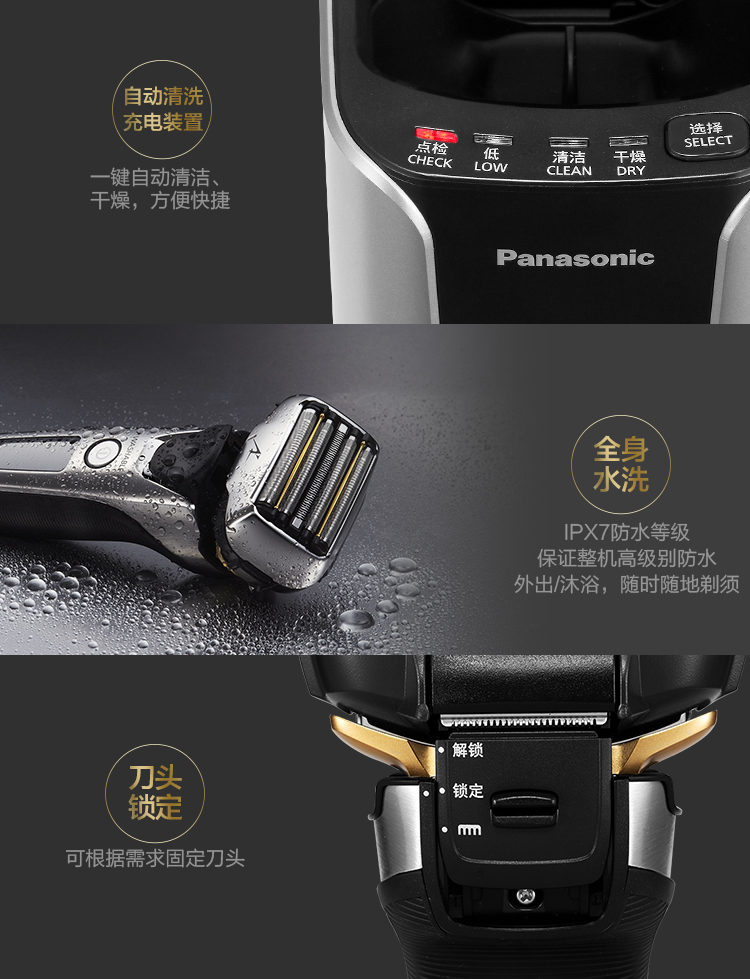 松下(Panasonic)电动剃须刀刮胡刀充电往复式5D柔性浮动五刀头整机进口自动清洁剃须刀ES-LV9A-S706