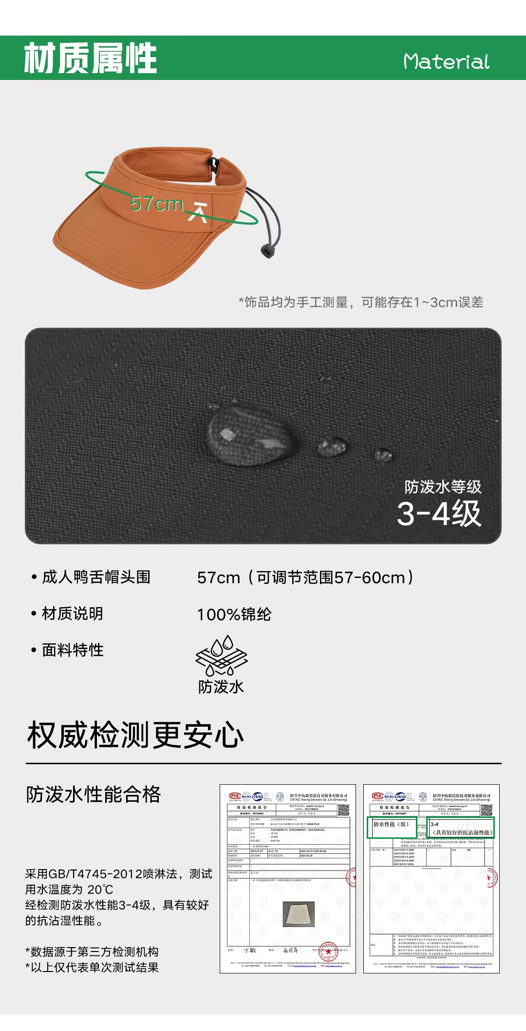 【出游季特惠】ACMEITEM爱棵米-户外防泼水空顶帽可调节弹力绳休闲跑步帽子男女GAG3540402A
