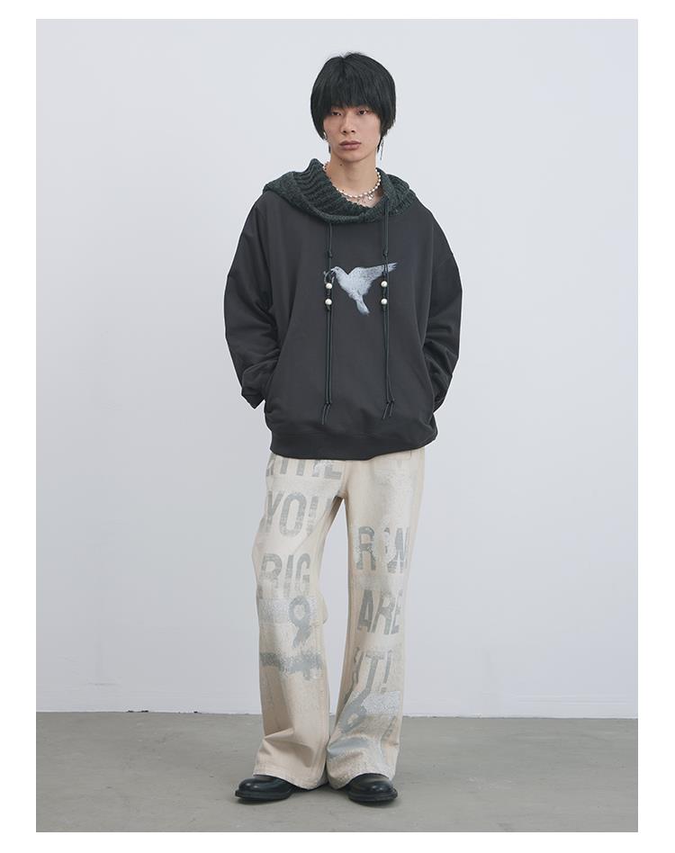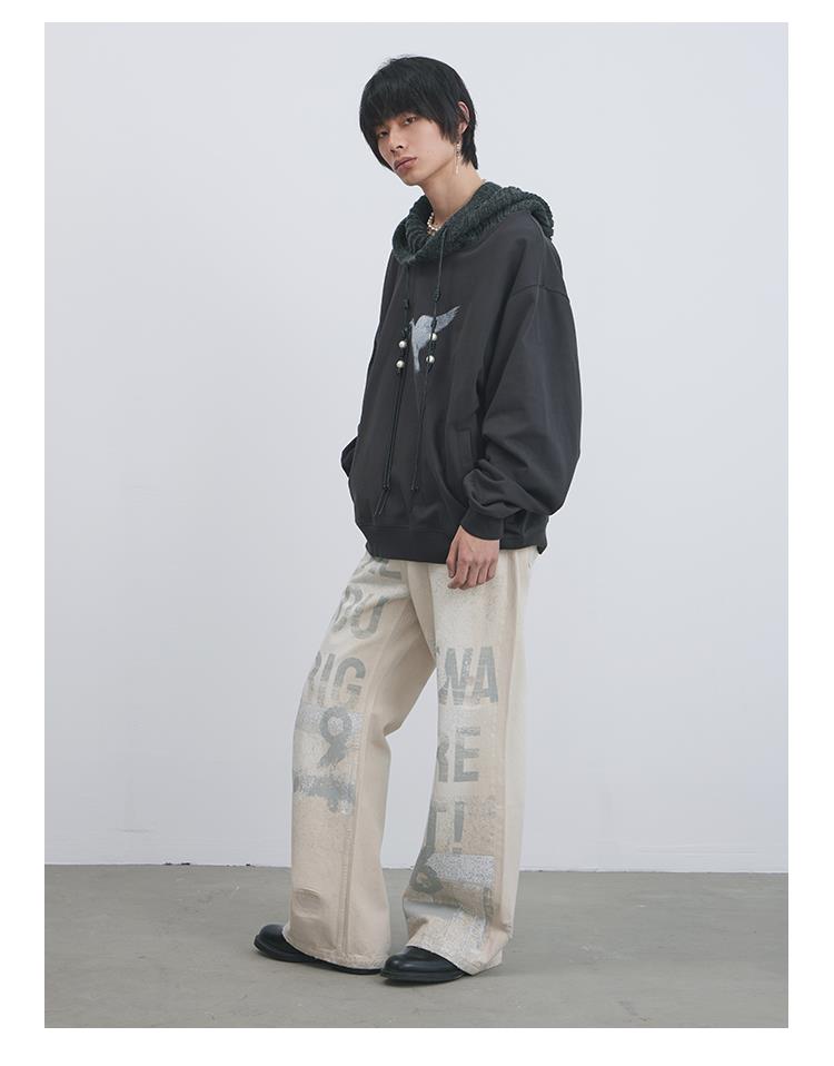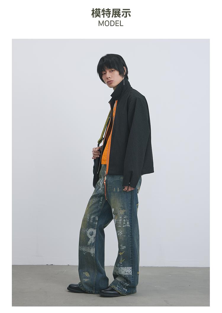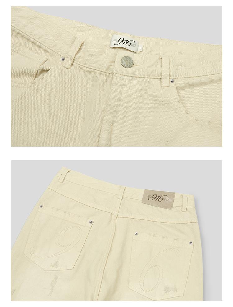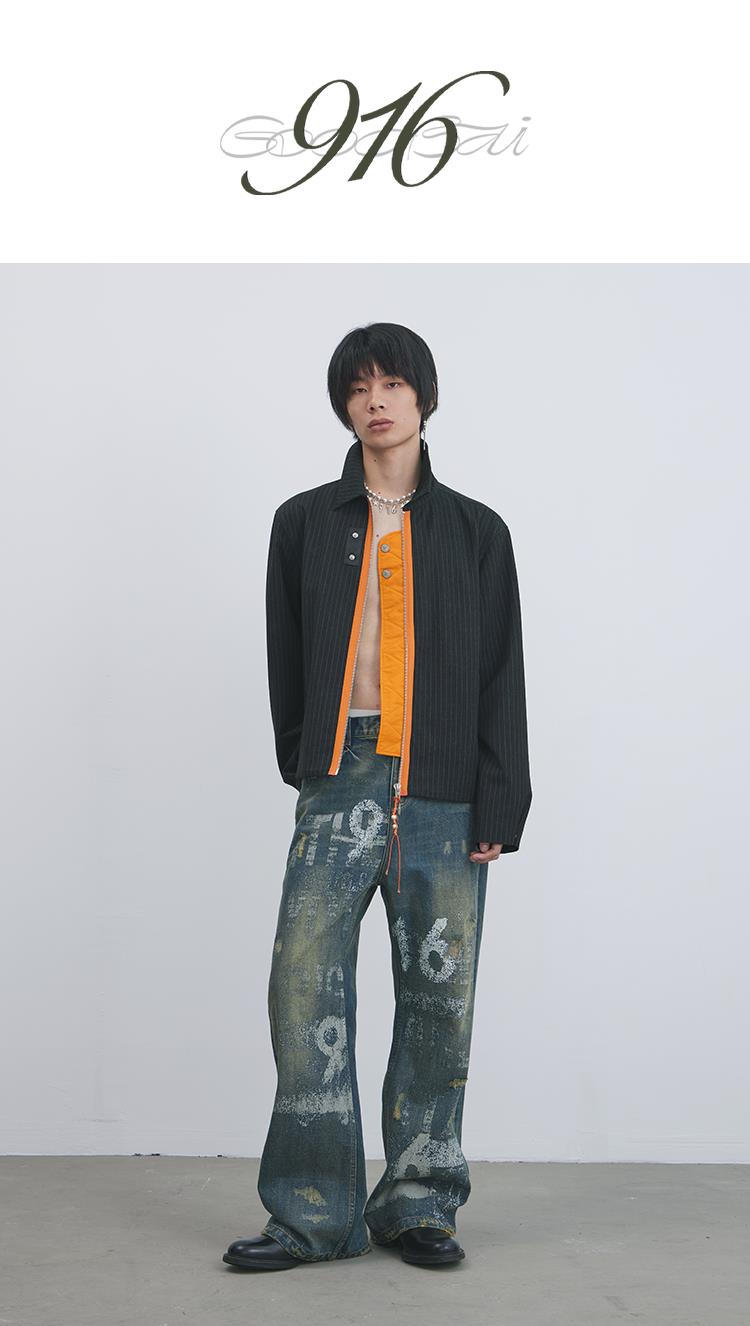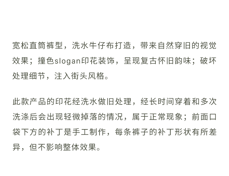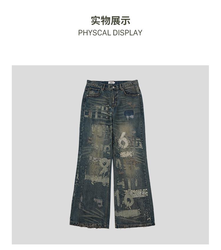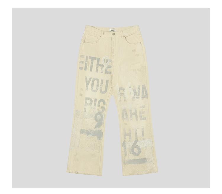 GOODBAI 916 slogan做旧印花水洗直筒牛仔裤