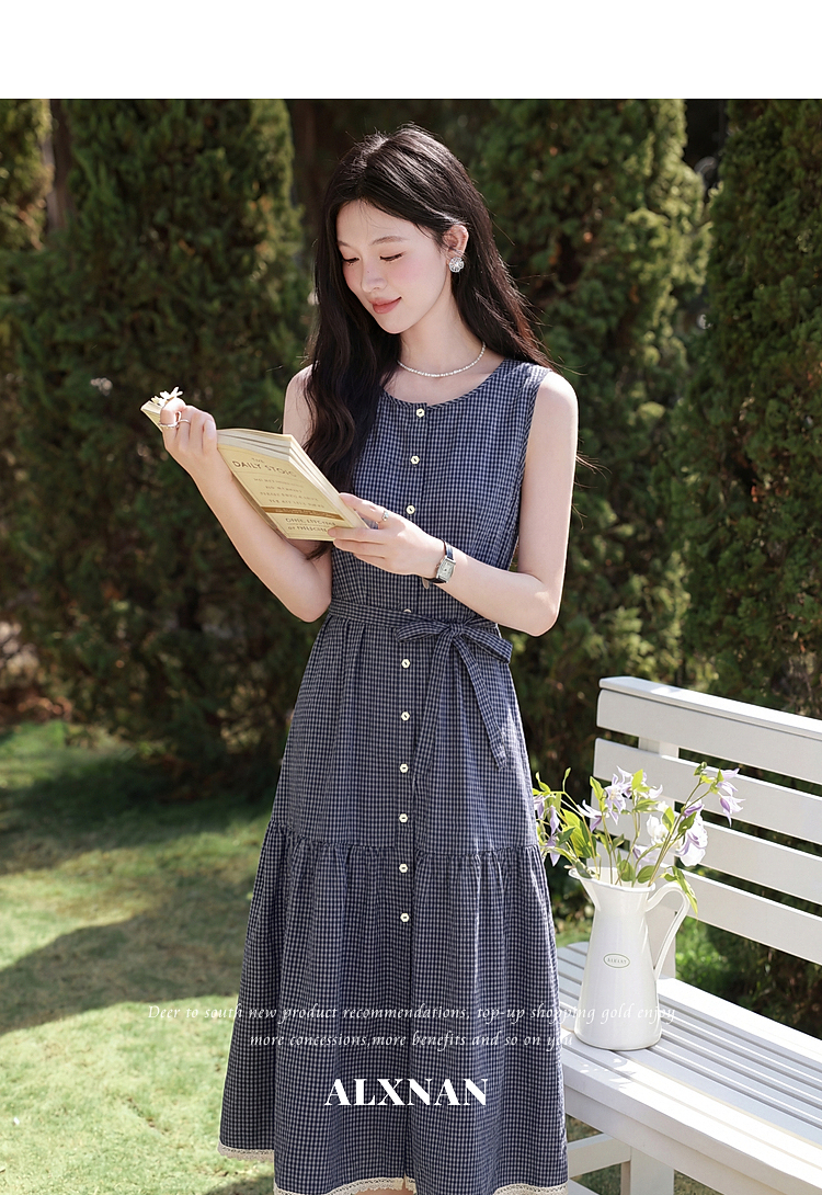 鹿向南【0420/20:00新品前1小时7折限量100件】藏蓝色连衣裙