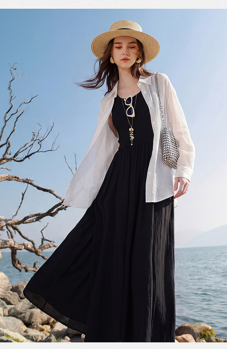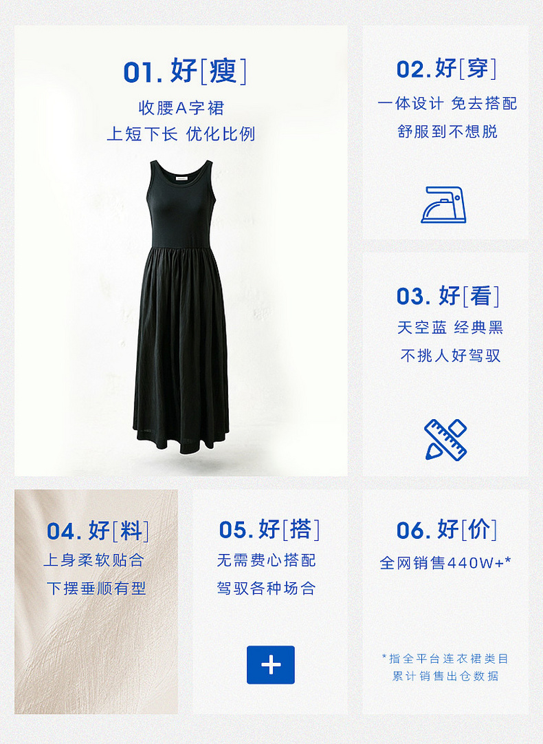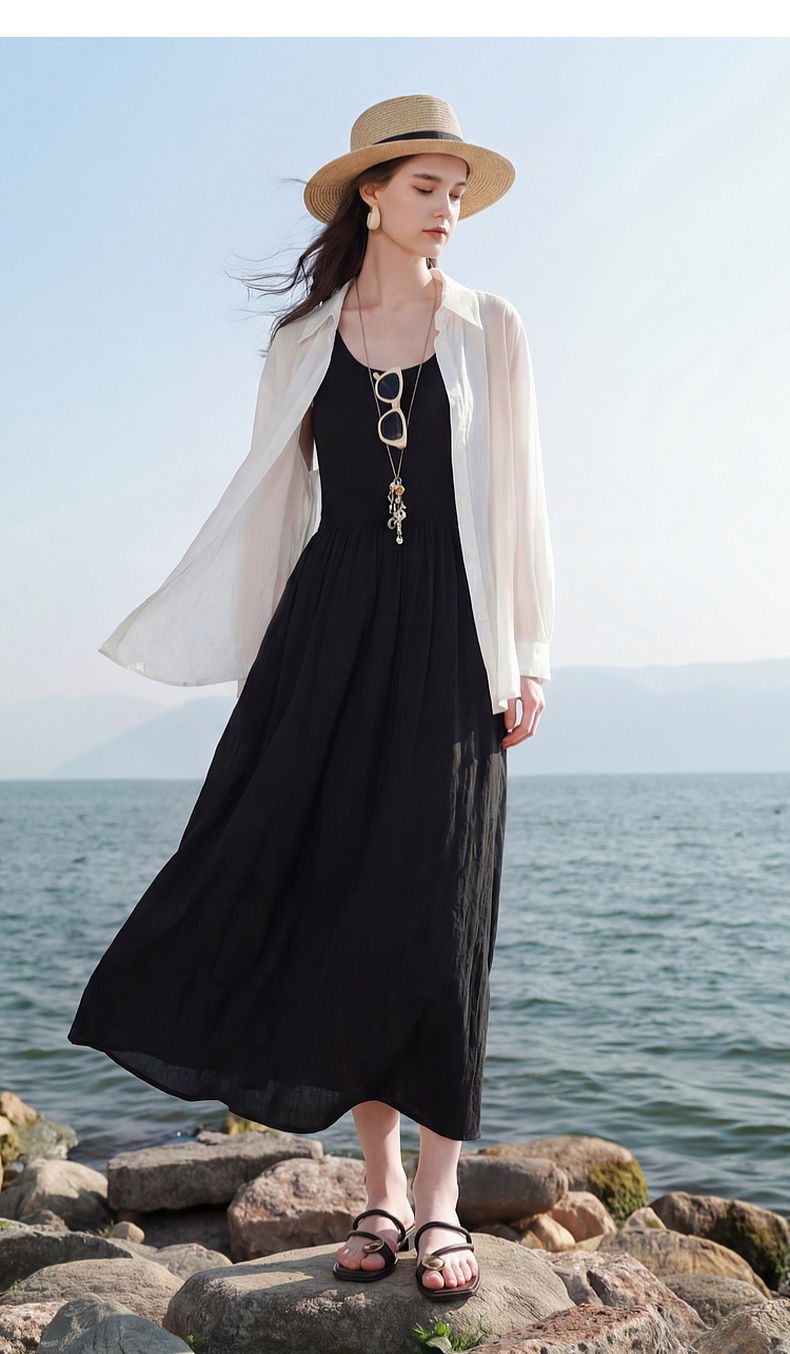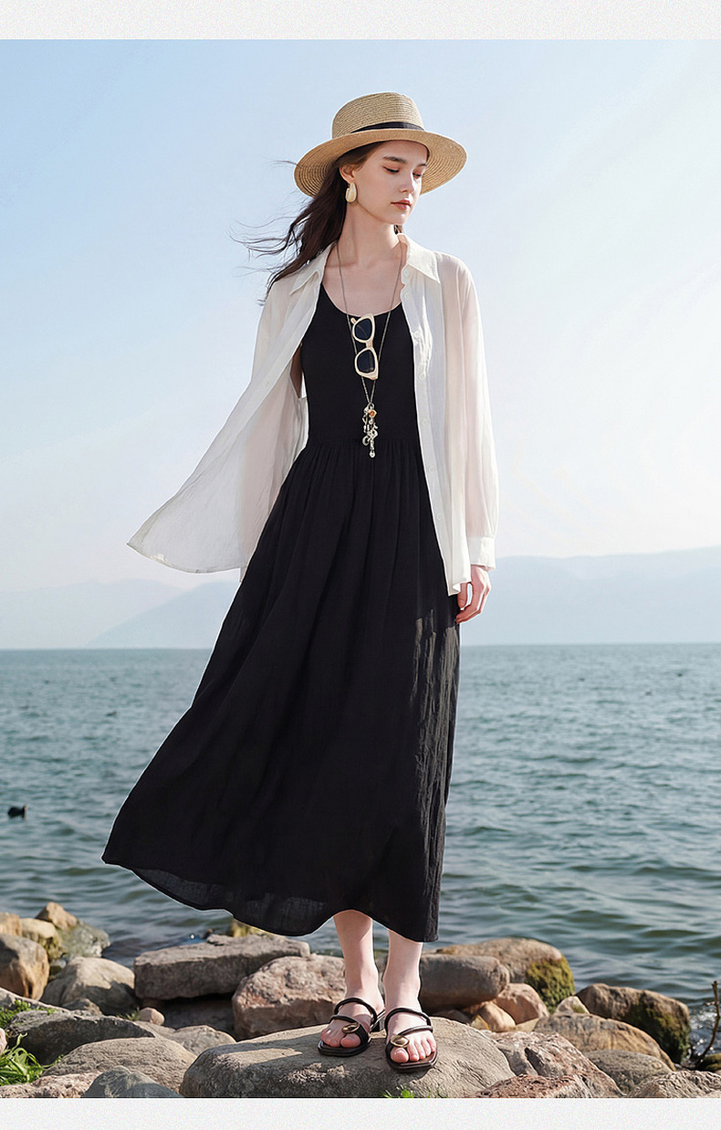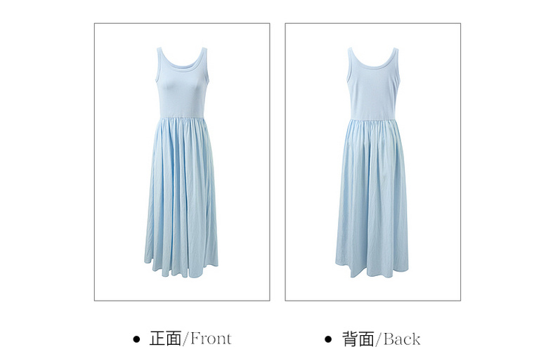 三彩2026夏季新款圆领无袖背心裙休闲连衣裙收腰A字裙长裙Z
