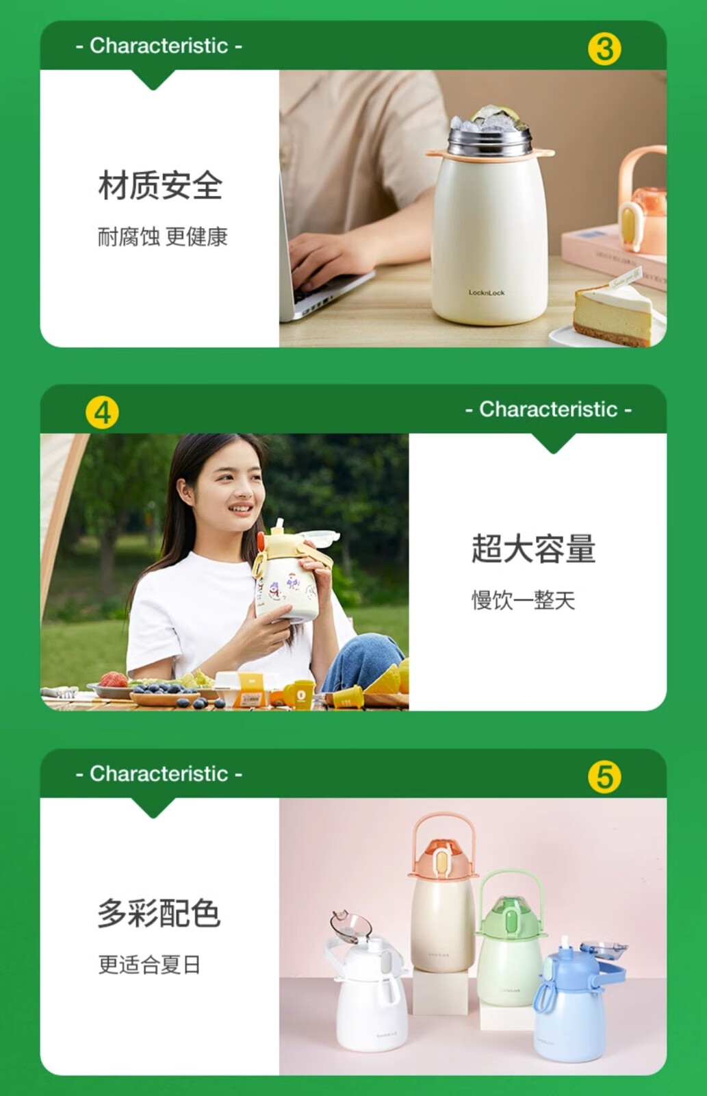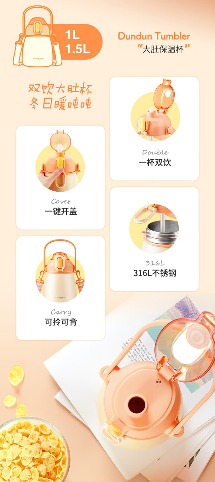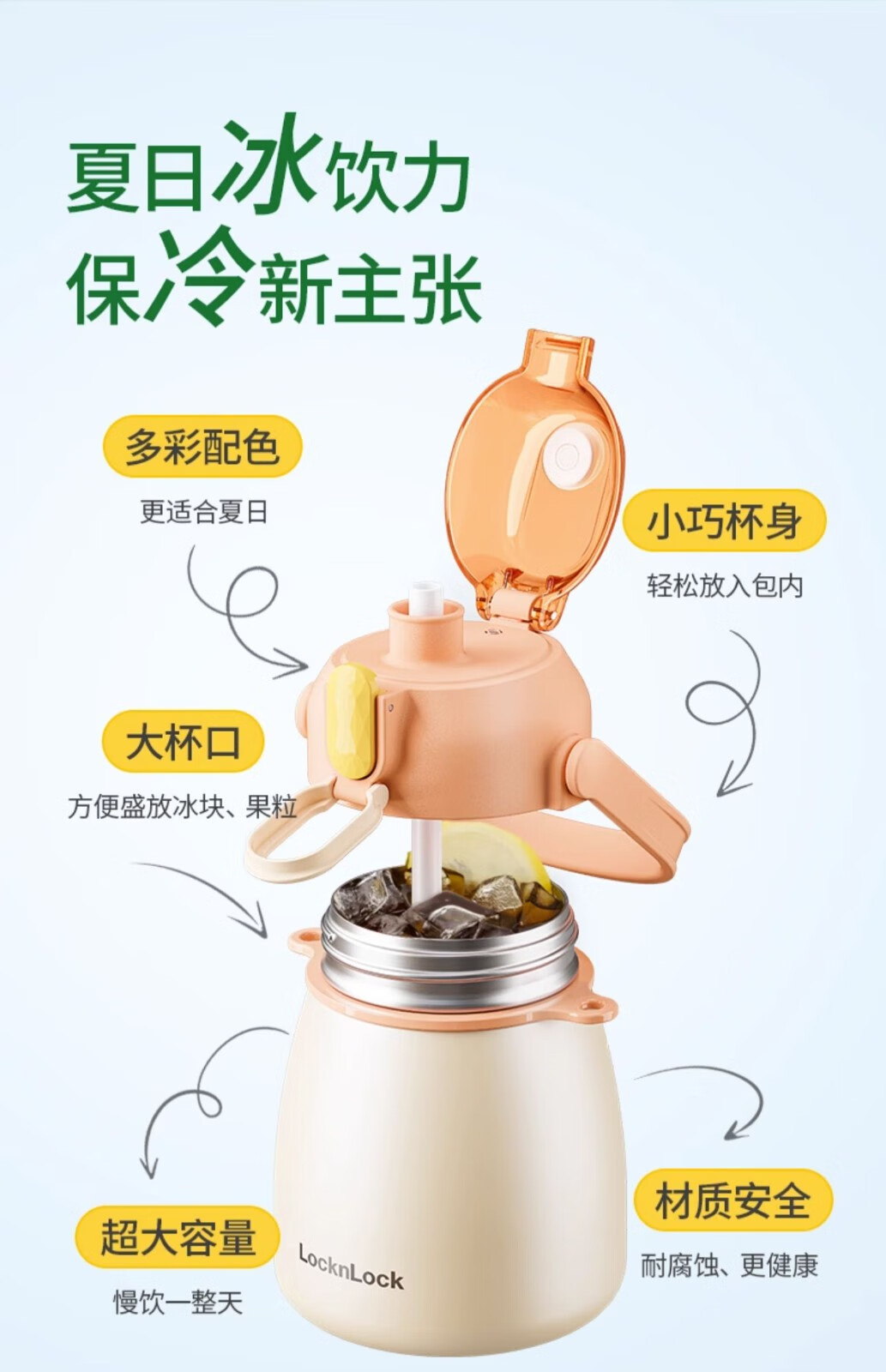 乐扣乐扣直饮/吸管 二用 大肚保温杯 LHC3311GRN