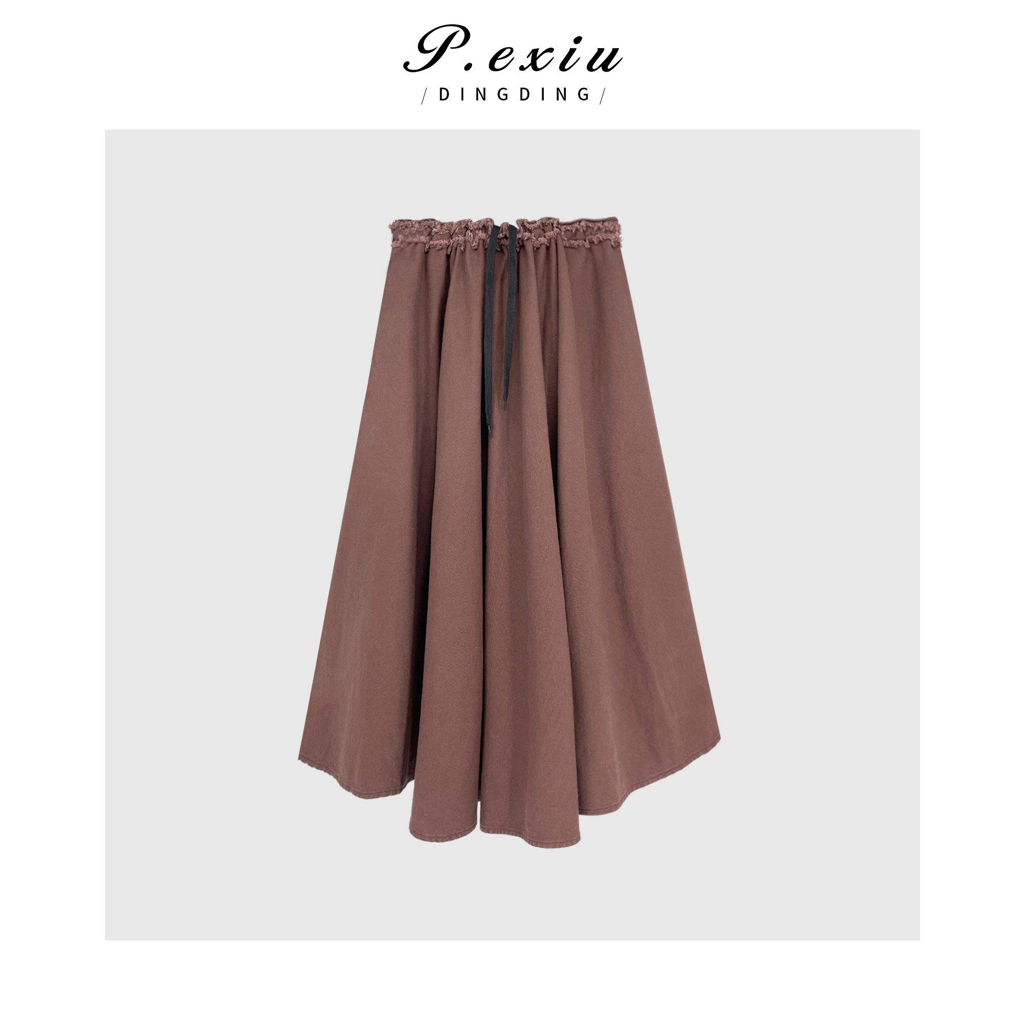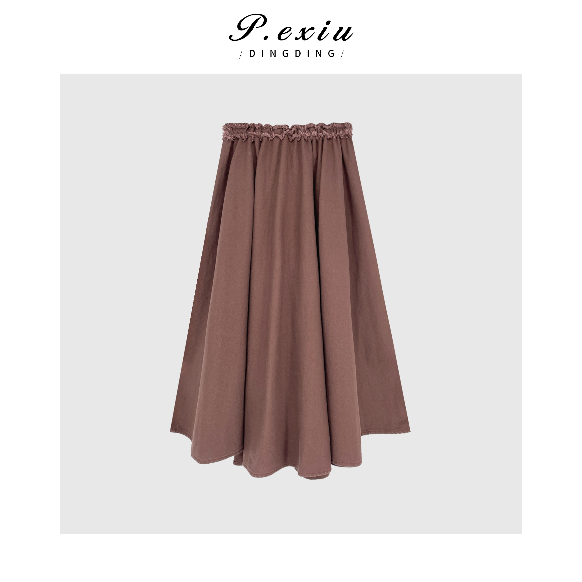 PanYiXiu/潘依绣【气质通勤】100%棉美拉德松紧腰牛仔半身裙 D6075