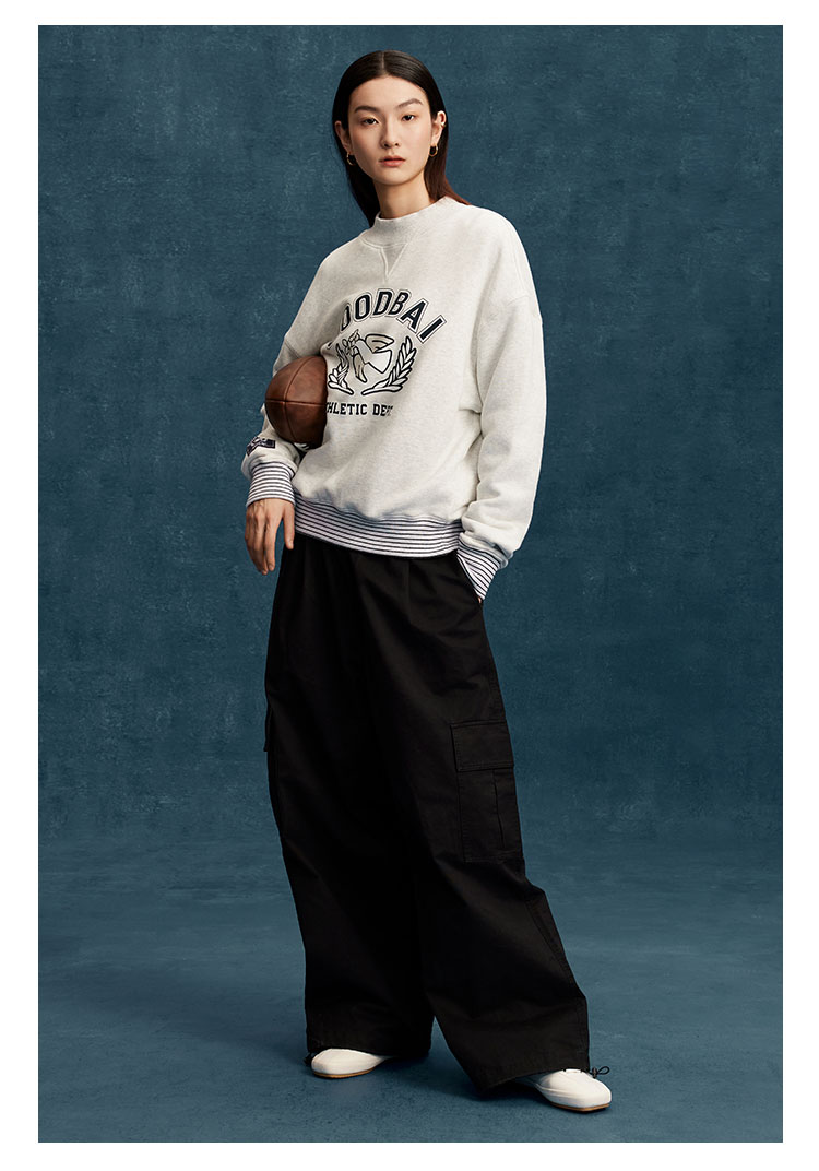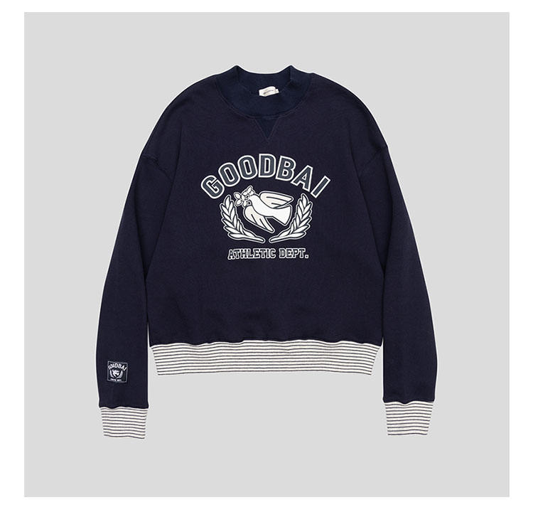 GOODBAI白鸽学院logo印花半高领宽松卫衣