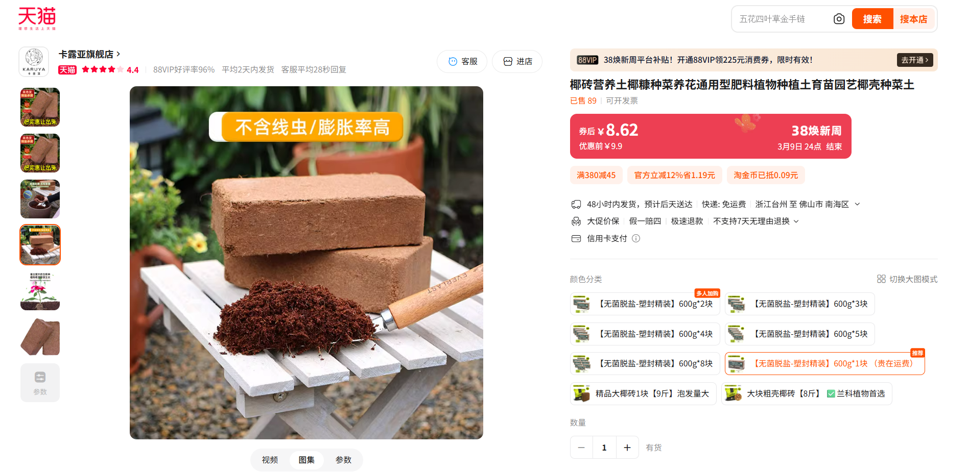 高泡发椰砖营养土椰糠种菜养花通用型肥料
