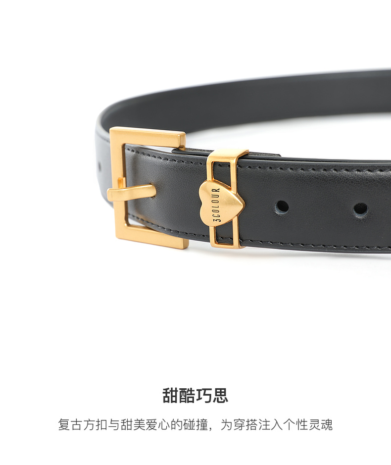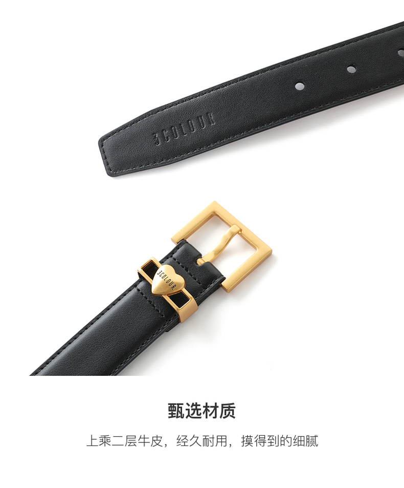 三彩2026新款法式腰带方形针扣二层牛皮复古甜酷爱心百搭通勤女