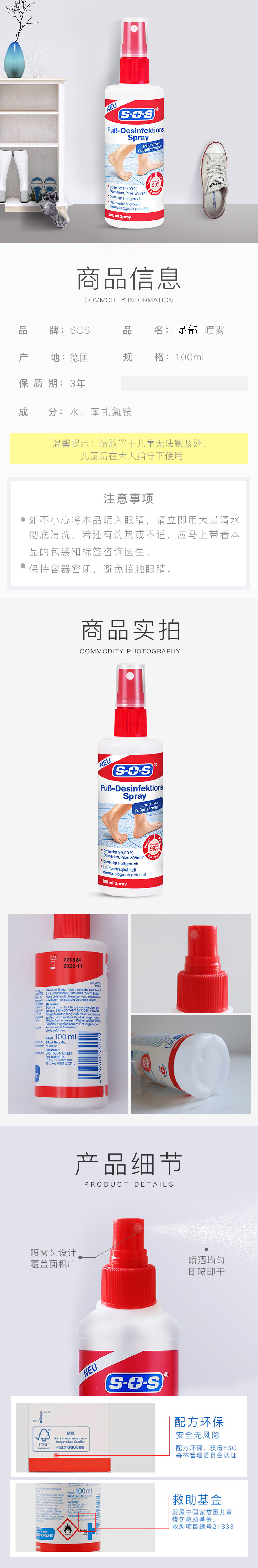 【适应症状】预防脚气、抑菌止痒孕妇都可以用【使用方法】 喷雾式设计,每次对准足部患处、鞋、袜各喷洒1·2次,可多次使用【注意事项】(1)避免儿童接触,儿童请在大人指导下使用。(2)避免接触眼睛,若不慎入眼,请立即用大量清水清洗彻底;若还有灼热或不适感,请立即就医。【发货地】广州【发货快递】中通快递【发货时间】72小时发货【不发货地区】新疆、西藏【偏远运费】内蒙、海南、青海、甘肃、宁夏➕3元【售后标准】1、收到后如有质量问题24小时之内带面单+产品照片联系客服进行赔付或者补发2、产品一旦发出后拒绝任何形式拒签,收到产品后当场验货,如出现问题,请及时拍照并与我们联系,我们会第一时间处理3、客户留地址 电话等信息导致货物不能正常送达均不在售后范围内4、产品已经发出的情况下,不可更改地址,不退货下单前,一定要留对信息,如果一定要更改地址,该地址产生的运费我们不承担5、不以个人喜爱为由进行售后6、每天安排提交订单提交订单后不允许改地址!7、下单前请核实订单信息!下单后不接受订单备注!【售后说明】1.拒收是否扣除来回运费:扣5元运费