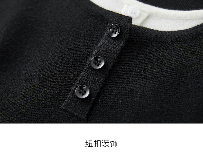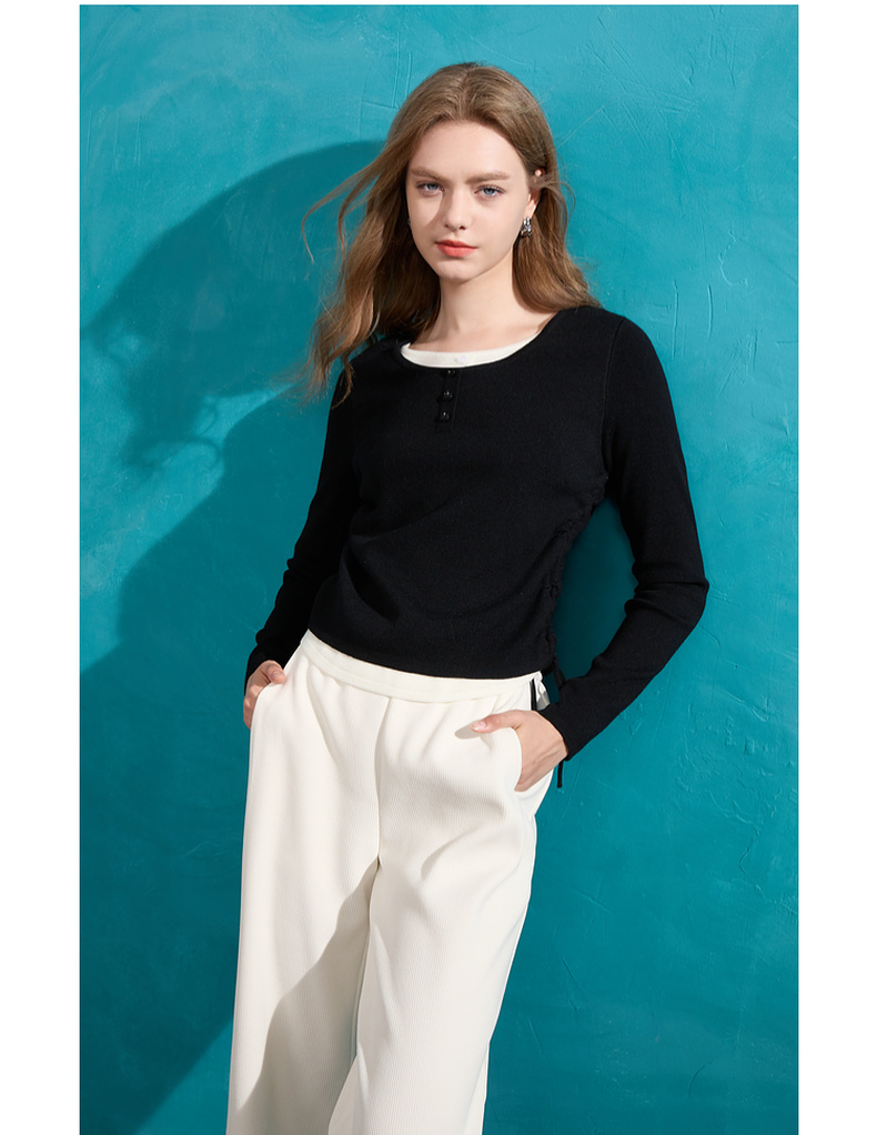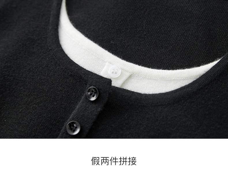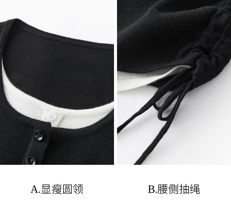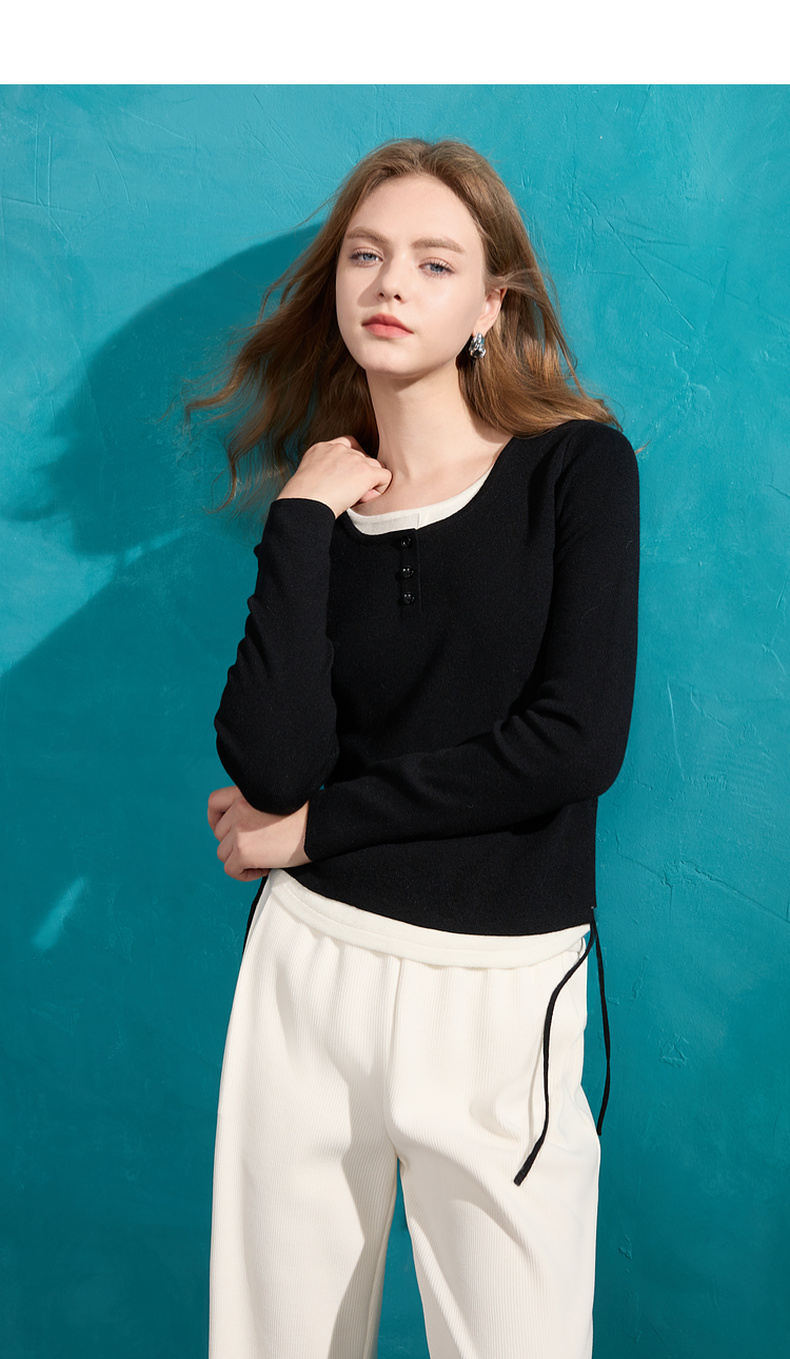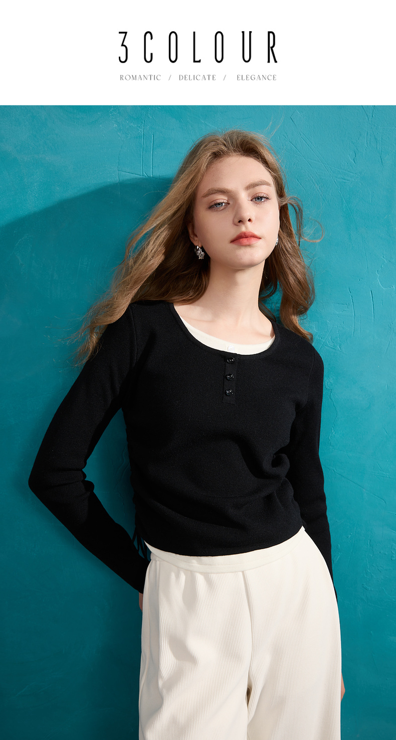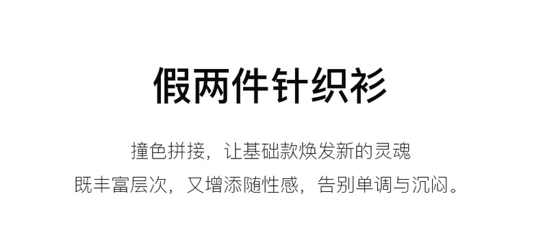【抗起球】三彩2024冬季新款假两件针织衫撞色圆领抽绳毛衣修身内搭毛衫女M