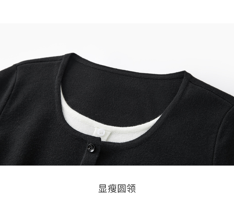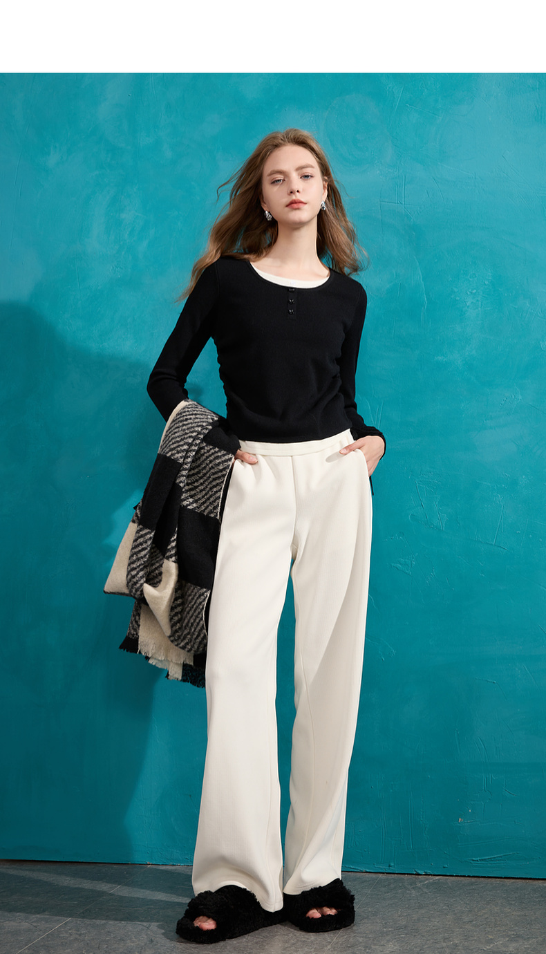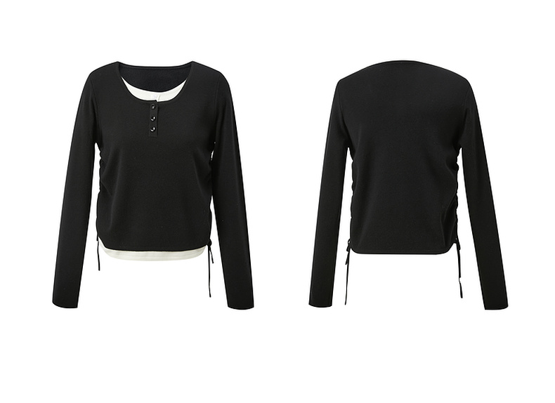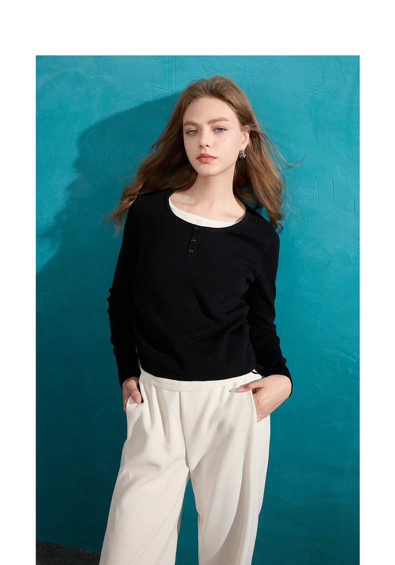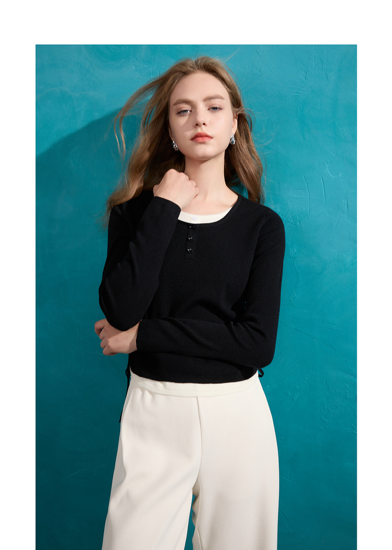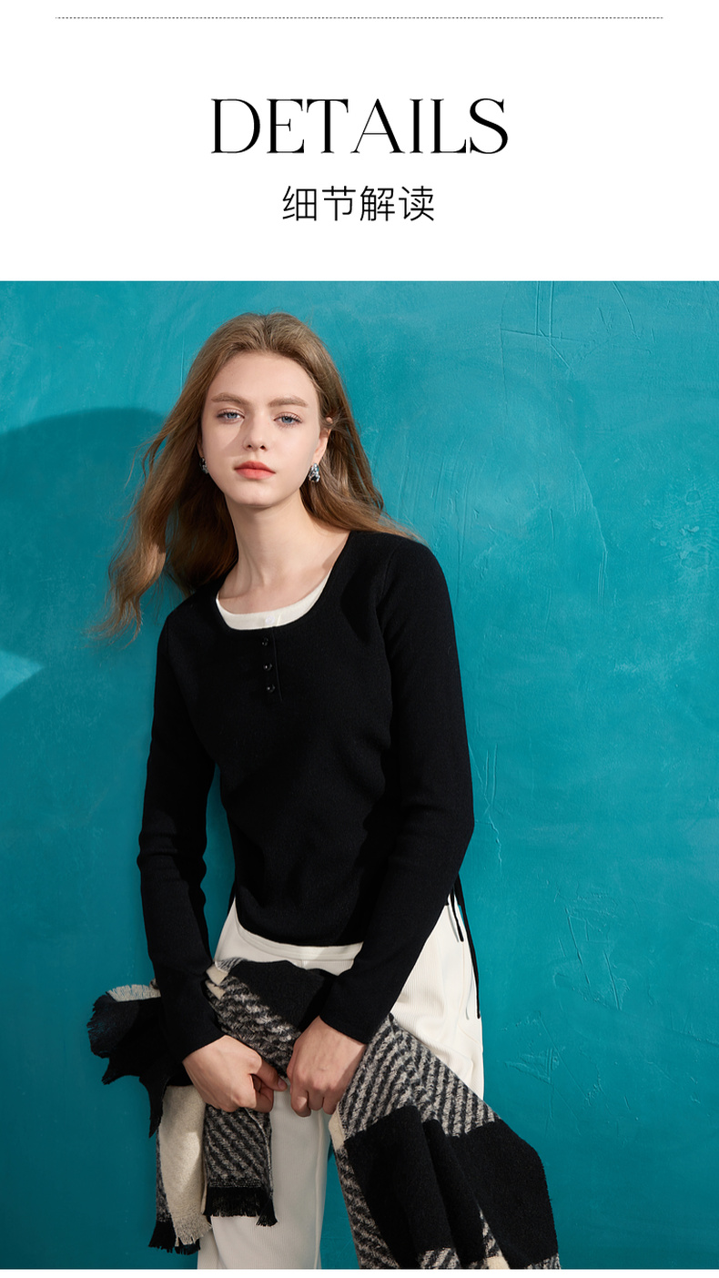 【抗起球】三彩2024冬季新款假两件针织衫撞色圆领抽绳毛衣修身内搭毛衫女M