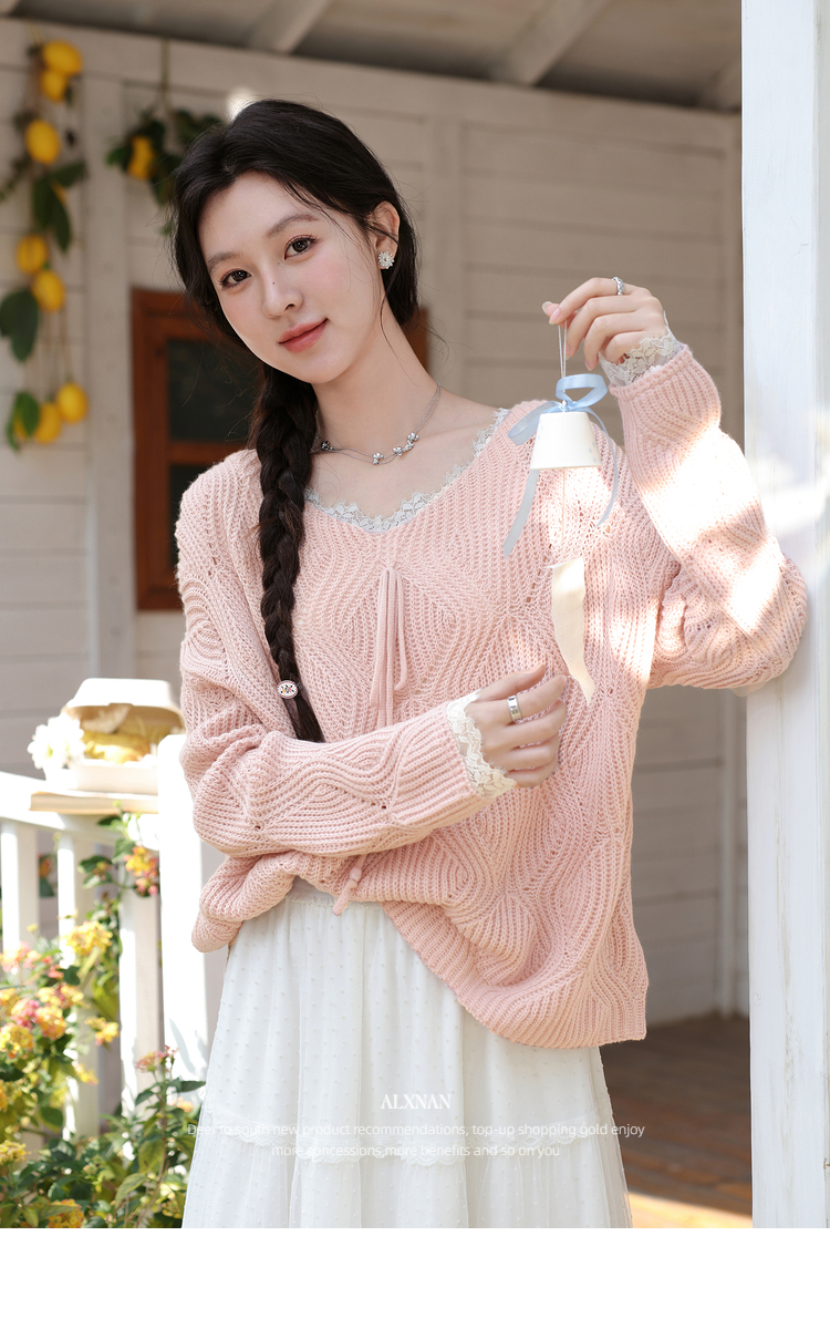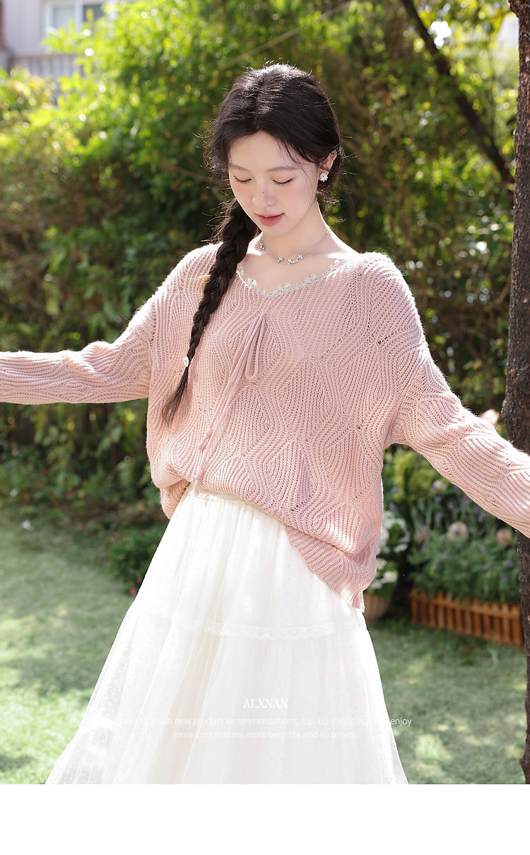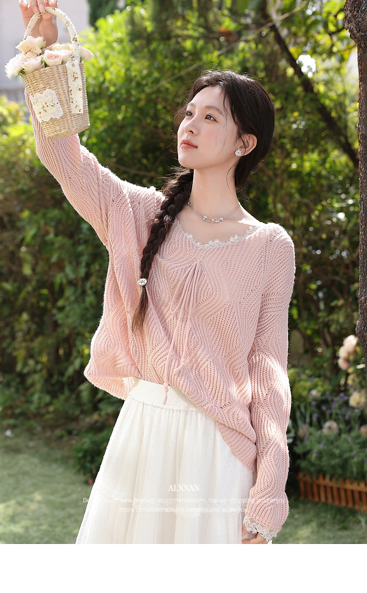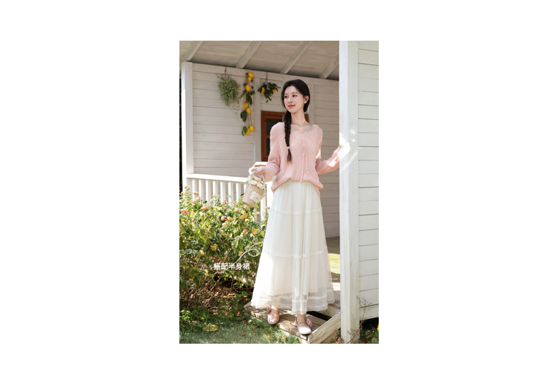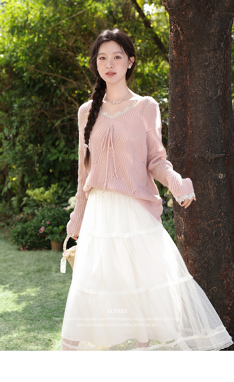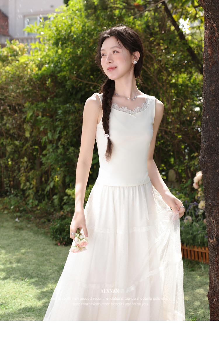 鹿向南「晴肩织夏」杏色蕾丝拼接吊带背心女夏季修身无袖内搭上衣