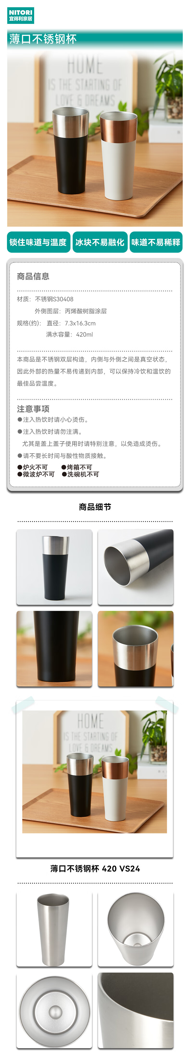大容量喝水杯简约拼色薄口不锈钢杯保温保冷 VS24