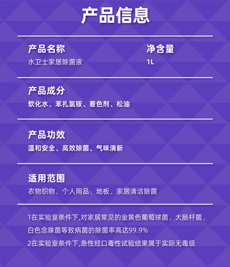 【300积分+25元】水卫士 家居除菌液 1L/瓶 气味清新