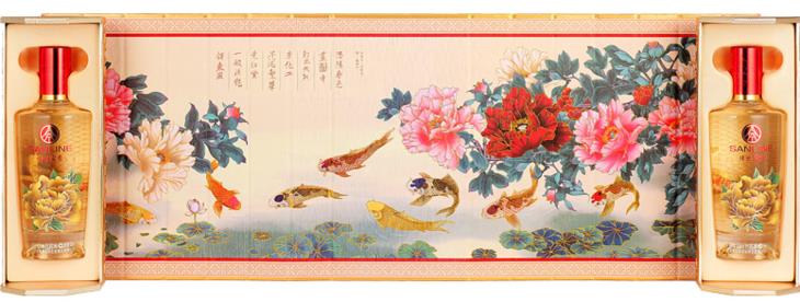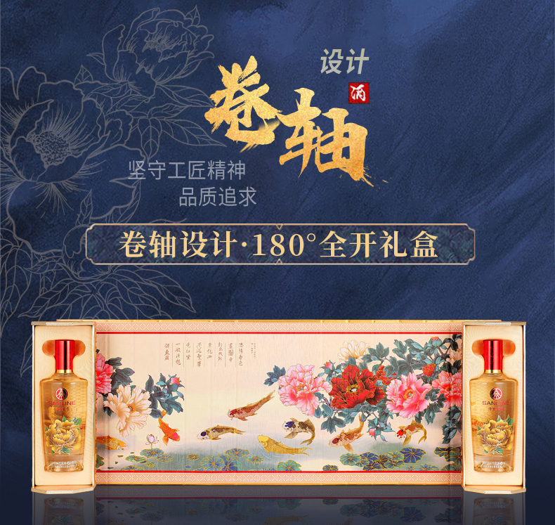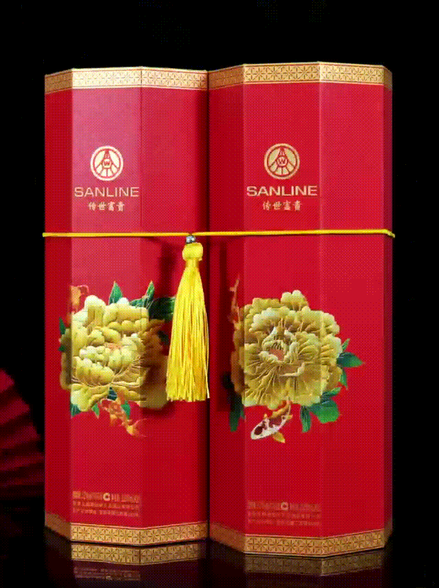 比如这款「传世富贵画卷版竹荪酒礼盒」
