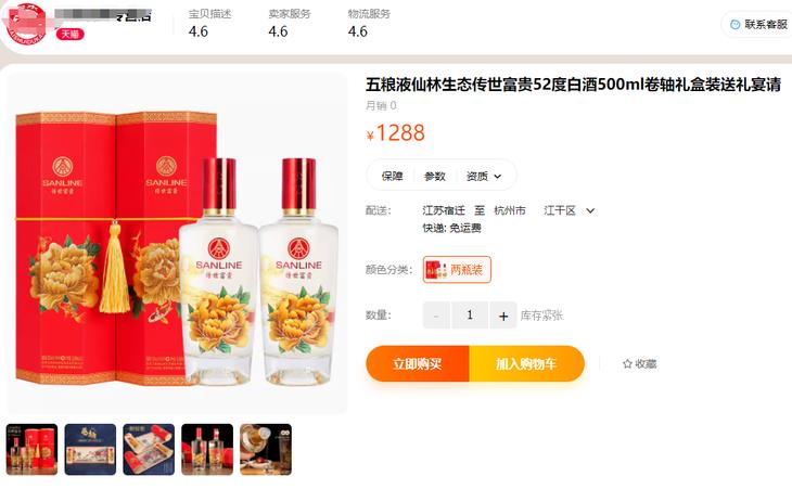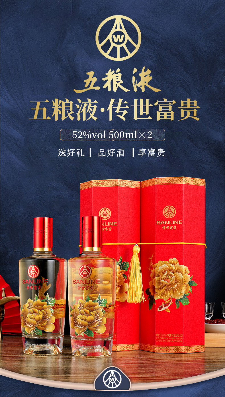 【限时折扣】五粮液仙林生态传世富贵画卷礼盒,500ml*2瓶,含礼袋,五粮液集团出品,“花开富贵”寓意美好