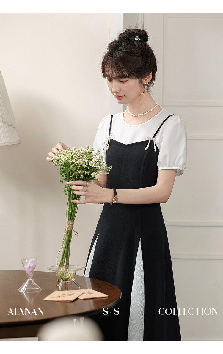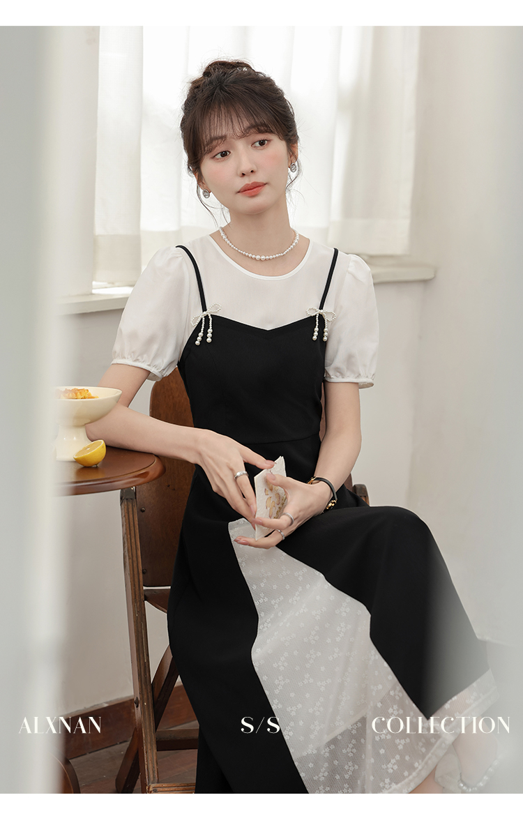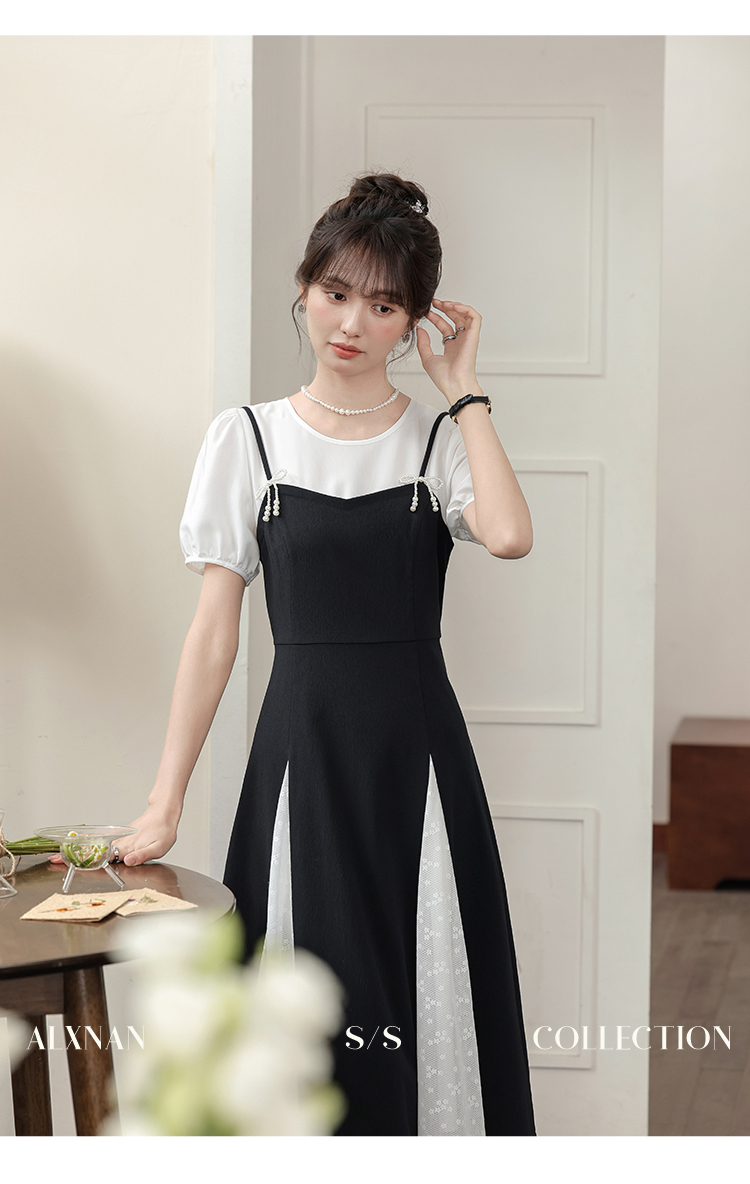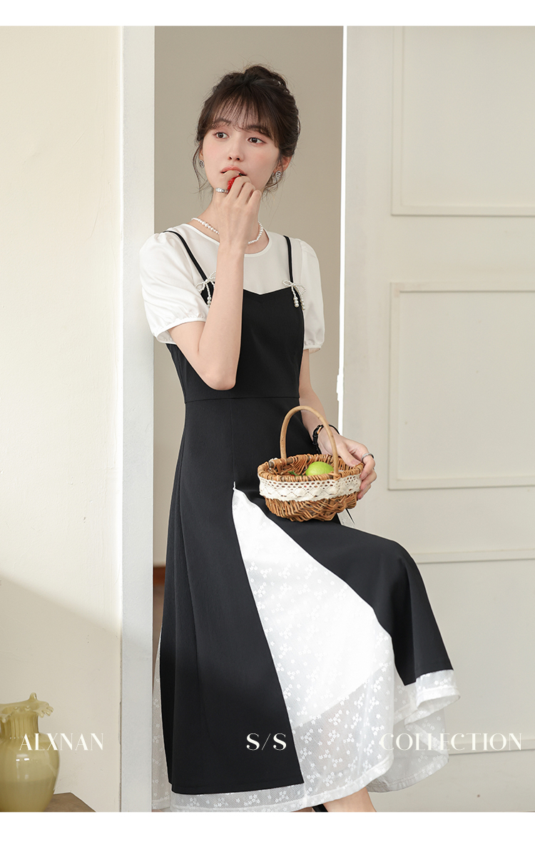 鹿向南「月光舞曲」假两件连衣裙L38606