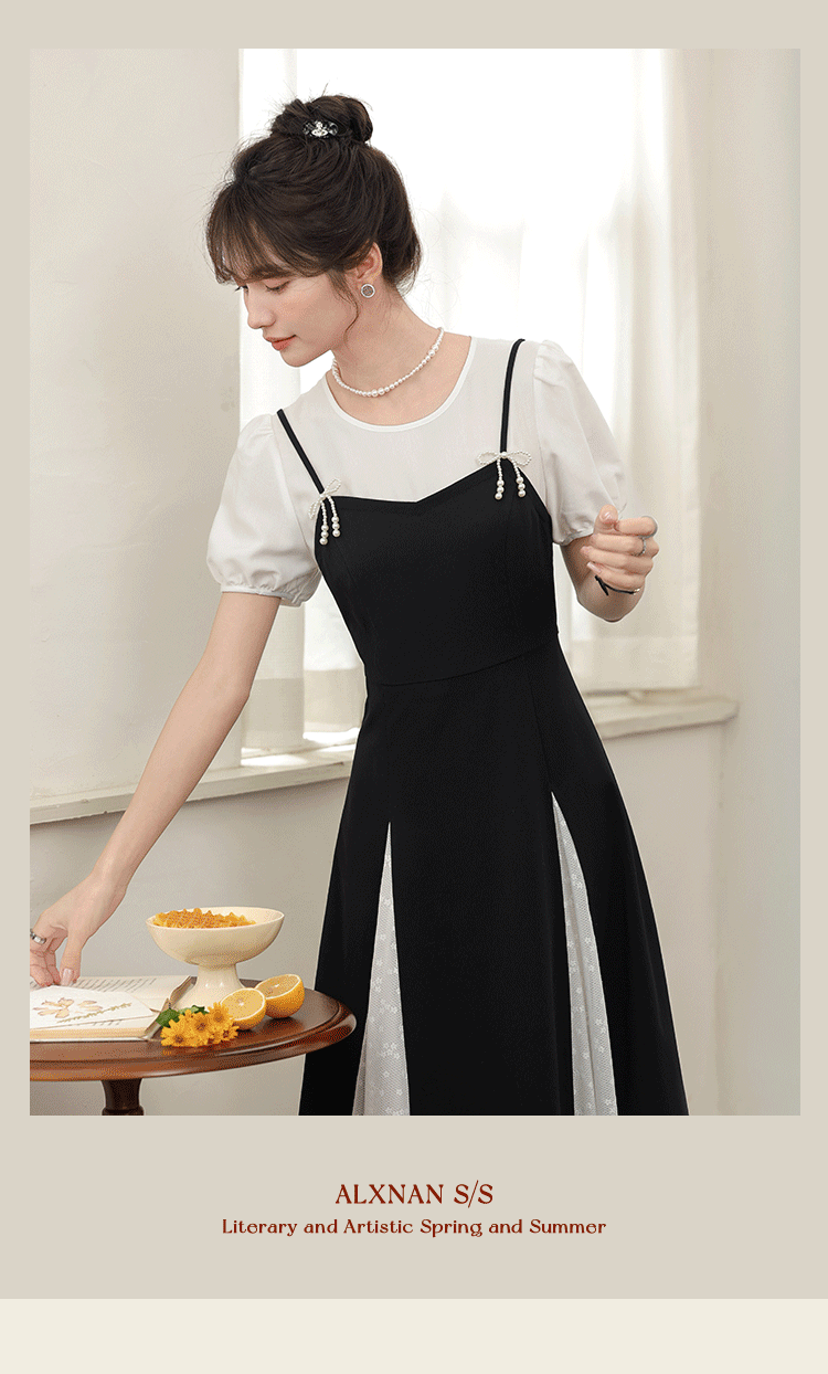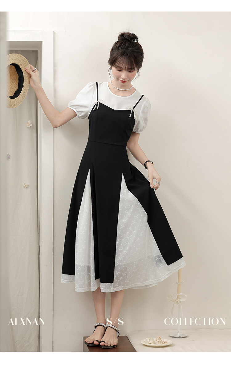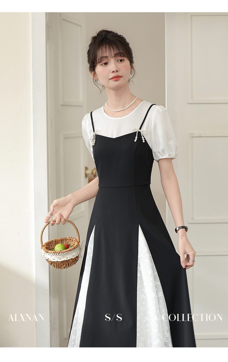 鹿向南「月光舞曲」假两件连衣裙L38606