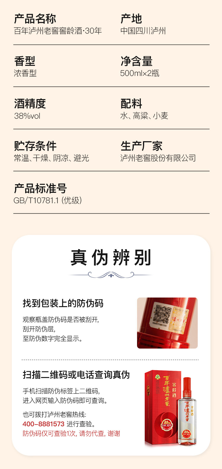 泸州老窖 窖龄30年 浓香型白酒 38度500ml 双瓶装