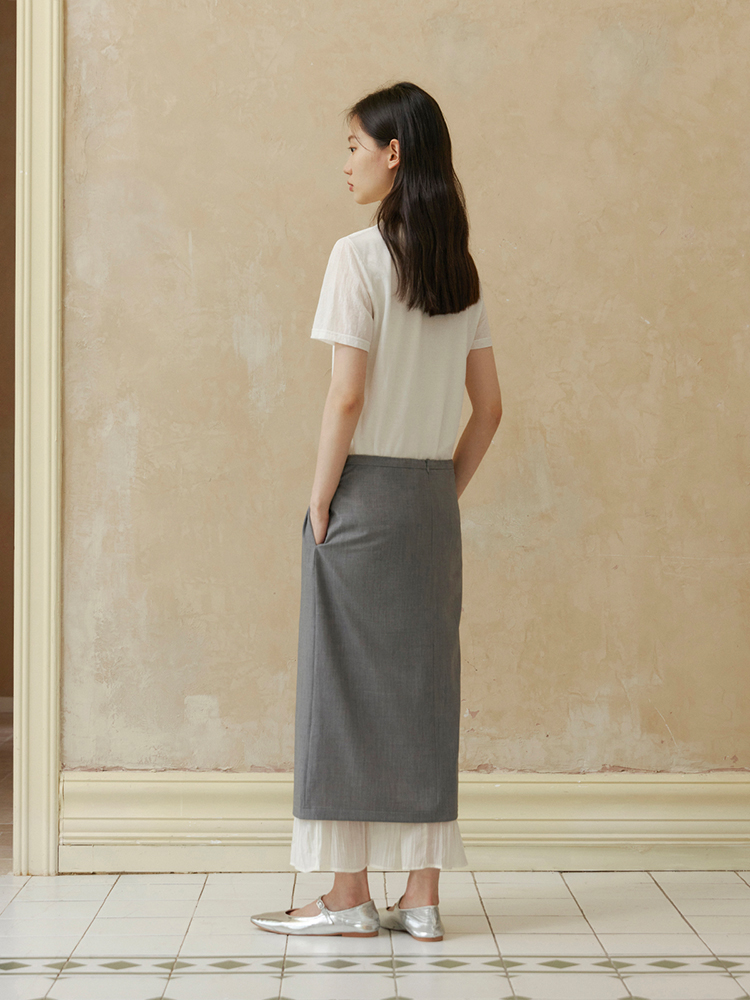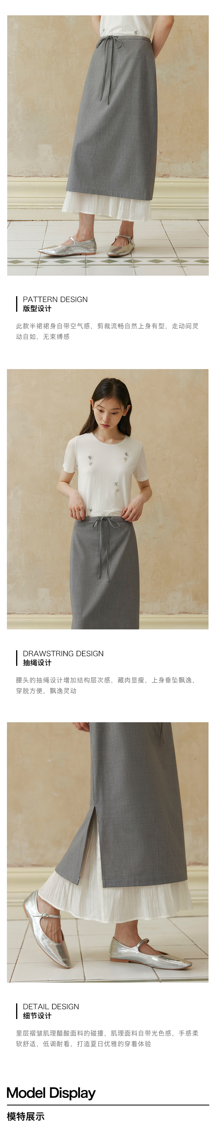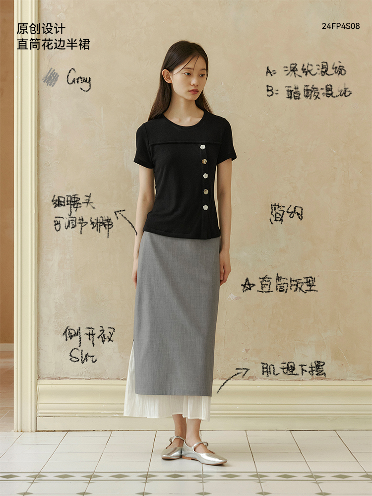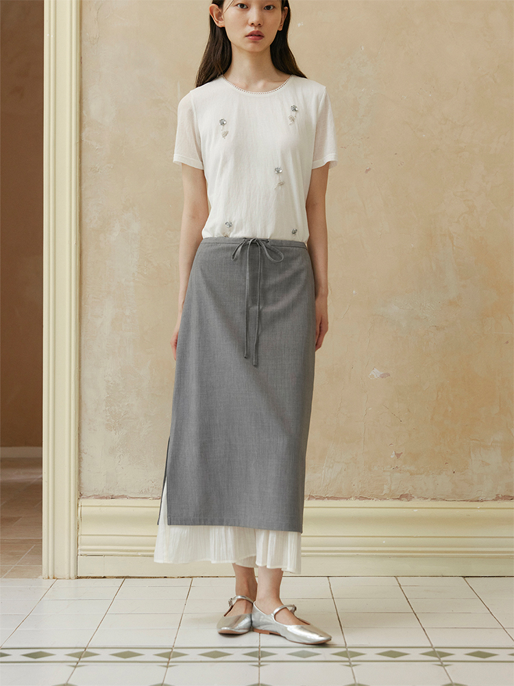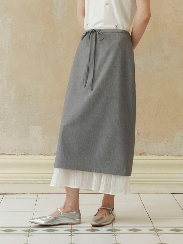 ForPoem 现货 24/SS原创设计抽绳腰简约直筒褶皱花边宽松半裙