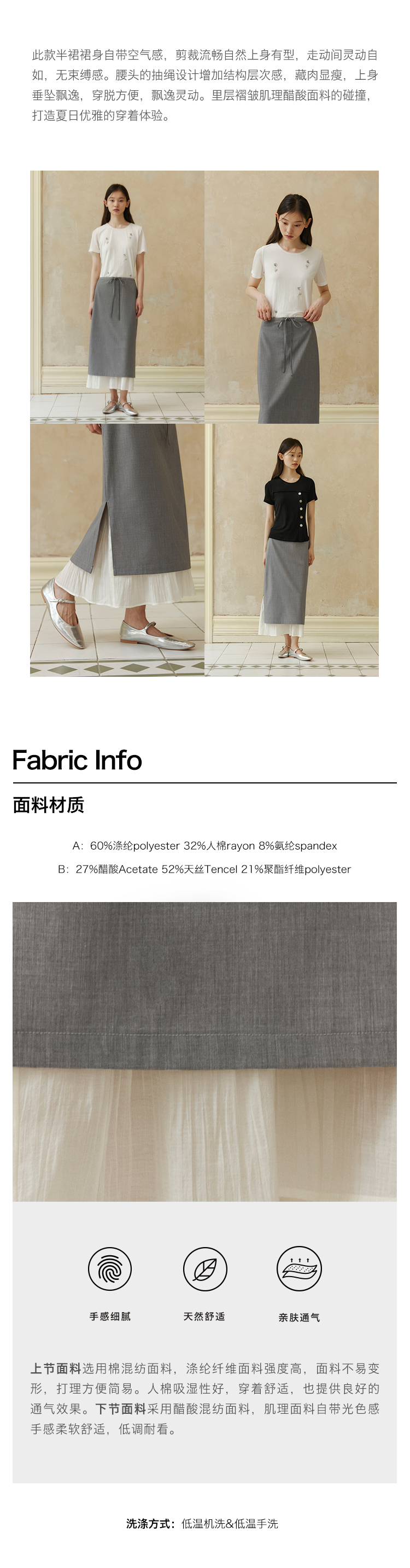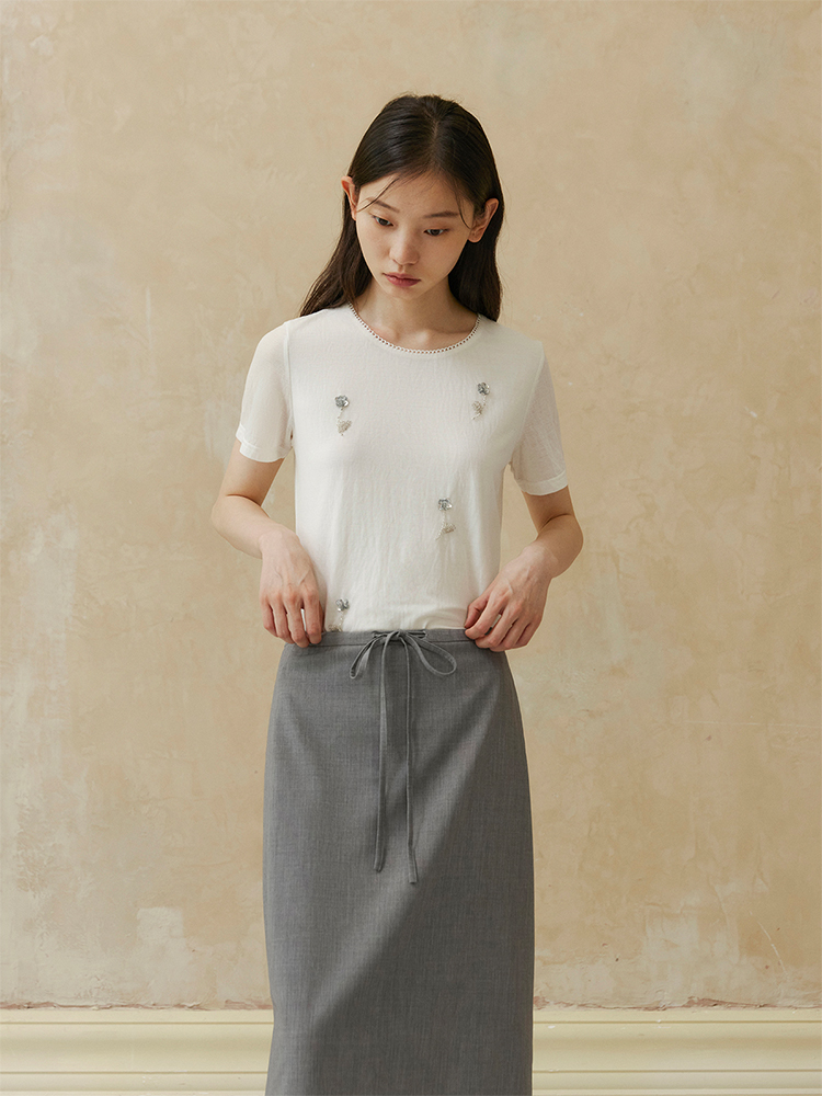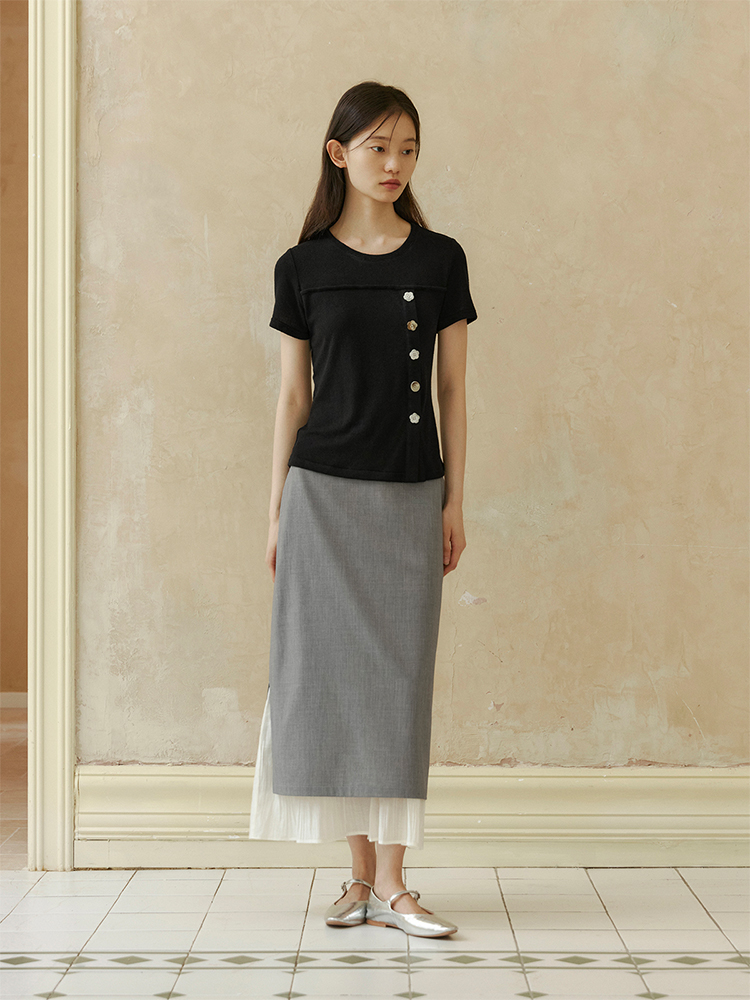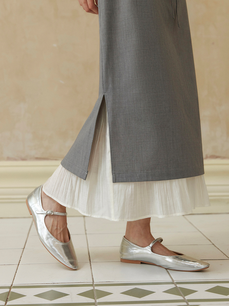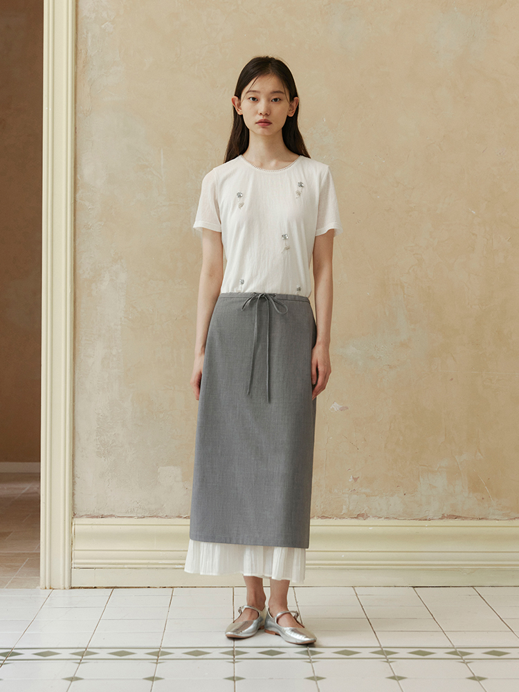ForPoem 现货 24/SS原创设计抽绳腰简约直筒褶皱花边宽松半裙