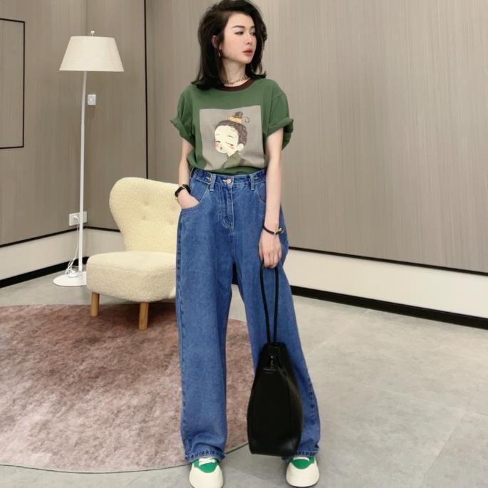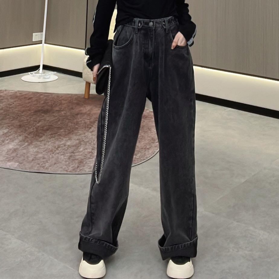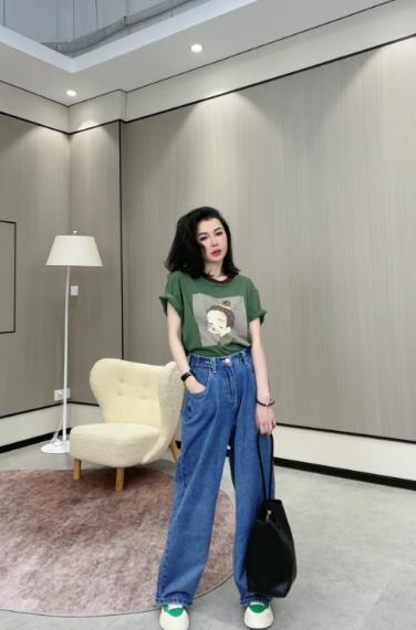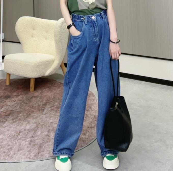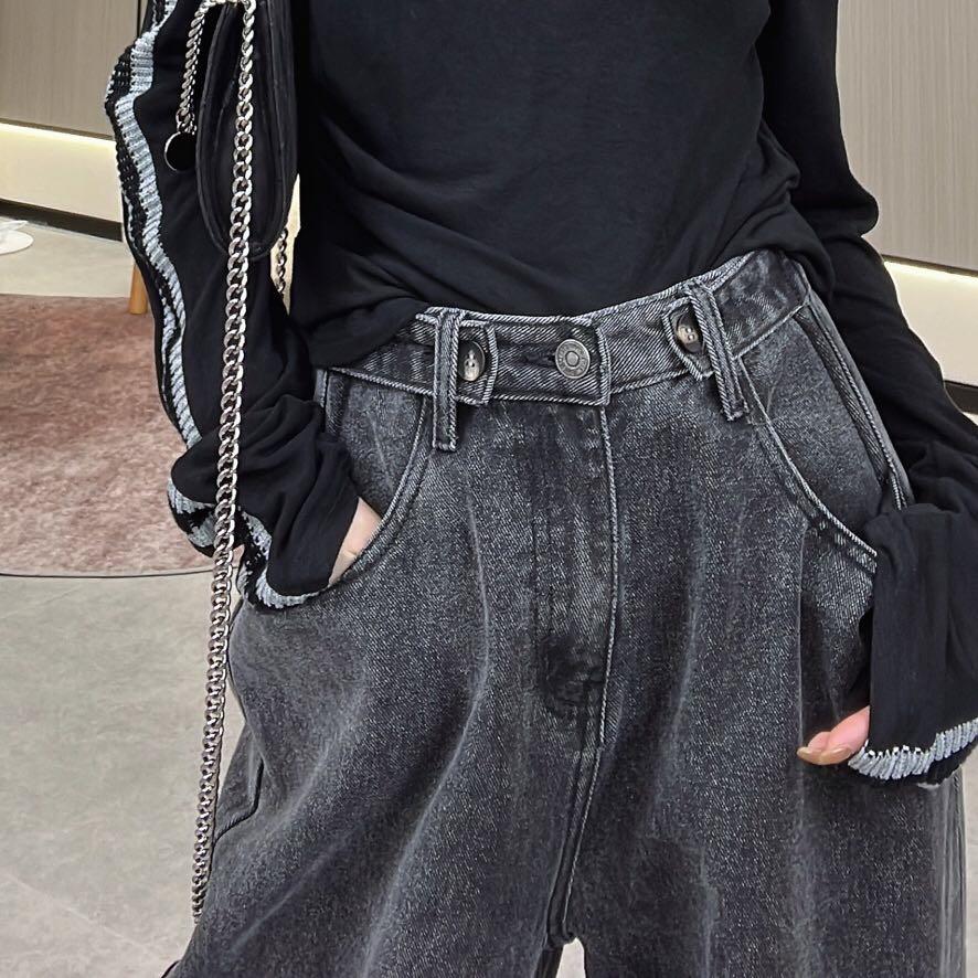 03-4潘依绣丁丁宠粉PanYiXiu/潘依绣设计款水洗磨白廓形时尚阔腿牛仔裤 D6138