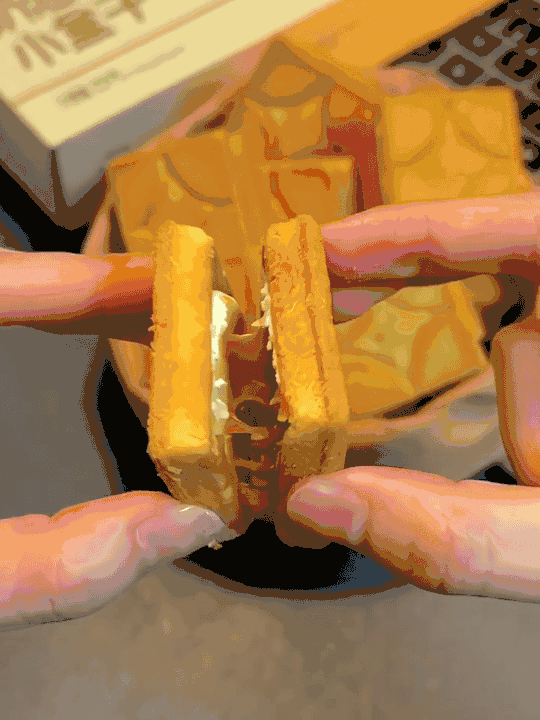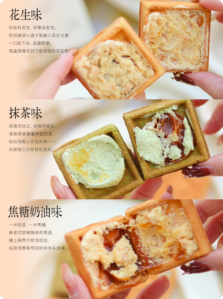 拿起一块曲奇轻轻掰开时中间的夹心拉丝绵长 两者入口交融带来绝妙平衡💯 清甜中蕴含着坚果的咸香盒子般的饼干外形 内里是夹杂着满满的惊喜✨ 无论是自己享用,还是送给亲朋好友 都能传递“好事发生”的祝福💕