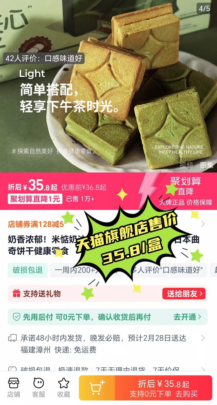 平台日常活动价35.8💰起/盒 开团福利价到手仅需5️⃣9️⃣.8️⃣元到手2盒装🉐 这个价格还有谁没吃过这款奶油夹心曲奇我都会伤心的ok?!