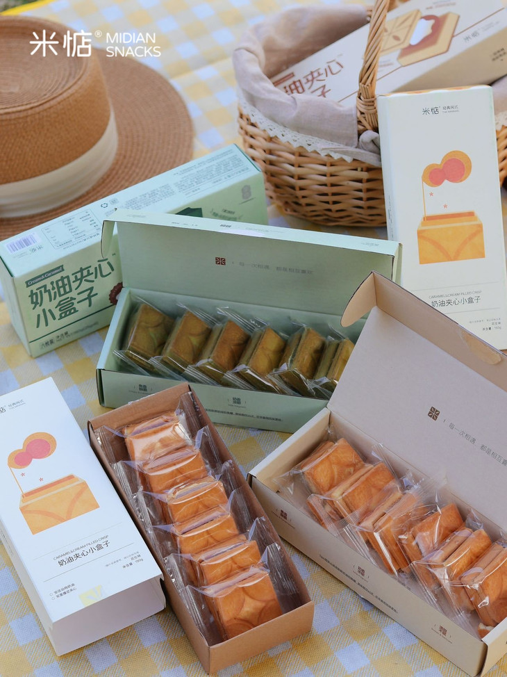 日常赶早班匆匆忙,下午茶选择困难症发作🛍️ 直接打包带走米惦奶油夹心小盒子 一盒六枚,独立小包装超方便携带和分享 不用担心没吃完放置后变得松塌 在家庭聚会时分享美味的同时🧀 也分享着“好事发生”的美好寓意 随时随地打开即享 美味不打烊~