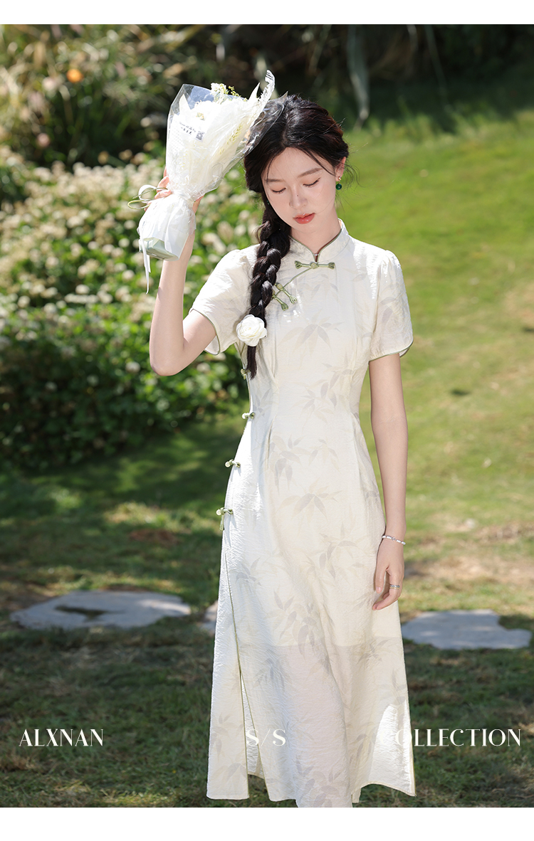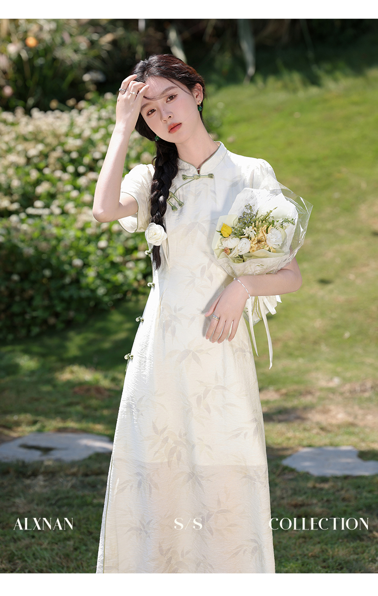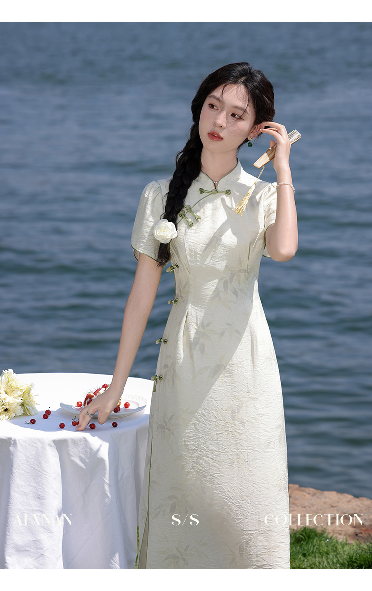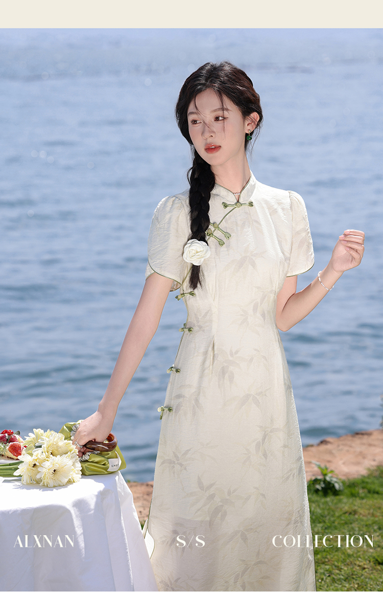 【6折秒杀】鹿向南「皎月竹新」新中式改良旗袍连衣裙女夏新款气质裙子L36703