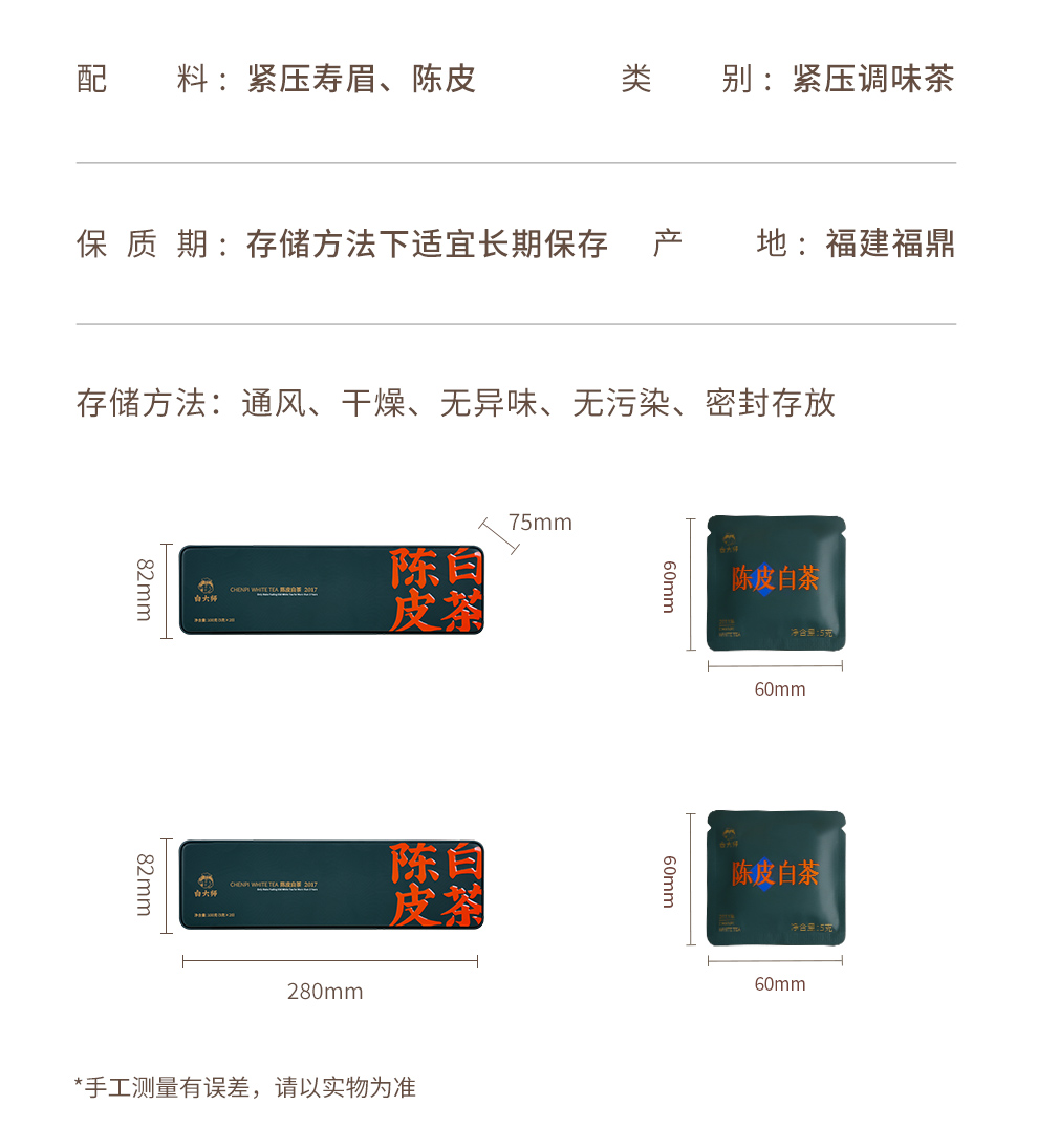 白大师白茶茶叶礼盒2017年寿眉陈皮白茶福鼎白茶小方片口粮茶醇厚