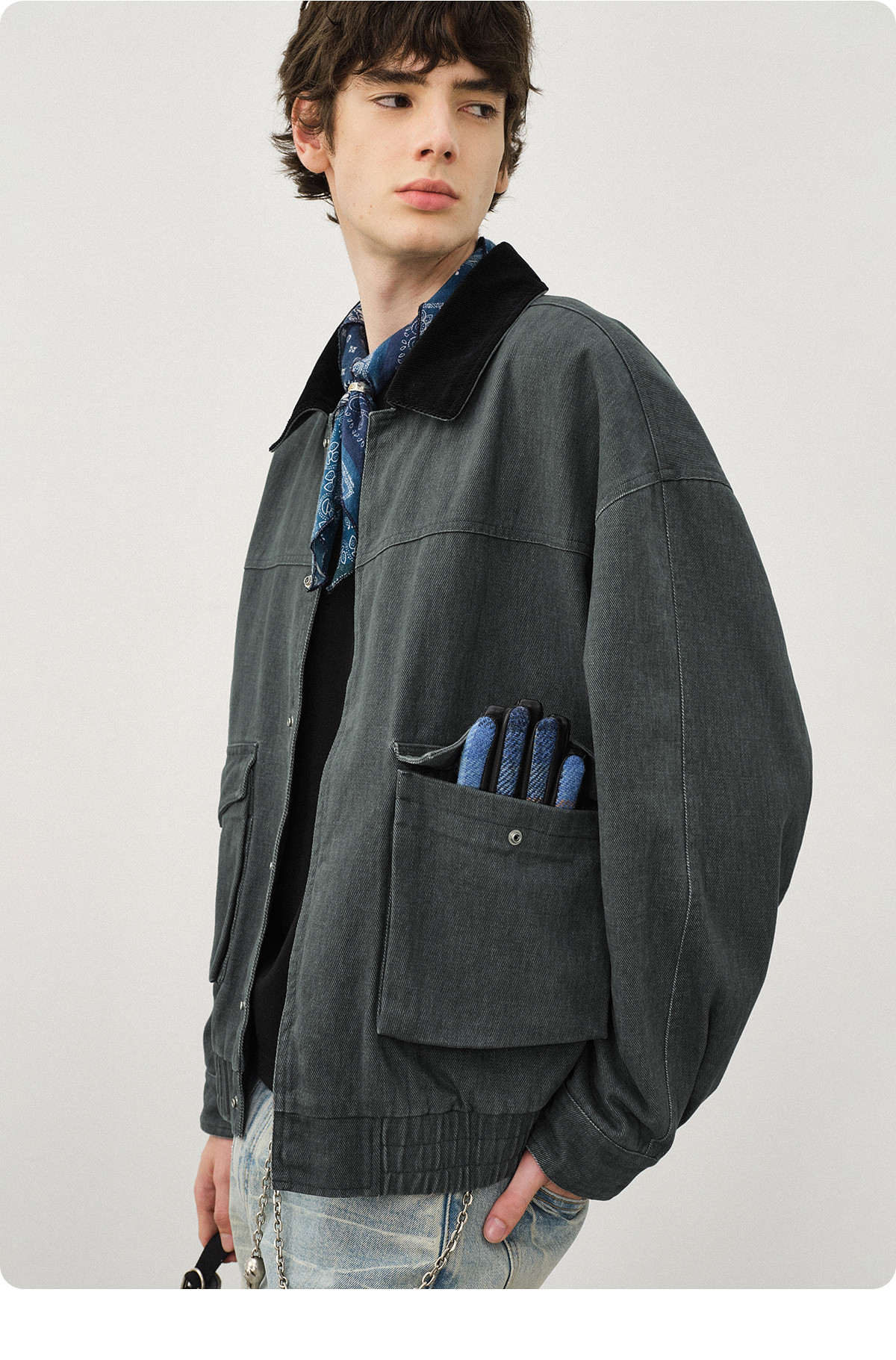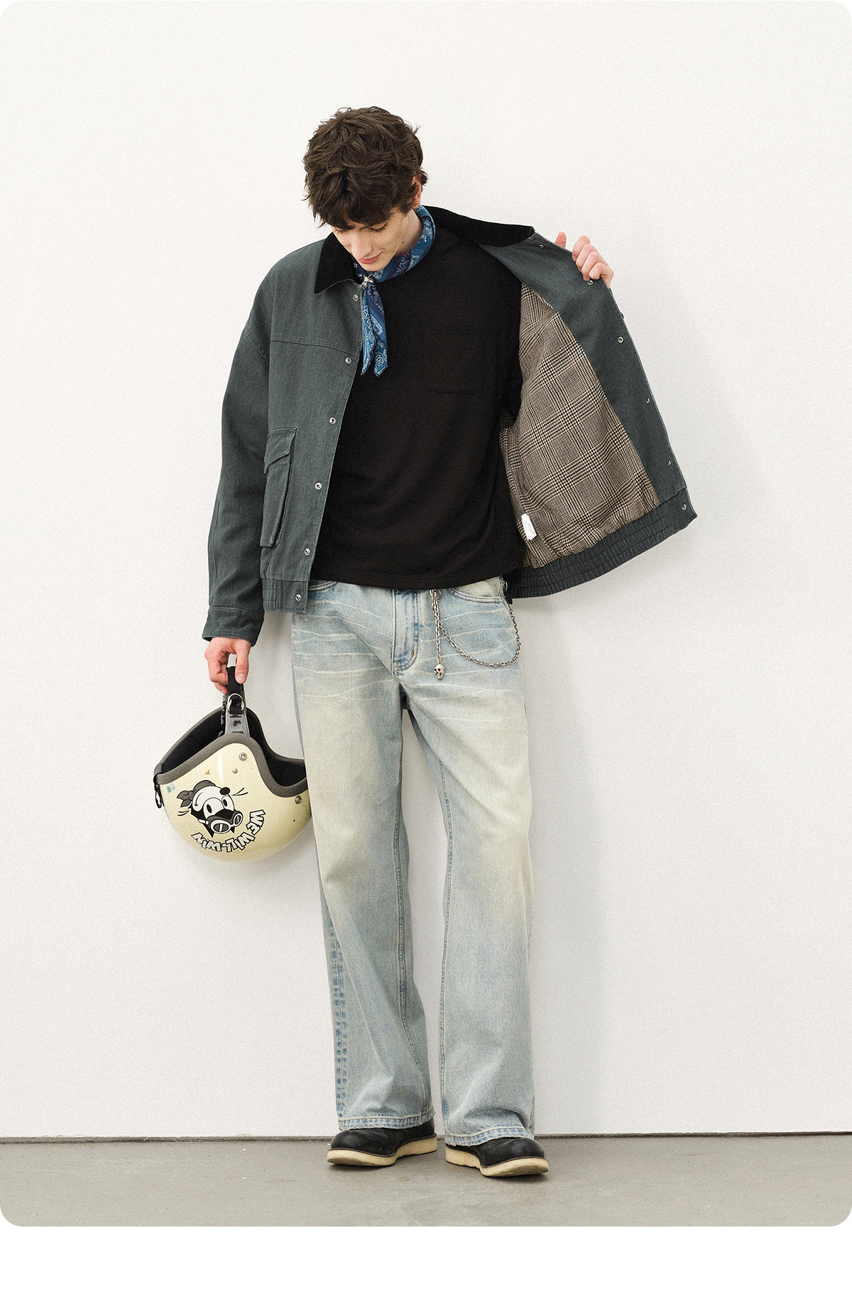 714street美式麂皮绒底特律夹克男2025秋冬款老钱风穿搭工装外套