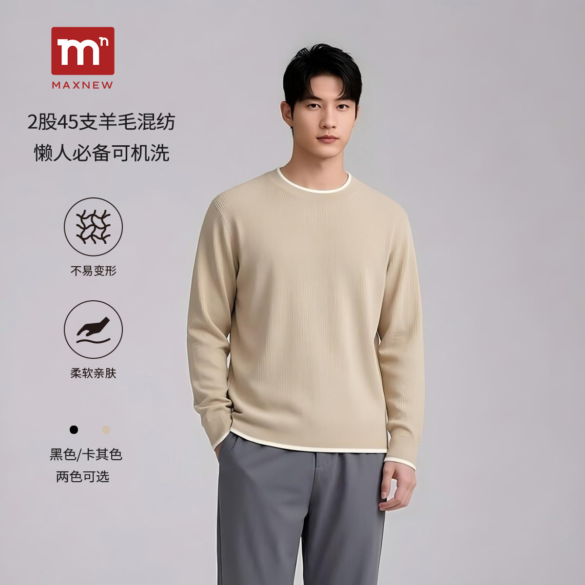 【门店同款】极简风圆领羊毛混纺针织衫男长袖休闲毛衣1Q1112502