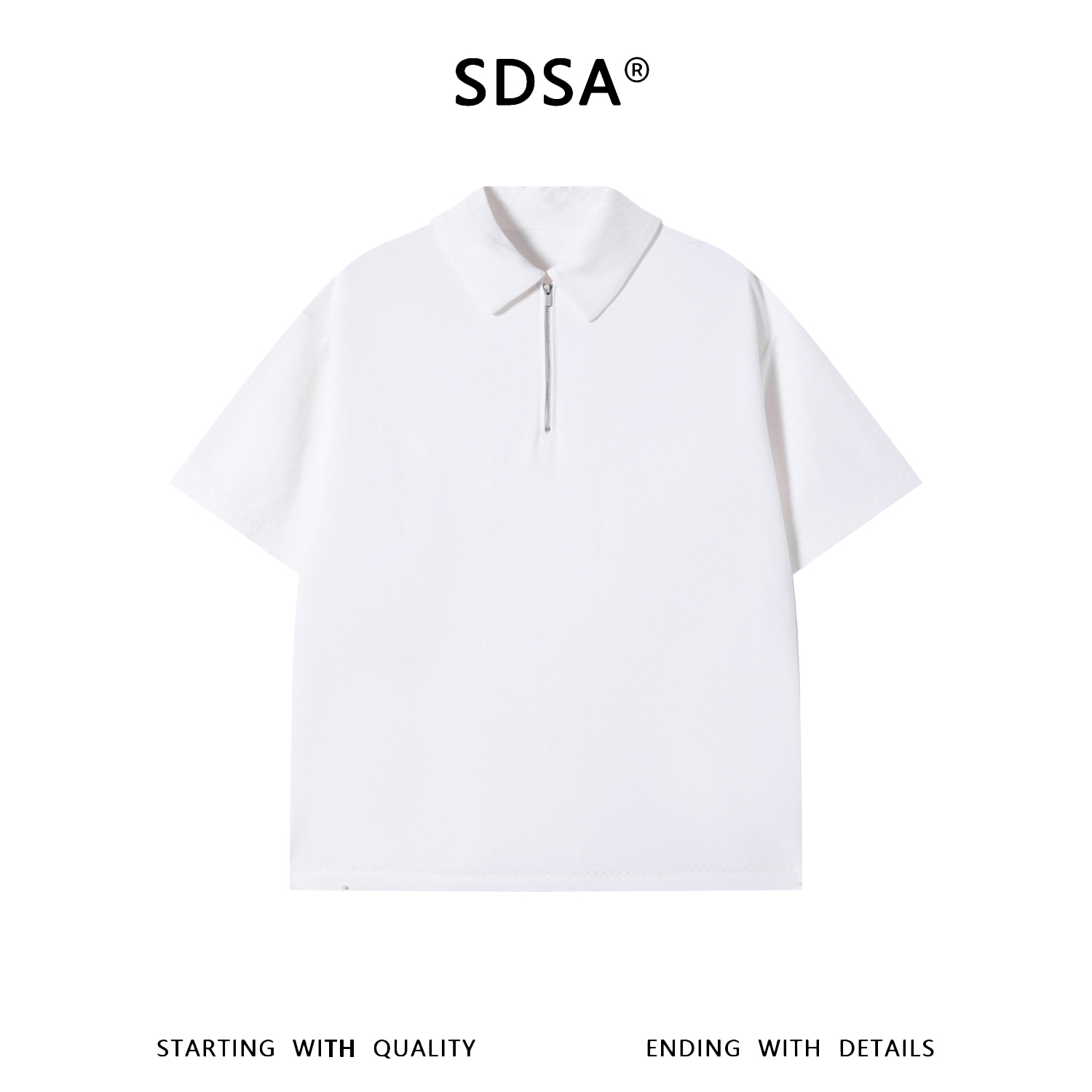 SDSA男装2026新款高贵轻奢潮牌简约纯色半拉链翻领短袖T恤百搭