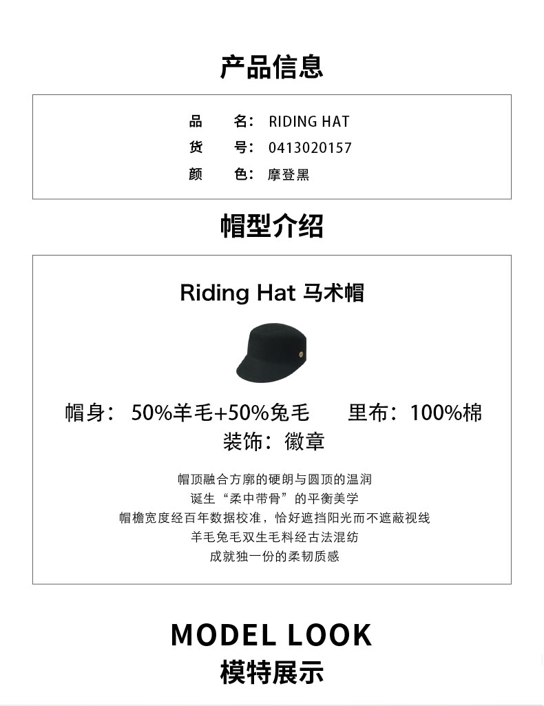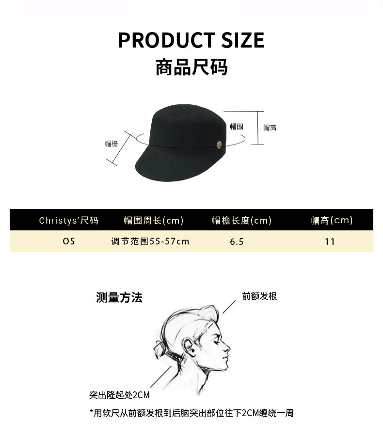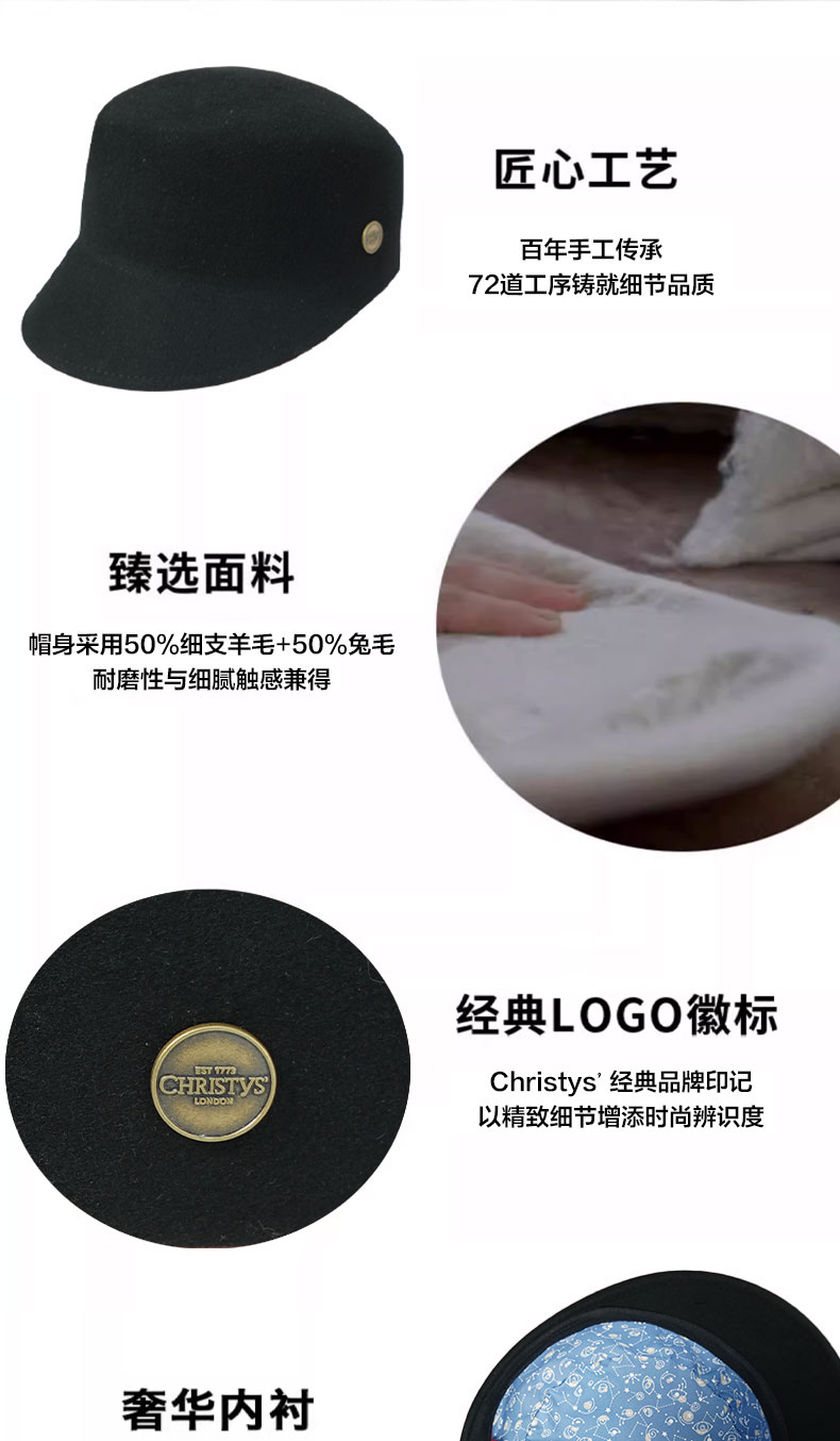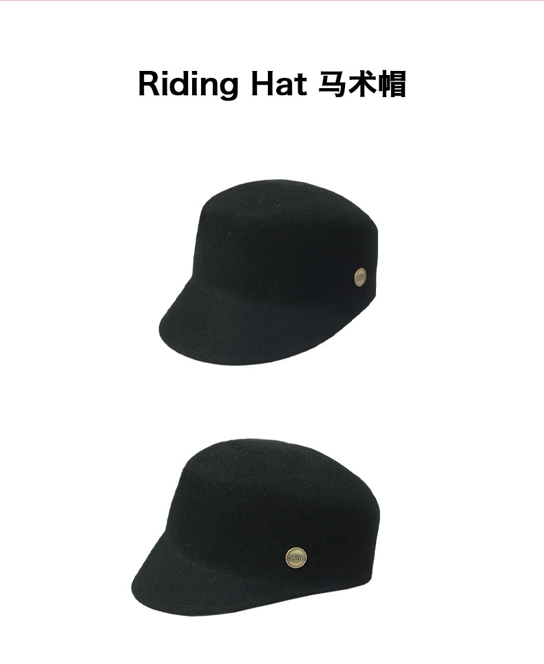【新品】Christys'百年皇室品牌 羊毛兔毛马术帽方圆顶-摩登黑