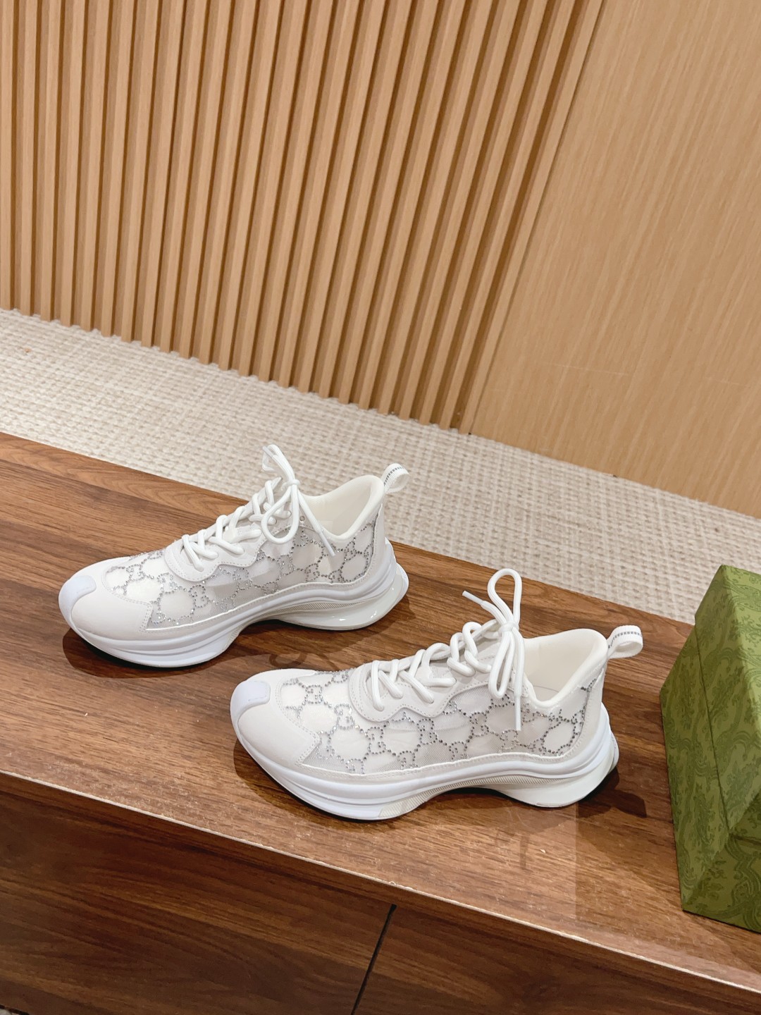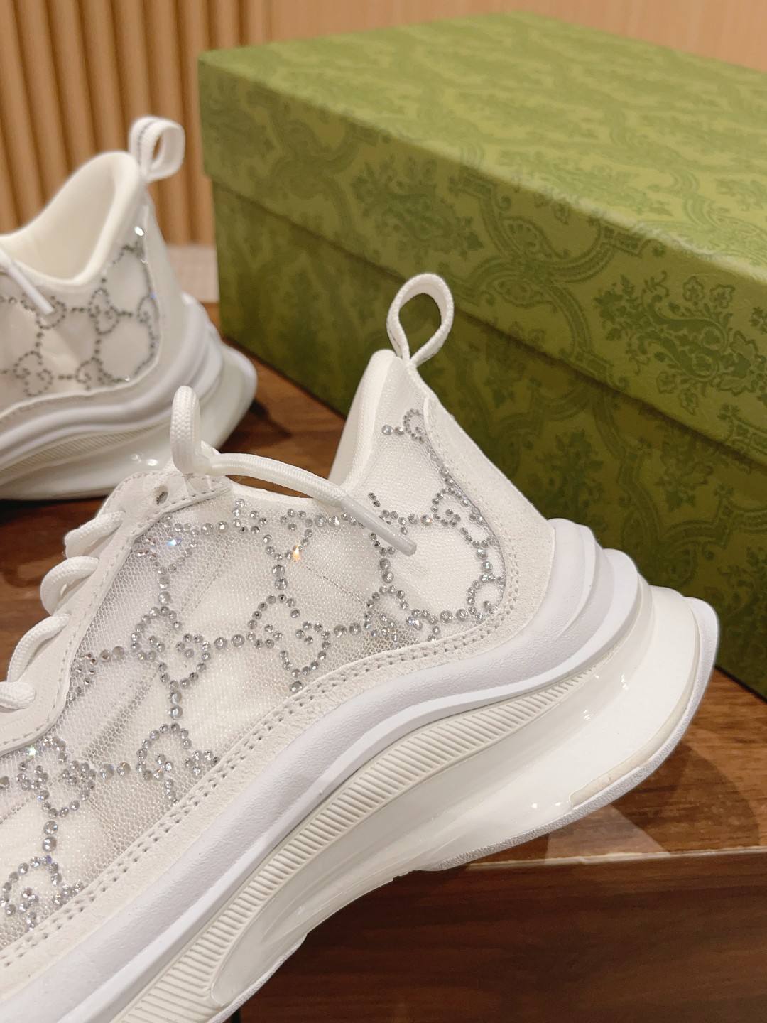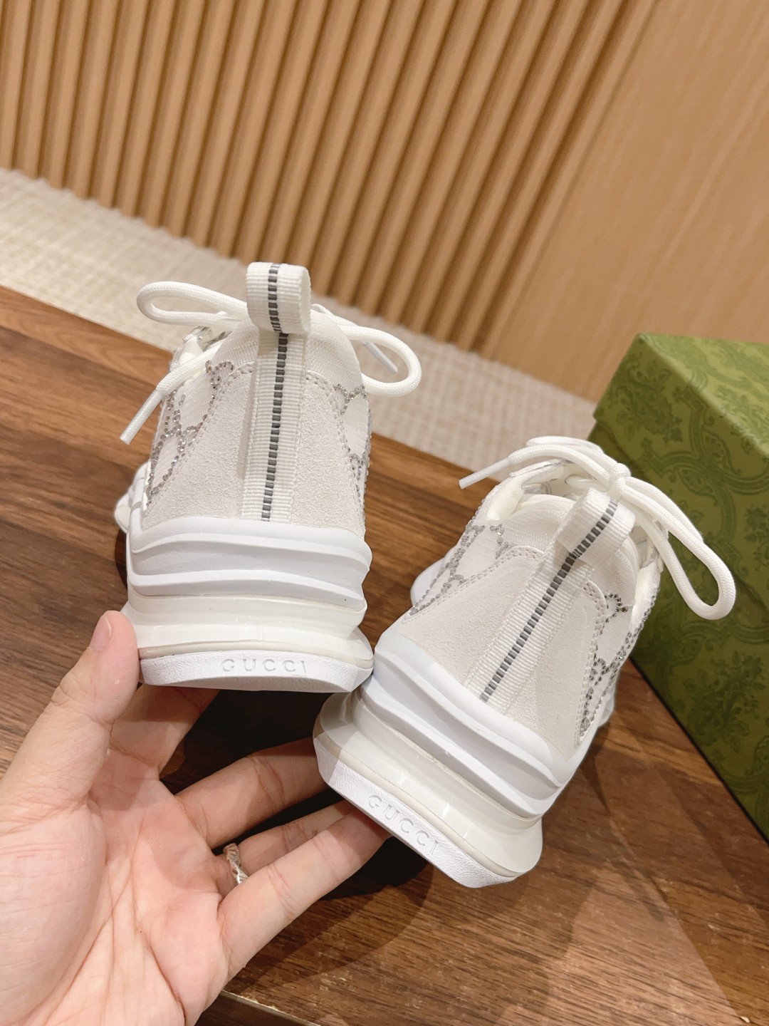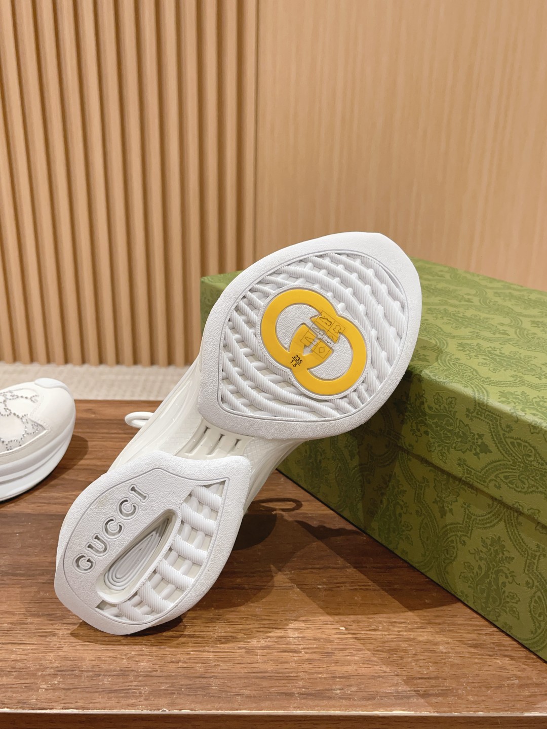 这一单品的设计从运动世界中汲取灵感,透过Gucci视角焕新演绎,匠心融入醒目的品牌标识细节。这双流线型运动鞋采用白色绒面材质精心打造,搭配双色橡胶鞋底和互扣式双G细节 配送专柜精美包装