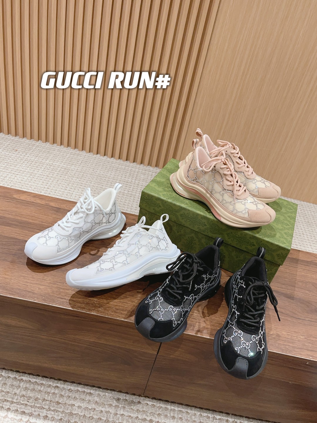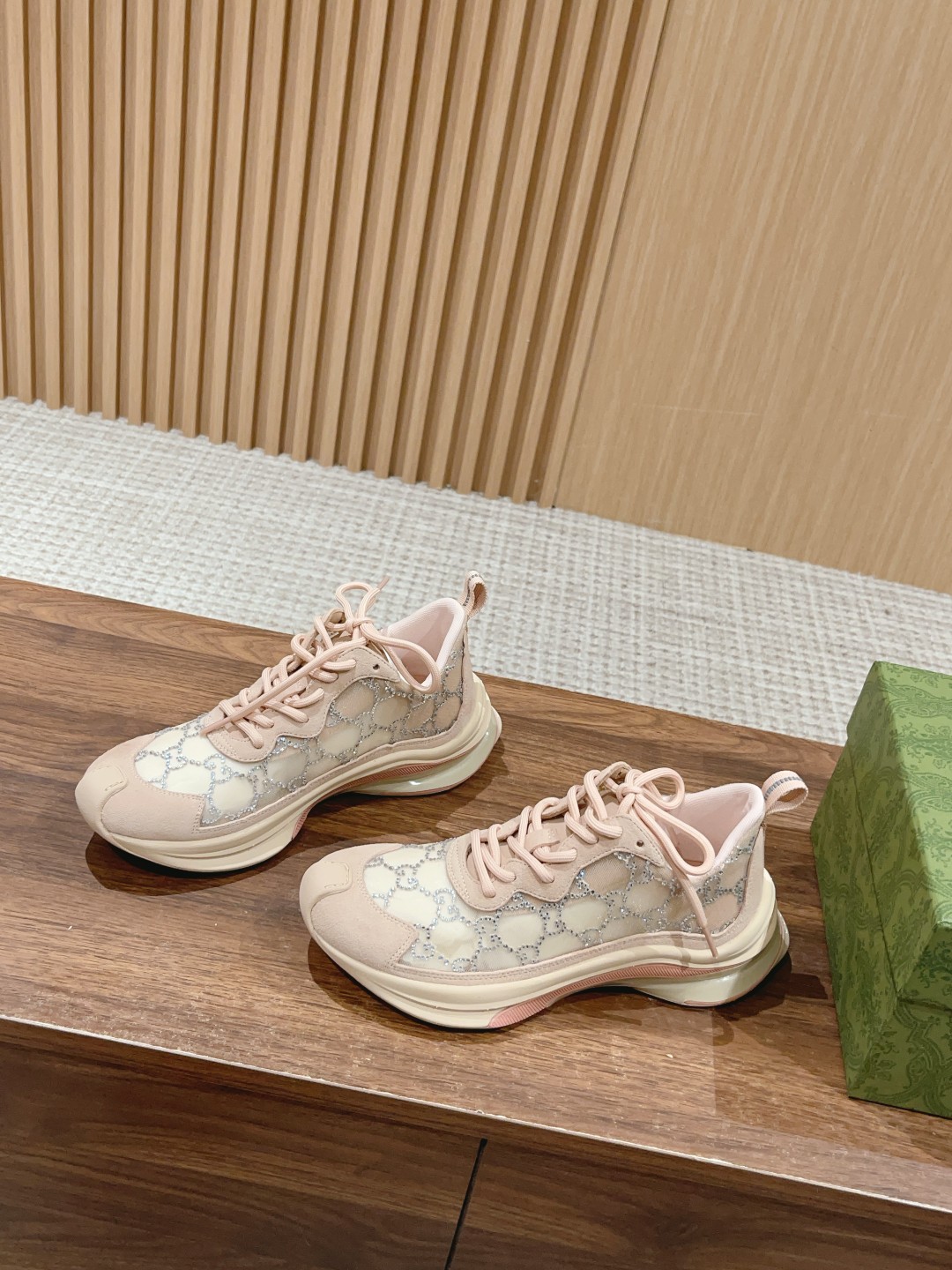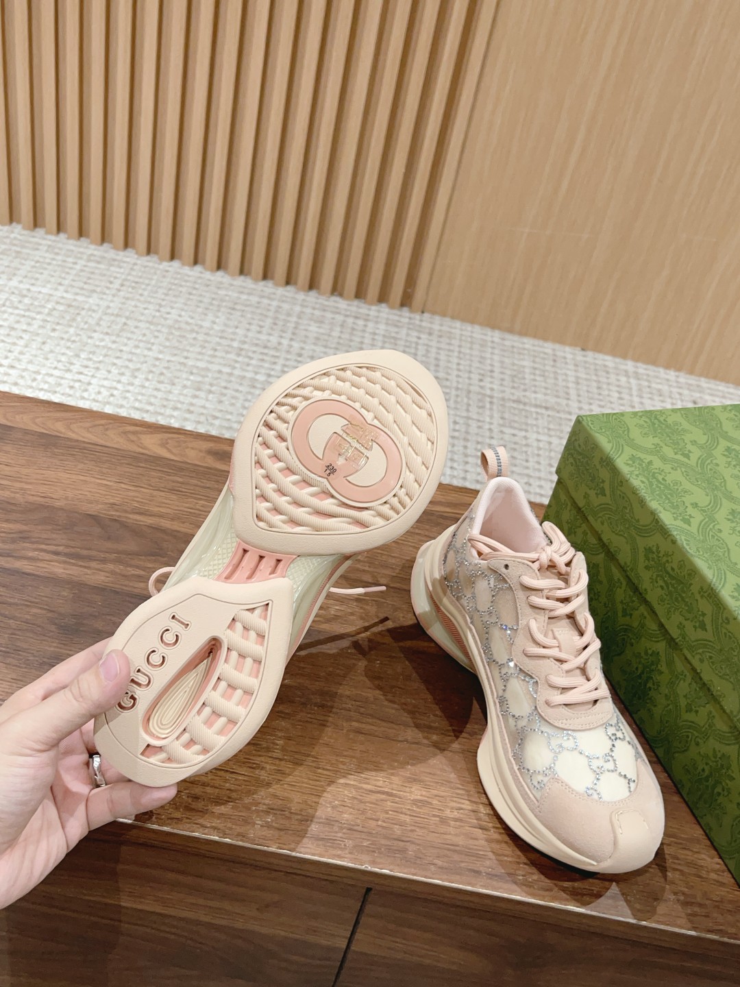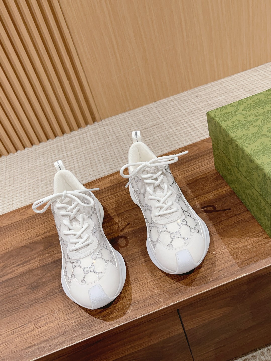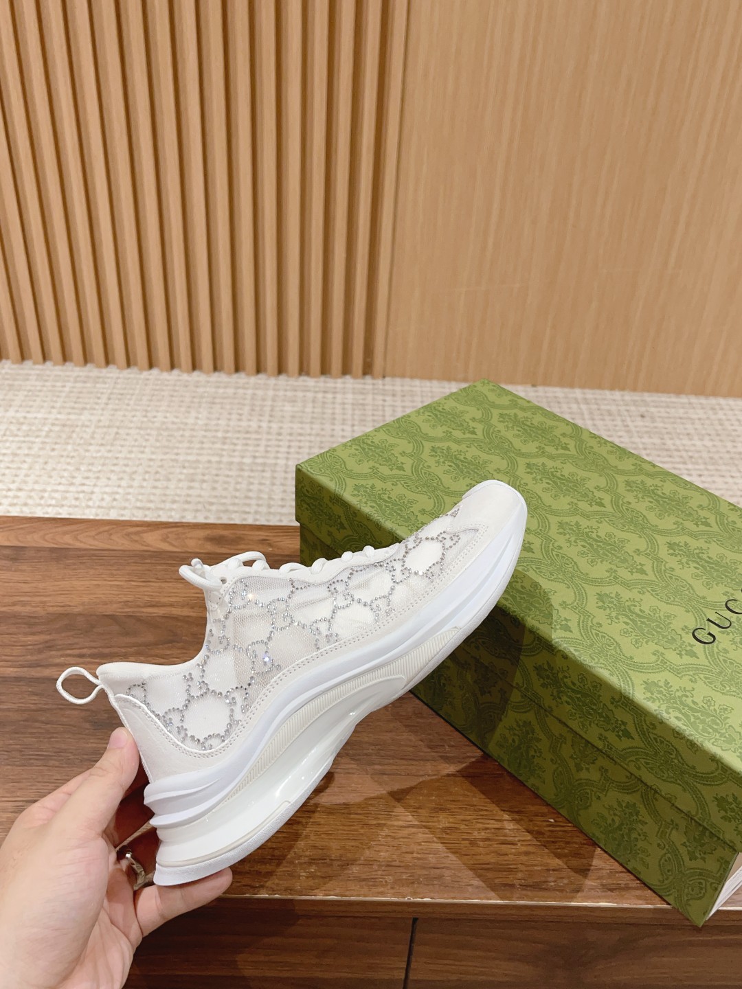 这一单品的设计从运动世界中汲取灵感,透过Gucci视角焕新演绎,匠心融入醒目的品牌标识细节。这双流线型运动鞋采用白色绒面材质精心打造,搭配双色橡胶鞋底和互扣式双G细节 配送专柜精美包装
