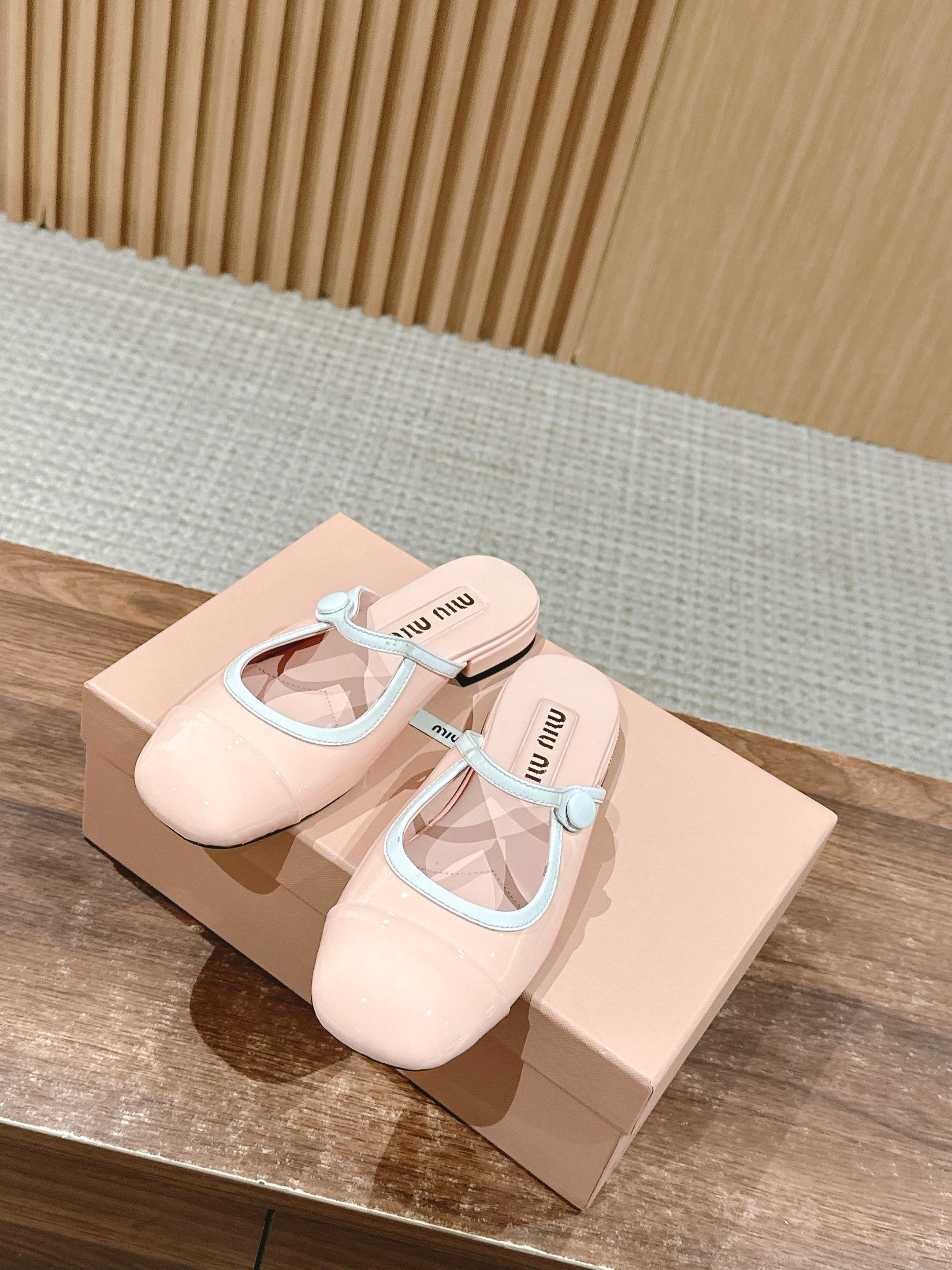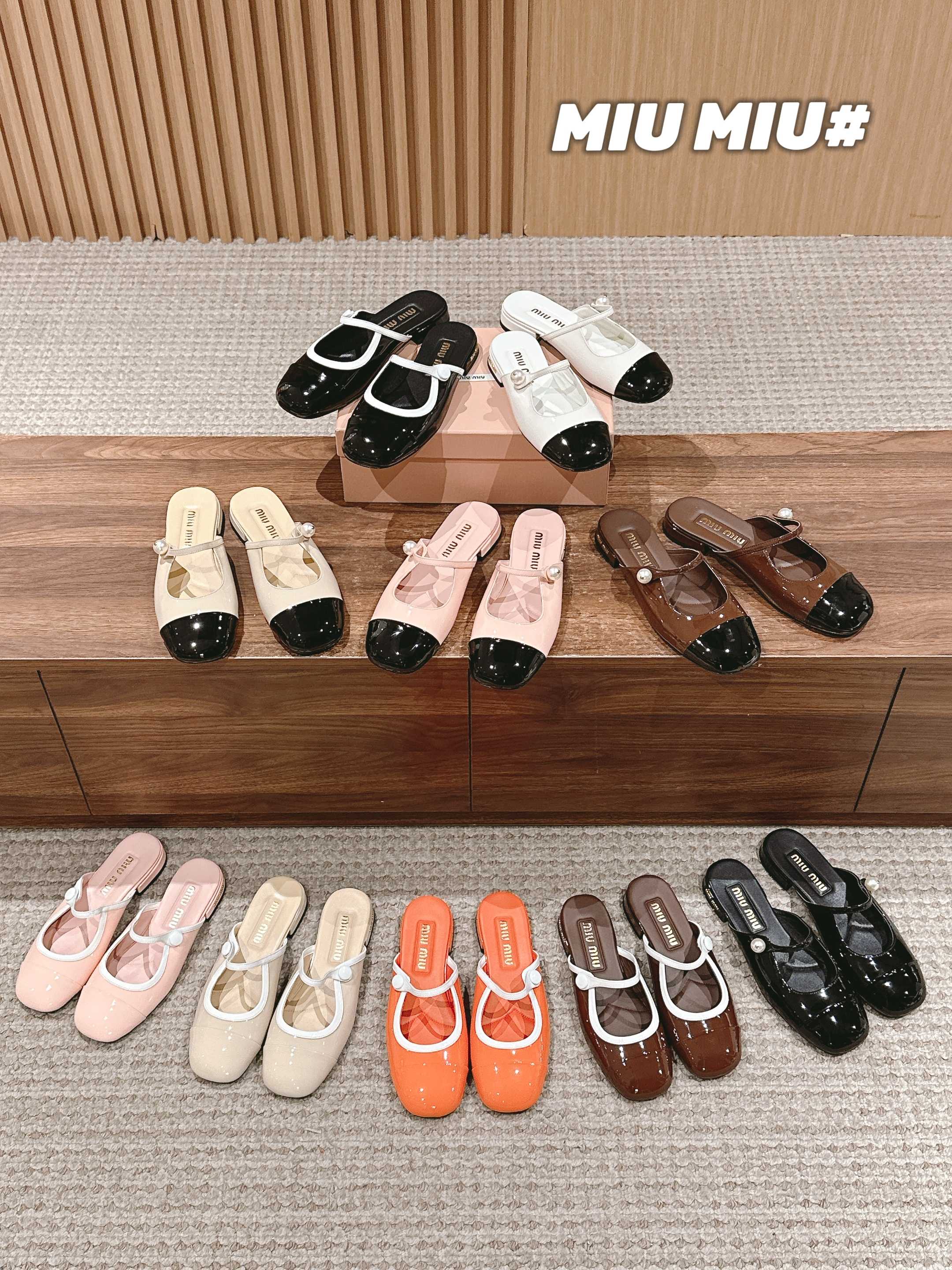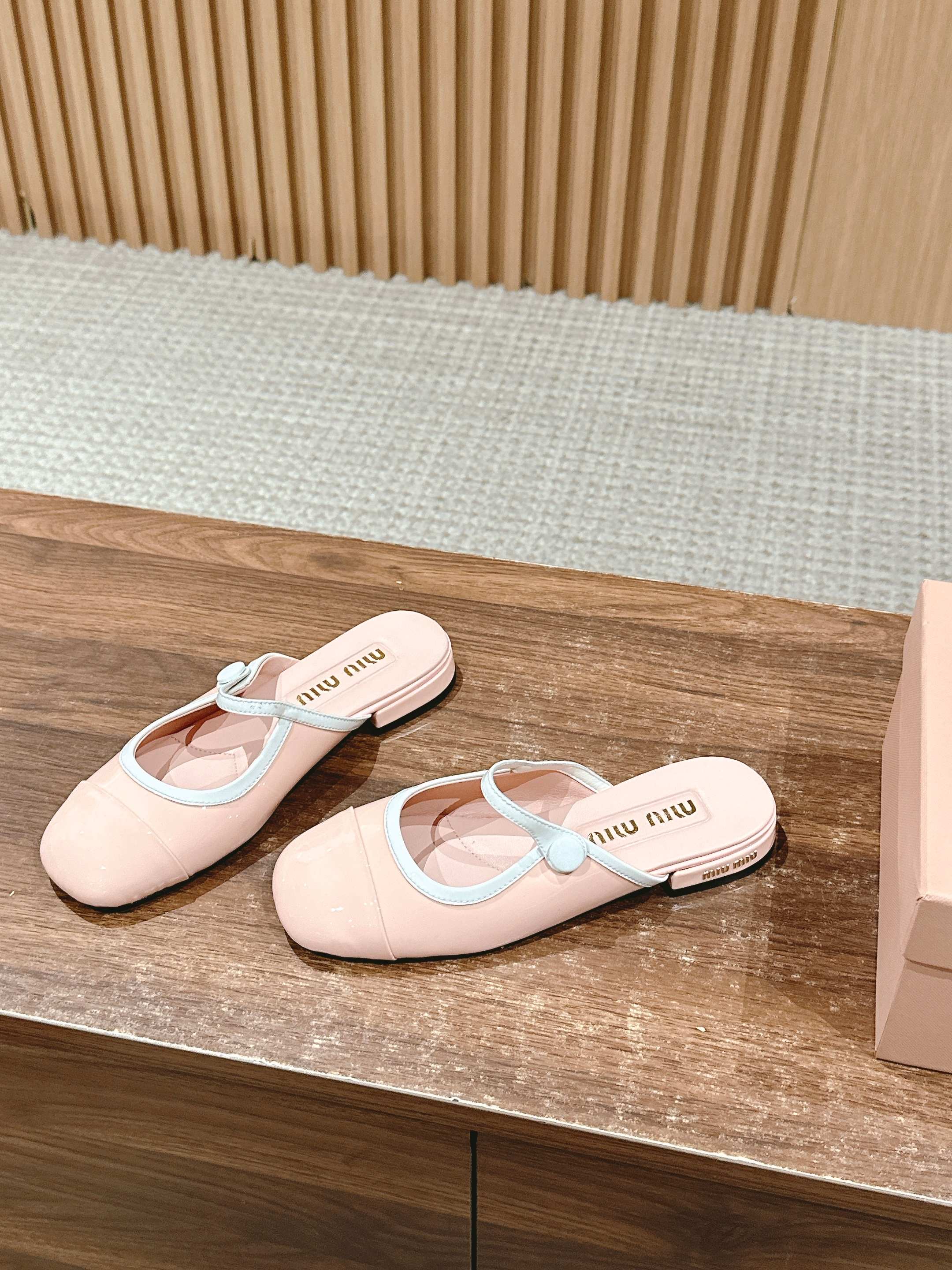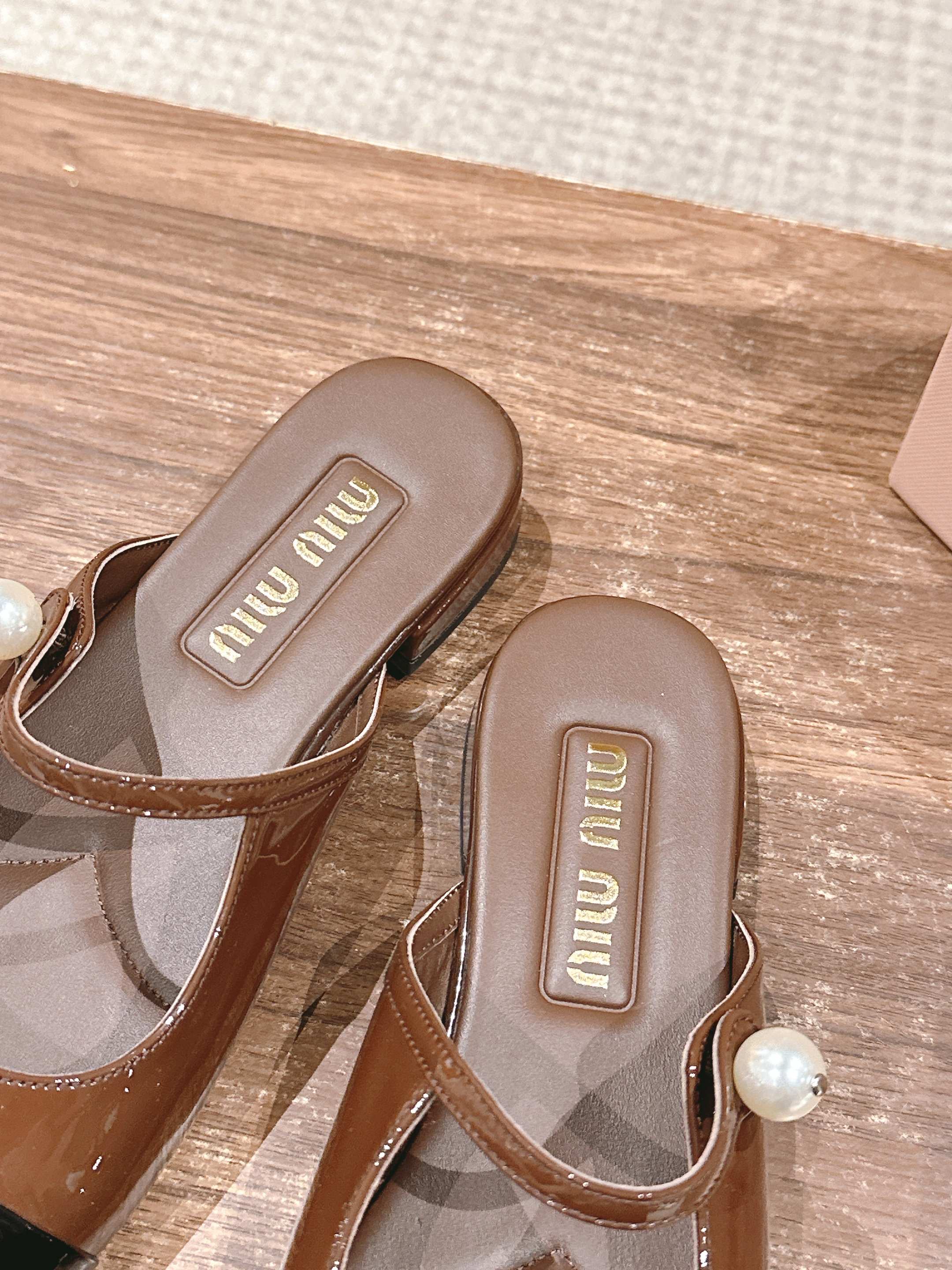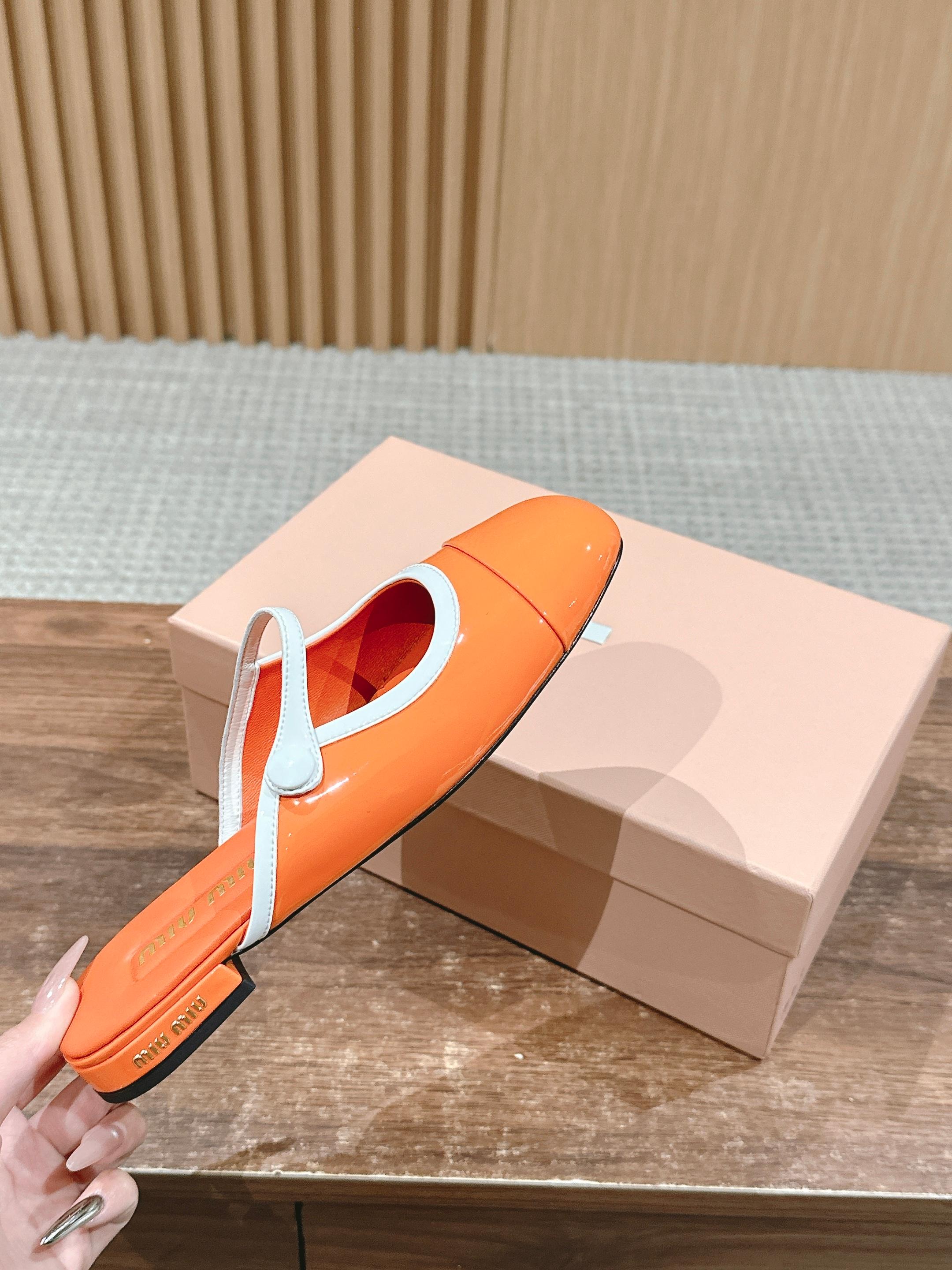 缪缪大王最新款,新款春日多巴胺配色,热情洋溢的搭配就很适适配春天!经典的玛丽珍小巧设计,包头半拖,漆皮的质感真的绝了!单扣带不用担心不跟脚哦!珍珠扣点缀增加小亮眼!!