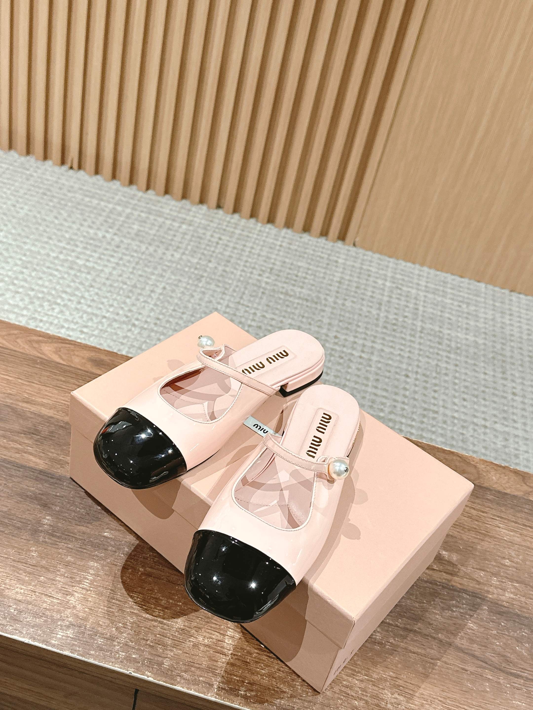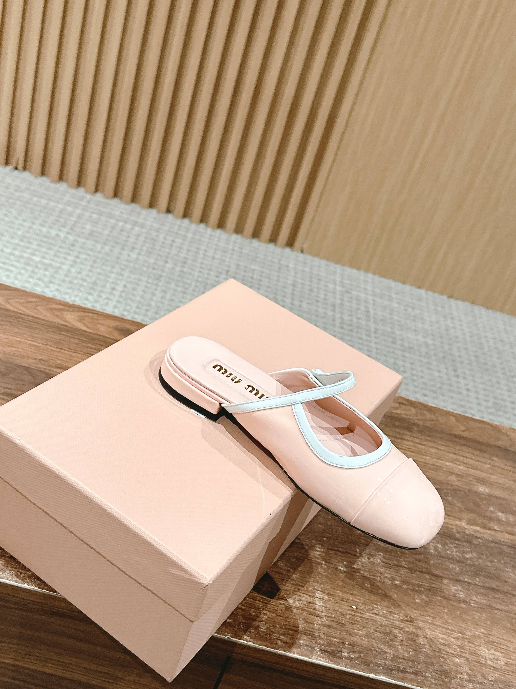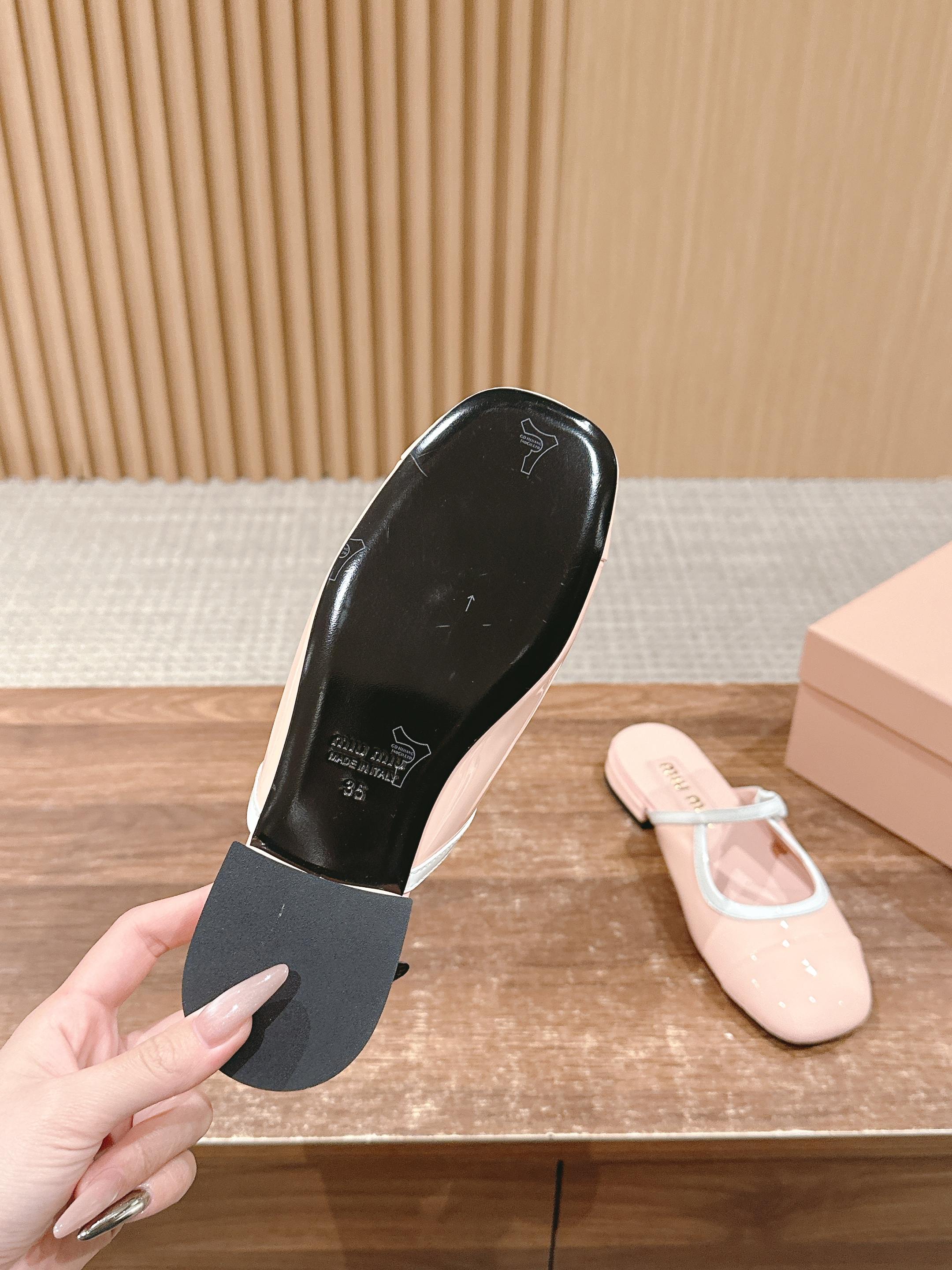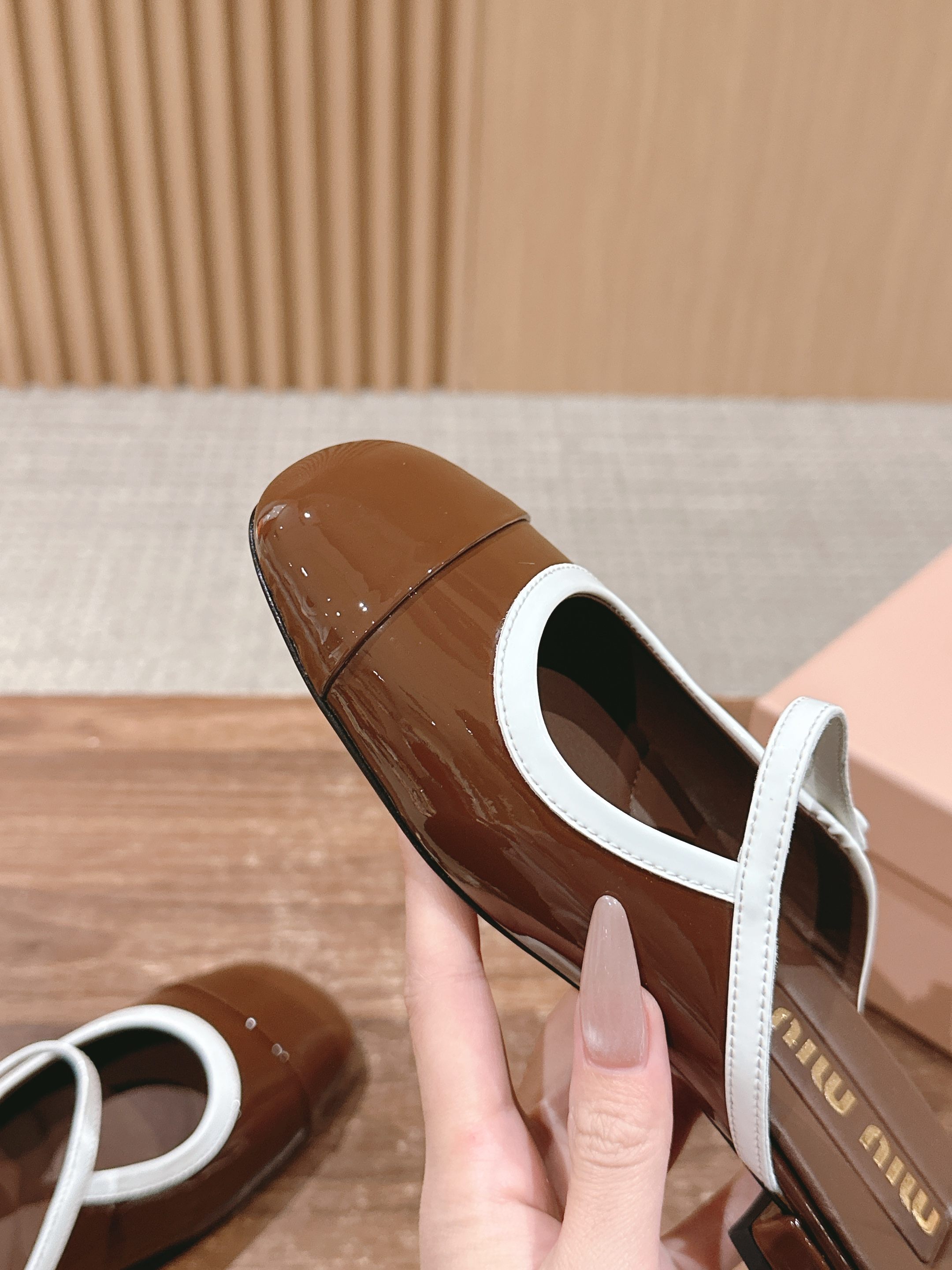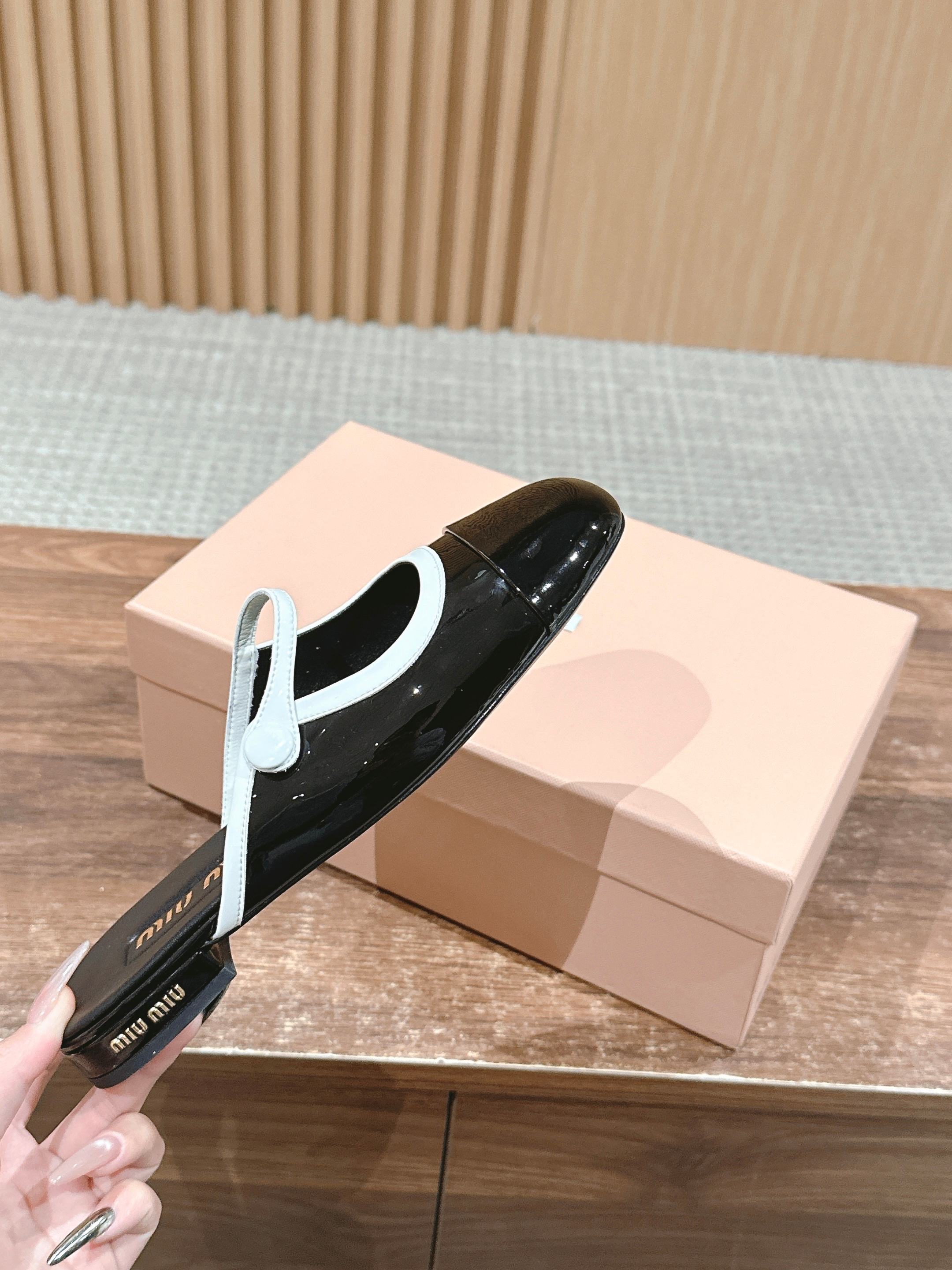 缪缪大王最新款,新款春日多巴胺配色,热情洋溢的搭配就很适适配春天!经典的玛丽珍小巧设计,包头半拖,漆皮的质感真的绝了!单扣带不用担心不跟脚哦!珍珠扣点缀增加小亮眼!!